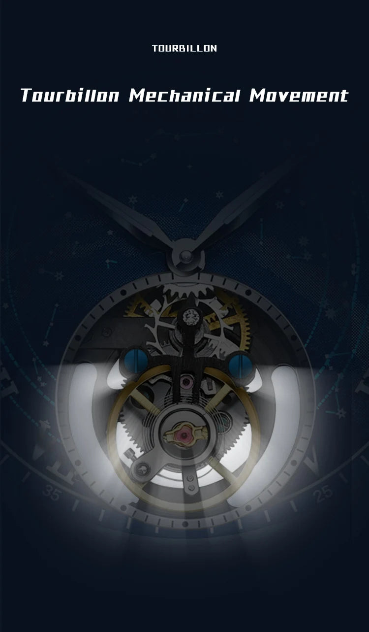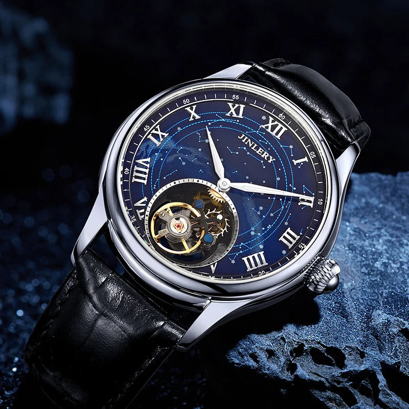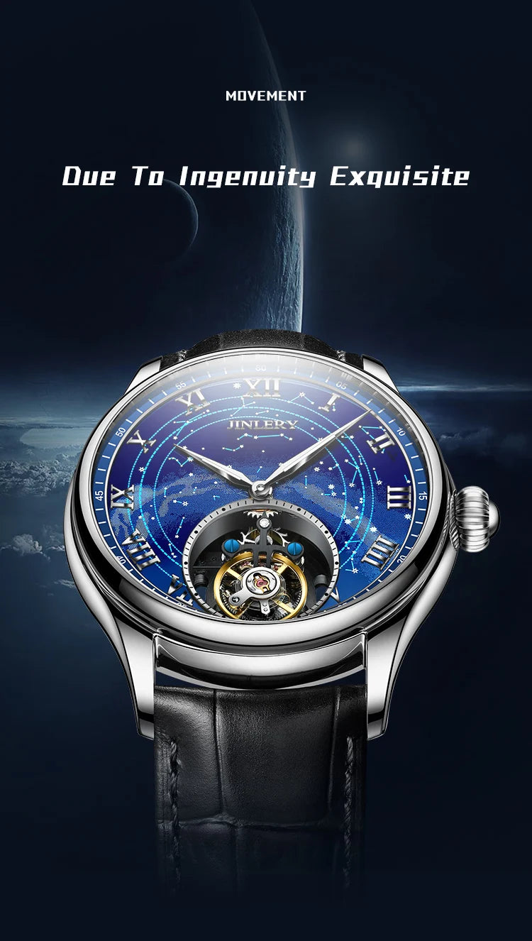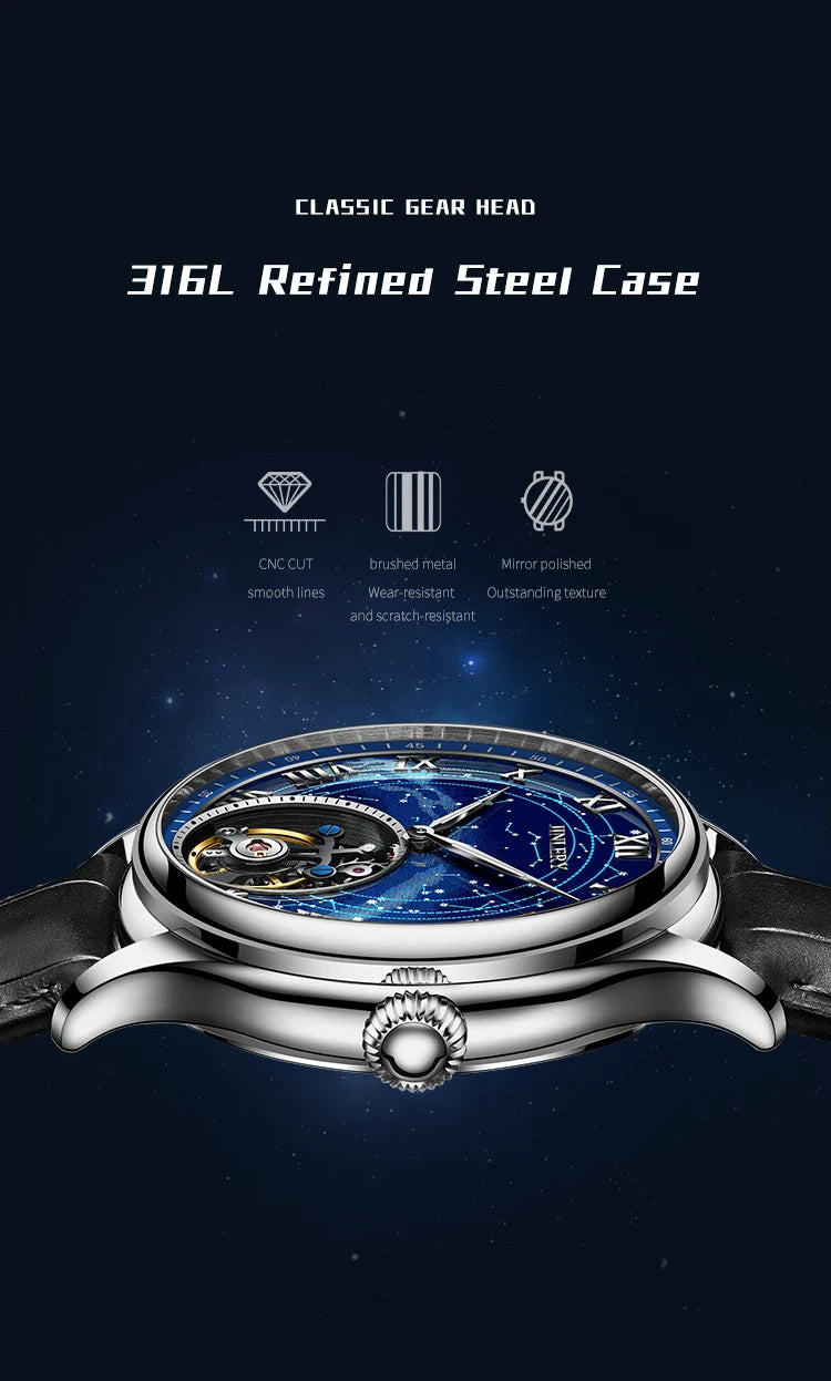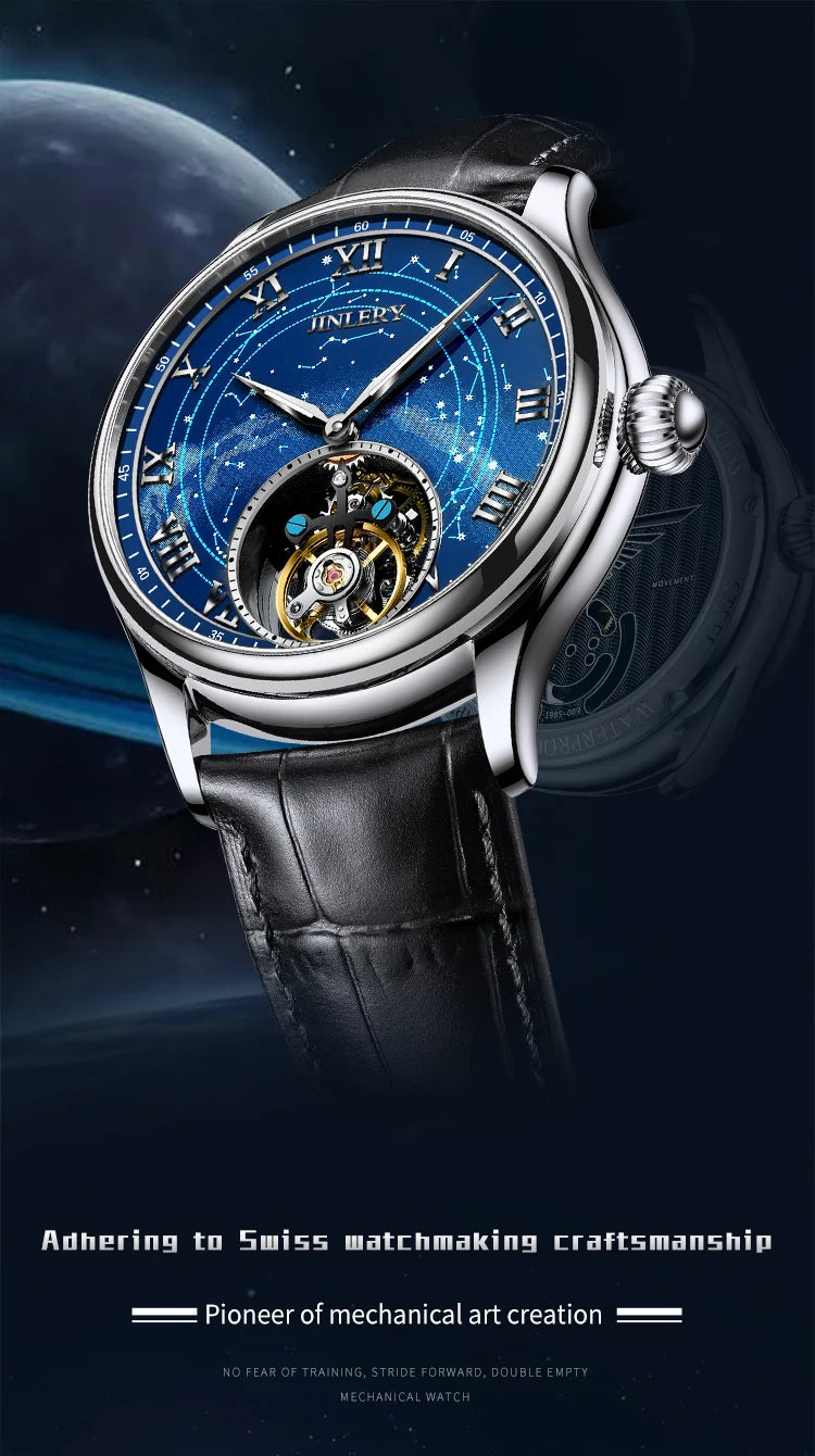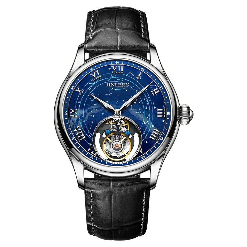 Men's Milky Way Star Sapphire Dial Luxury Leather Flying Tourbillon Mechanical Watch