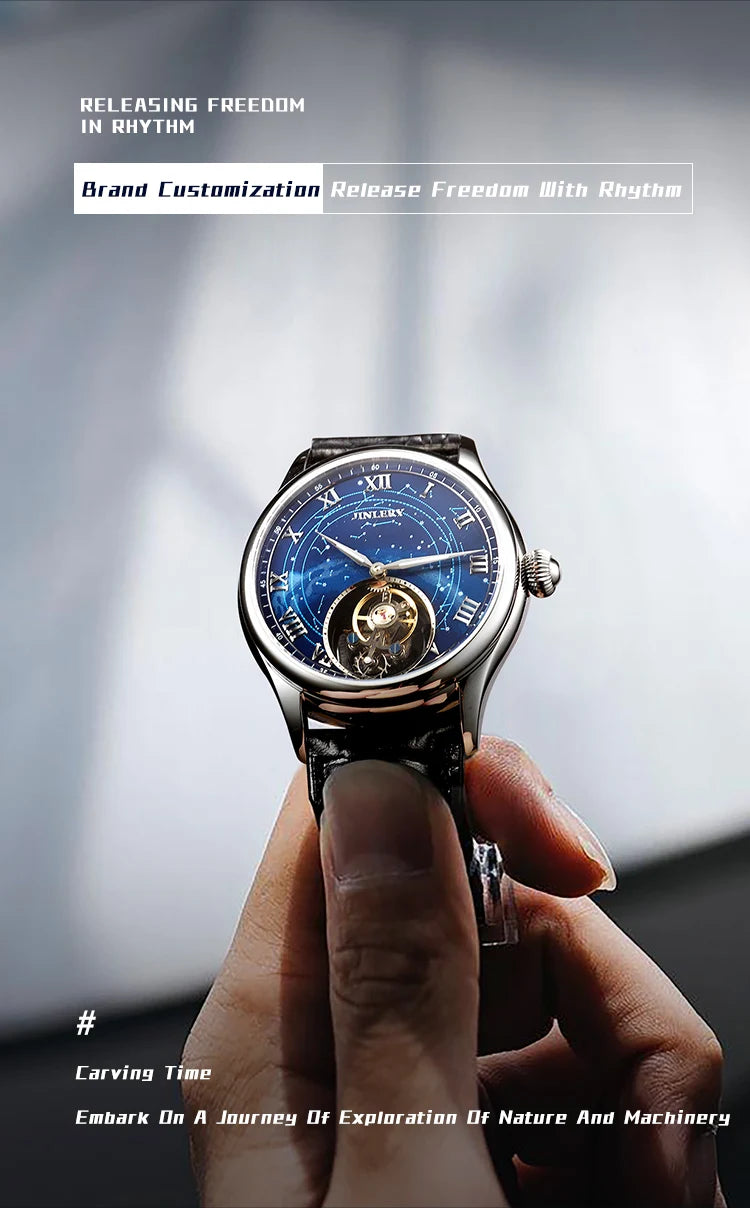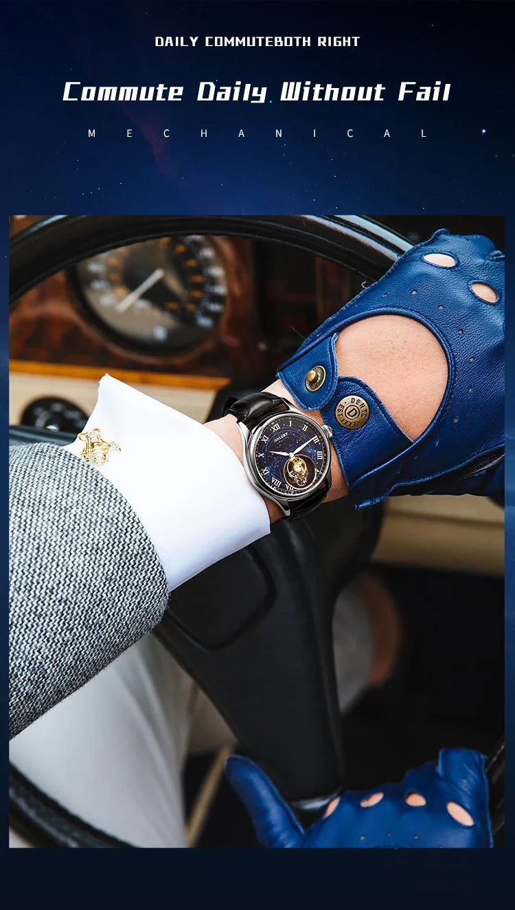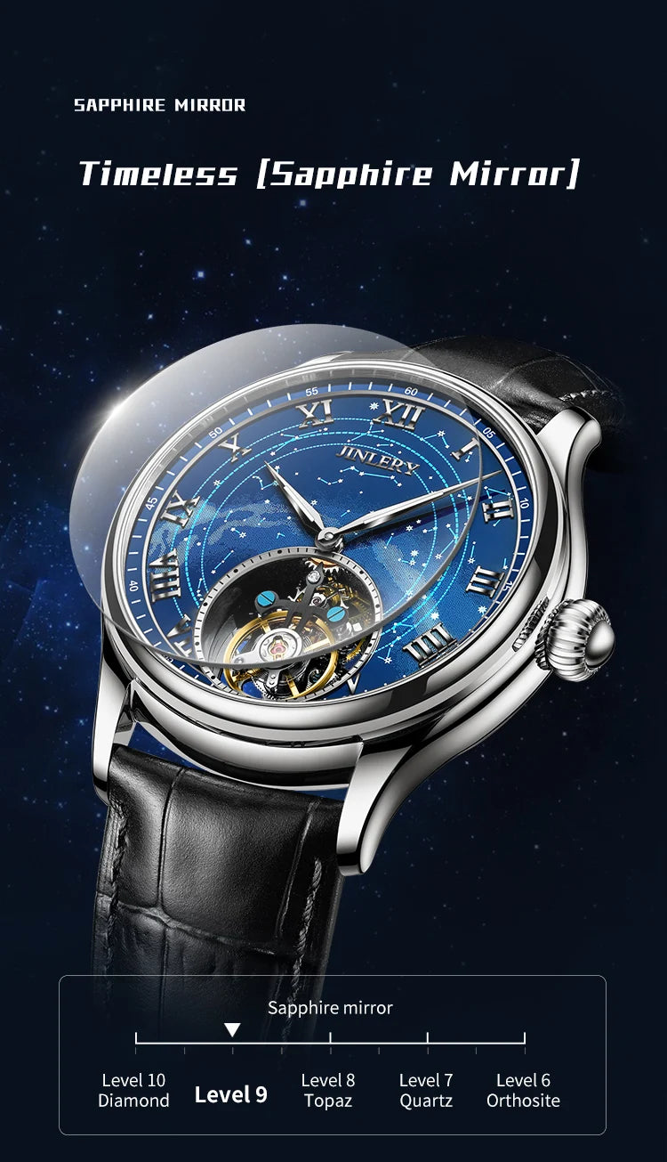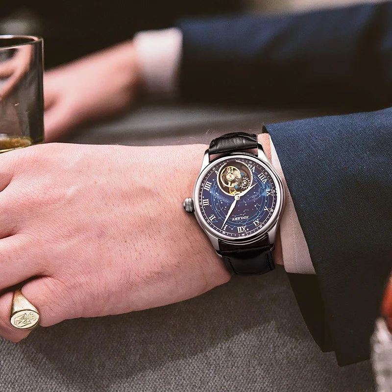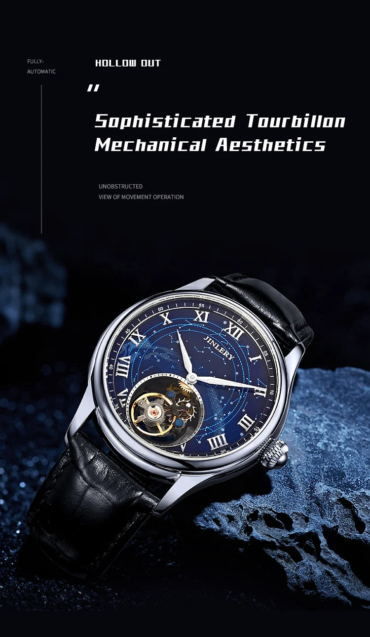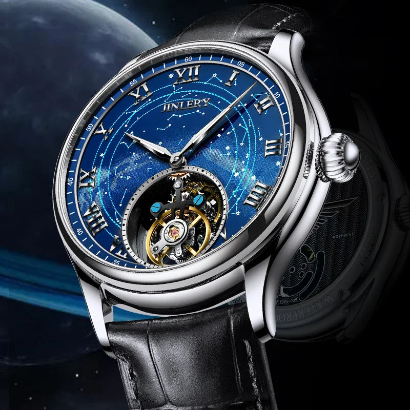 Men's Milky Way Star Sapphire Dial Luxury Leather Flying Tourbillon Mechanical Watch