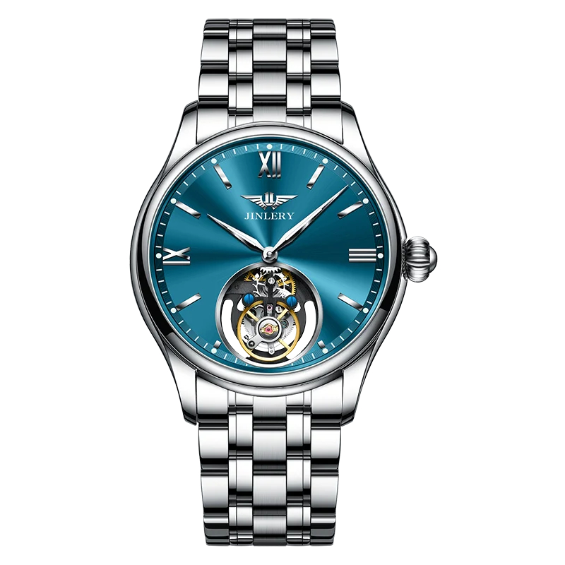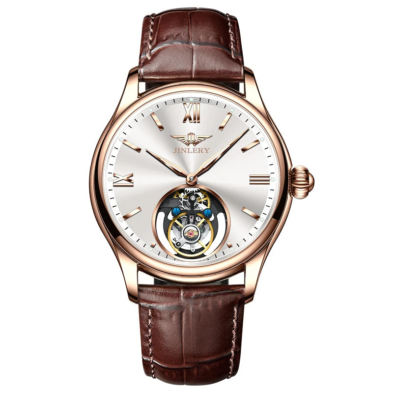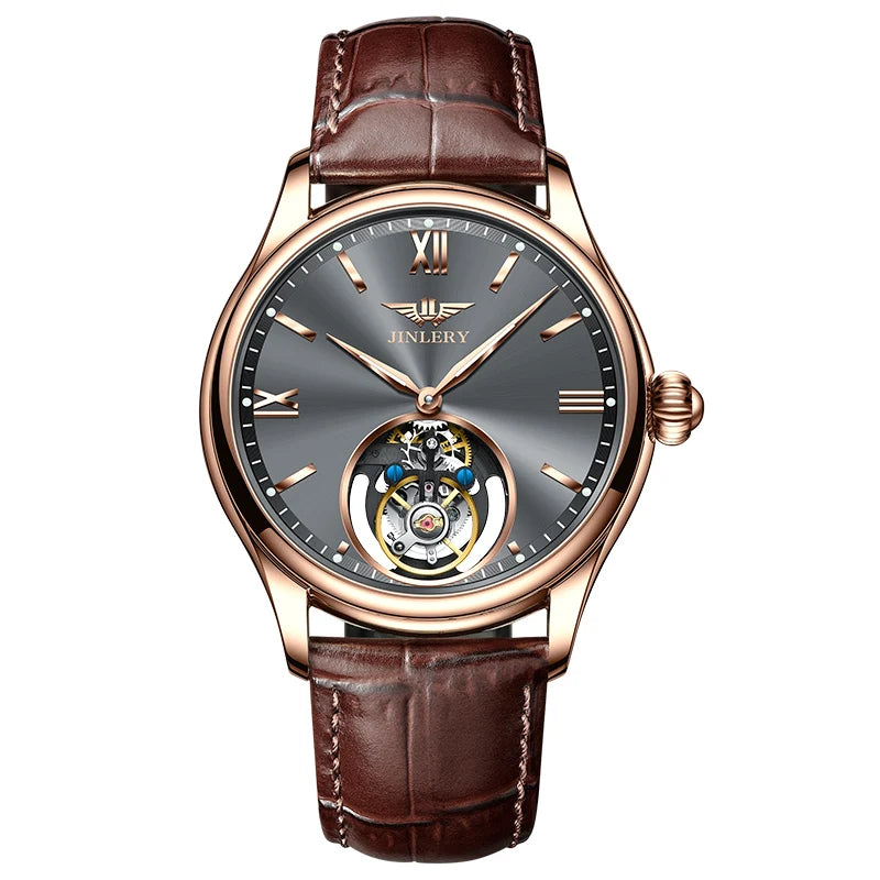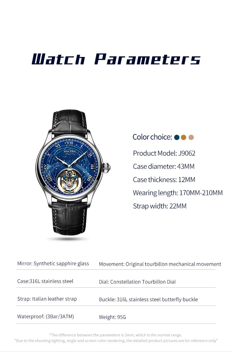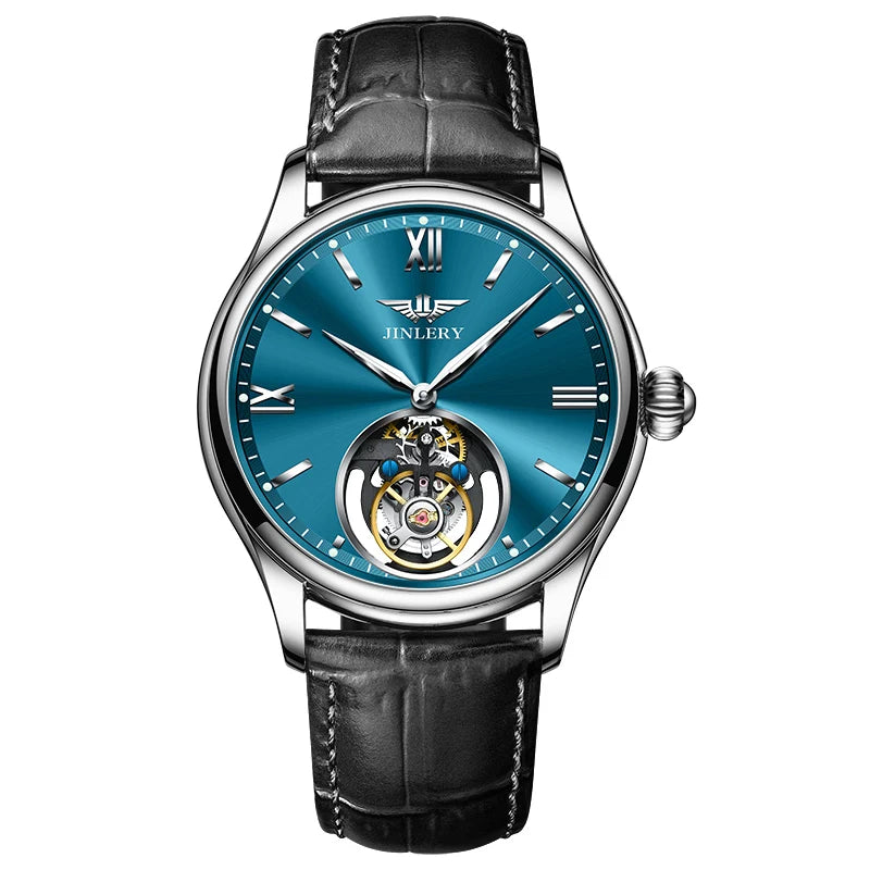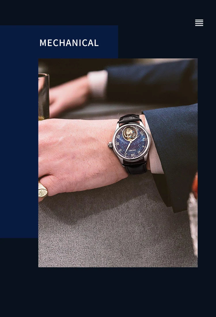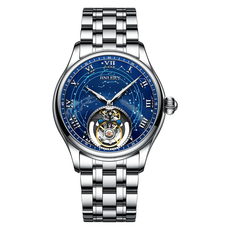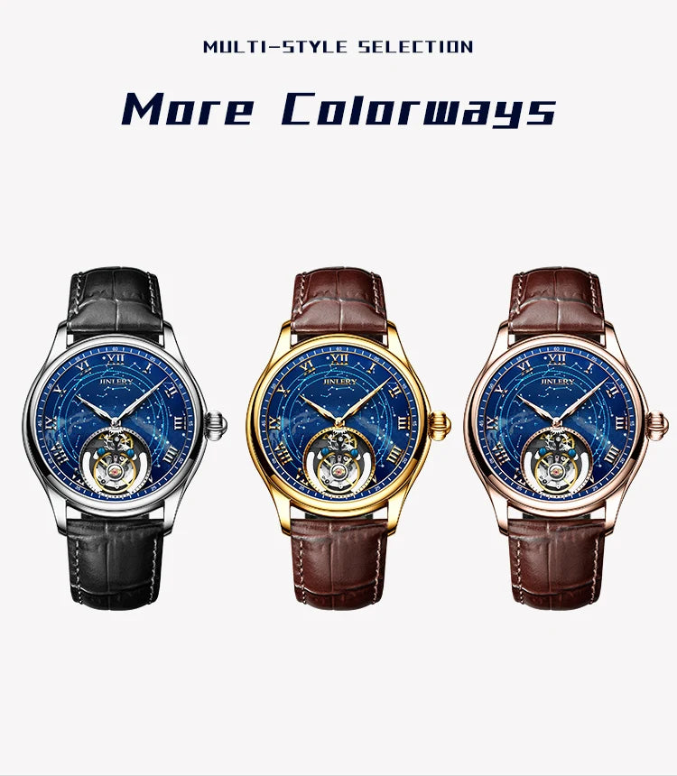 Men's Milky Way Star Sapphire Dial Luxury Leather Flying Tourbillon Mechanical Watch
