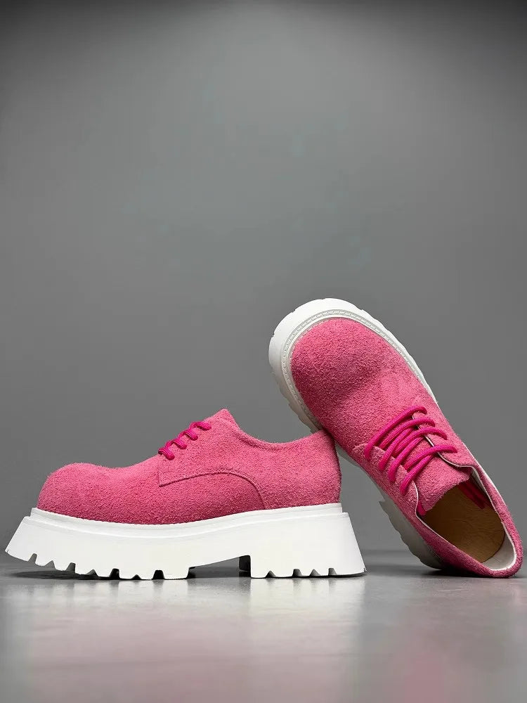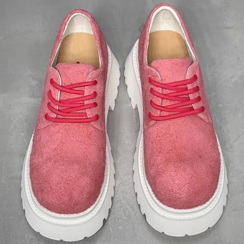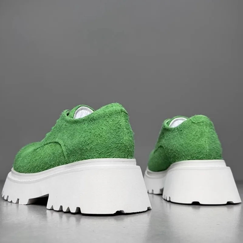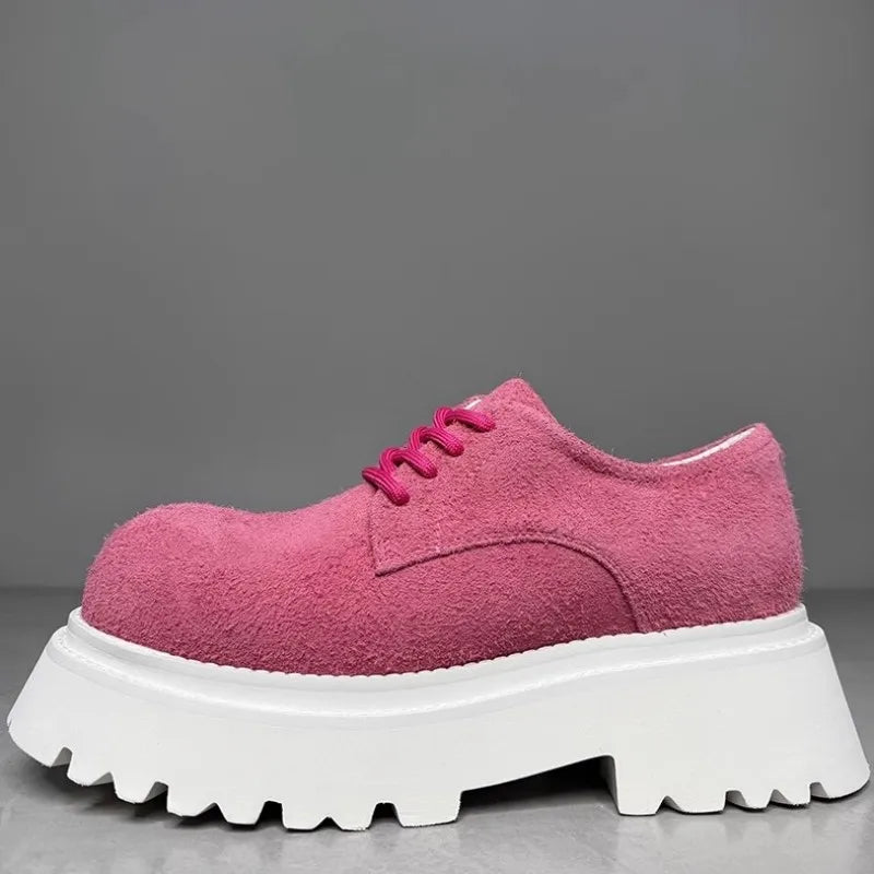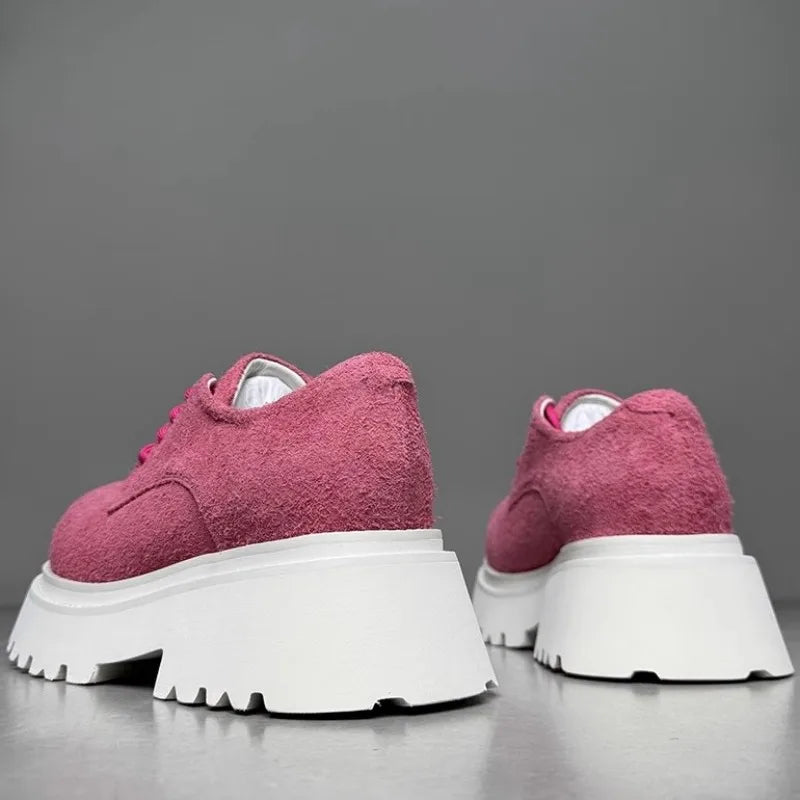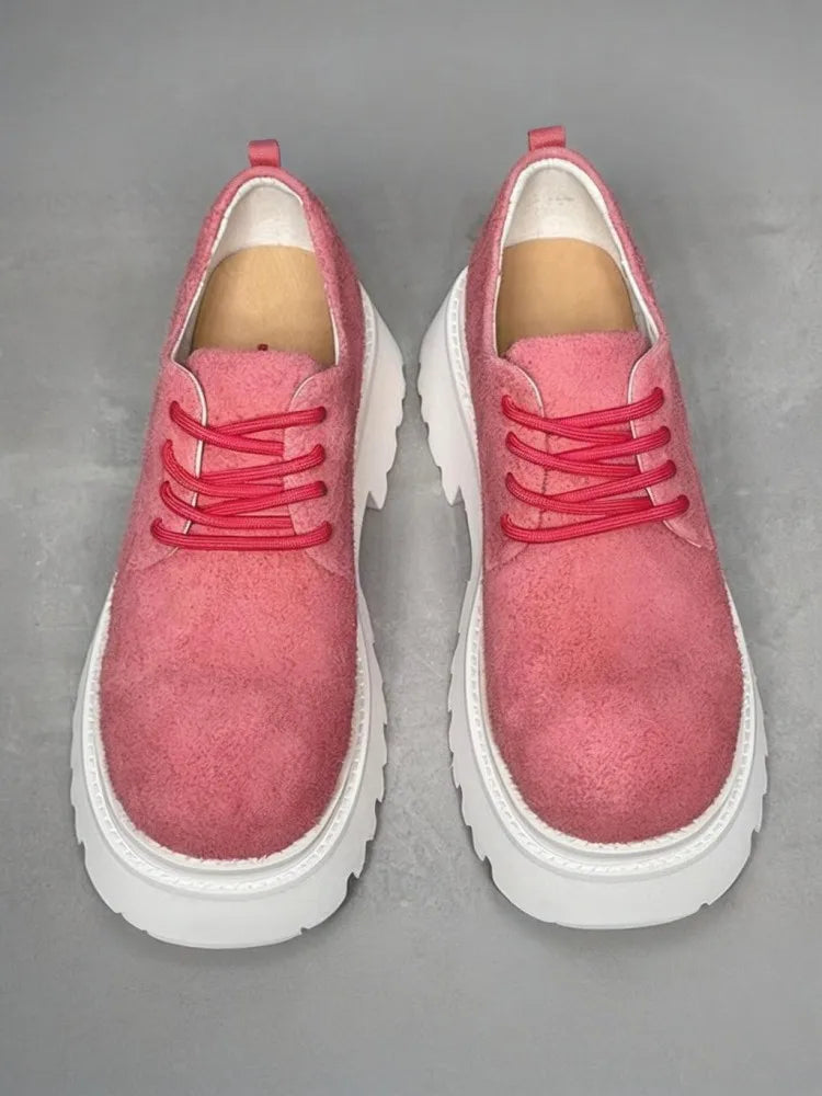Leisure Style Cowhide Suede Platform Height Increasing Lace Up Round Toe Casual Shoes