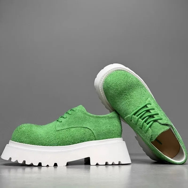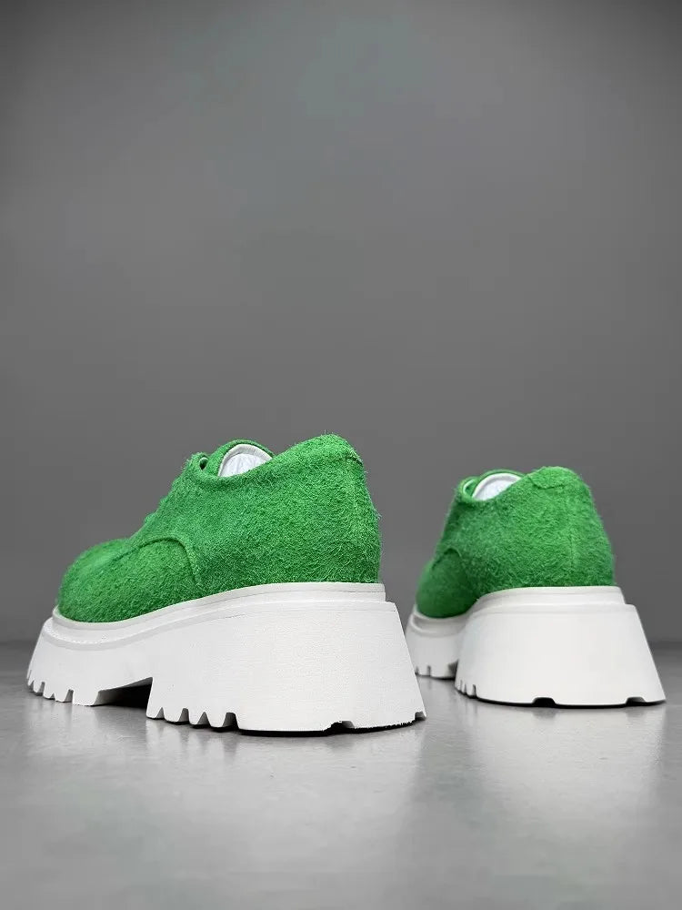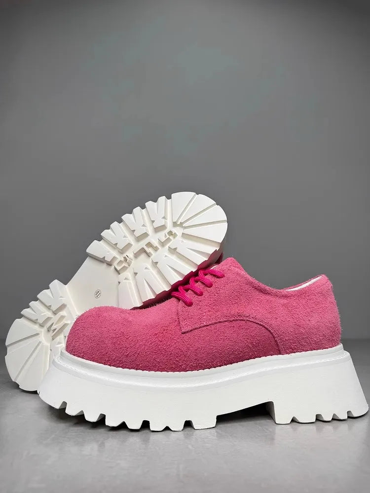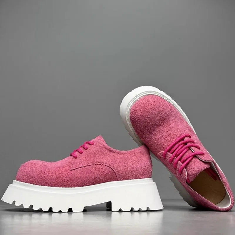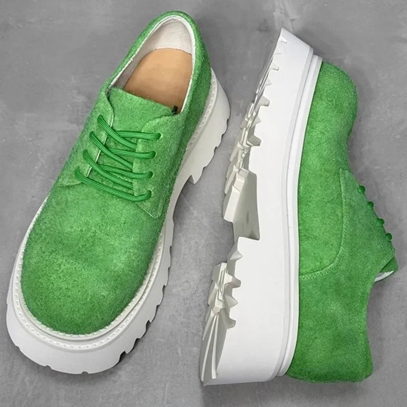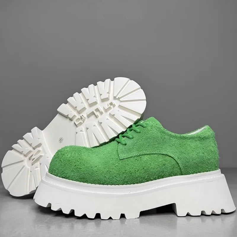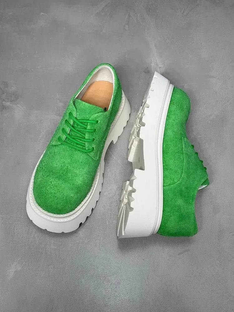 Leisure Style Cowhide Suede Platform Height Increasing Lace Up Round Toe Casual Shoes