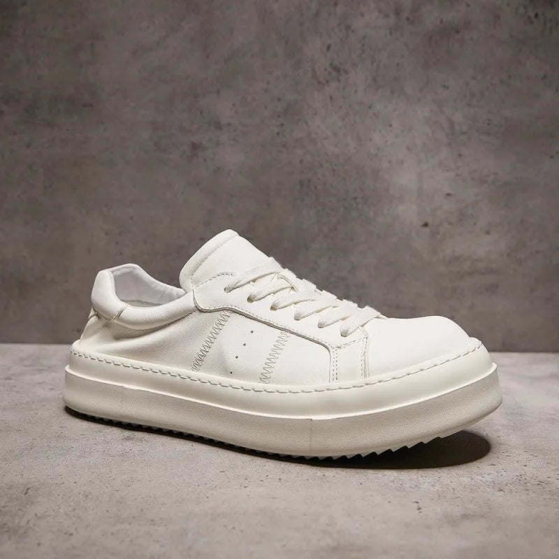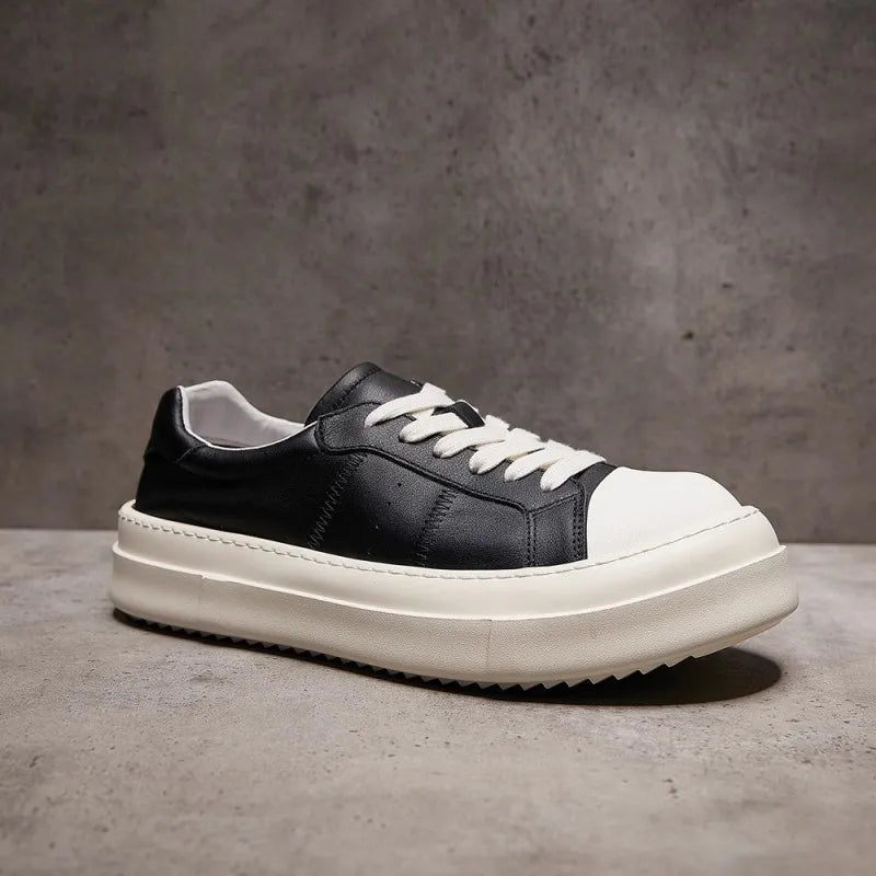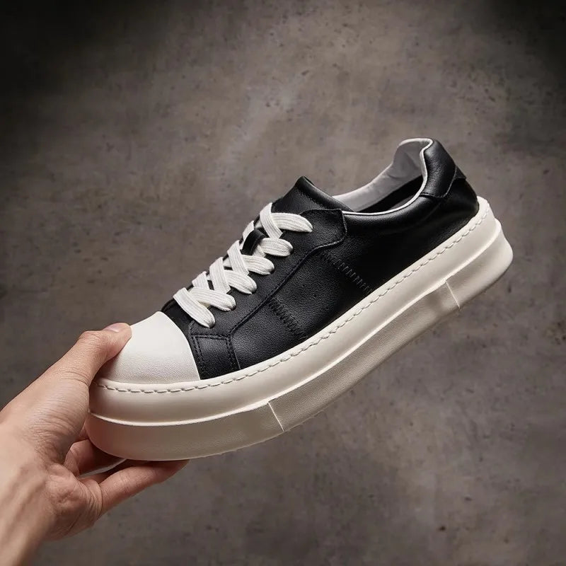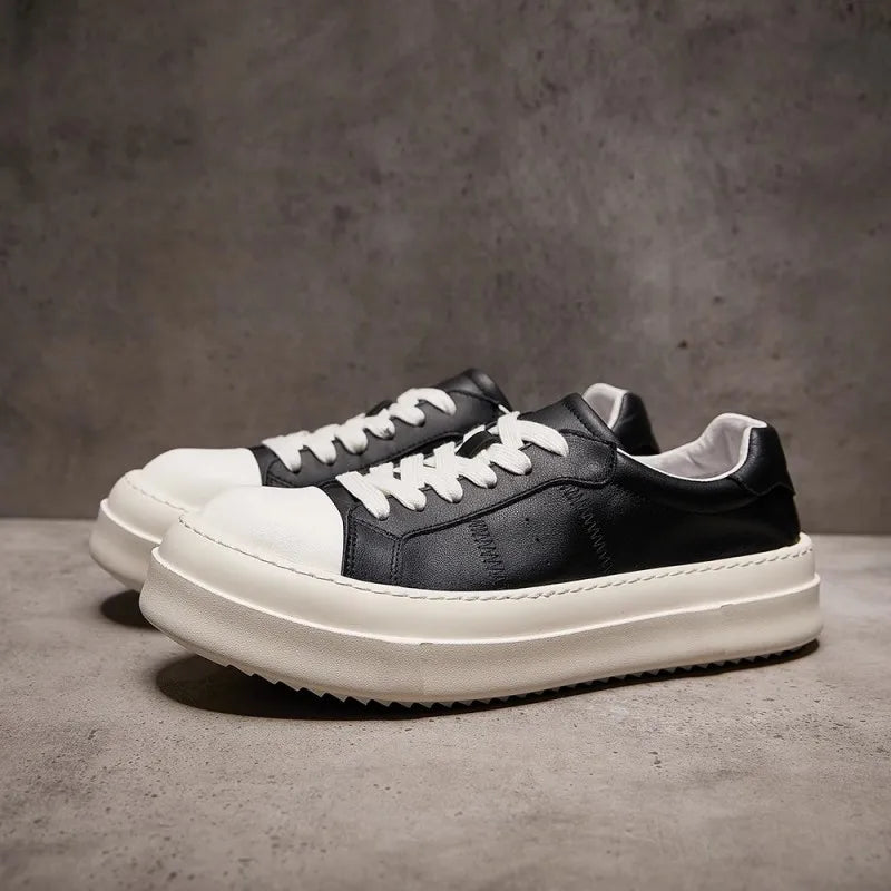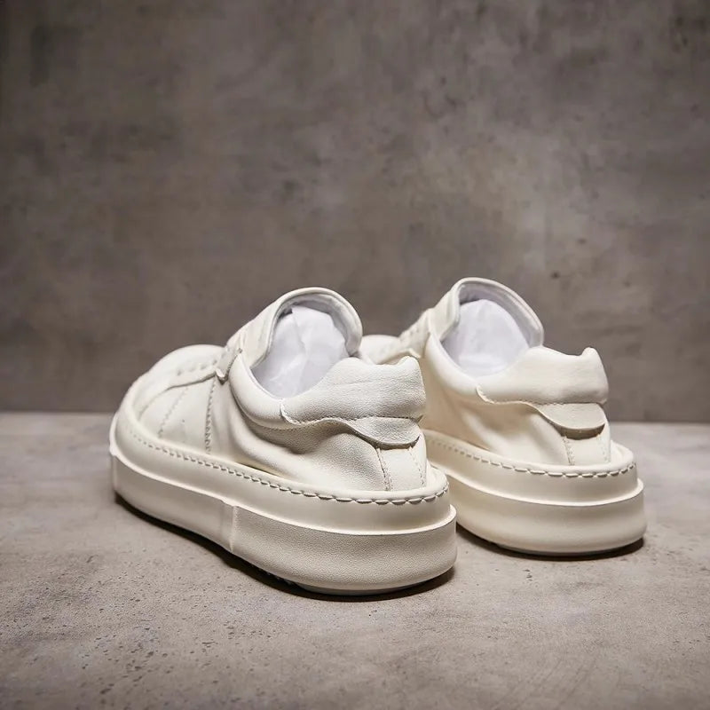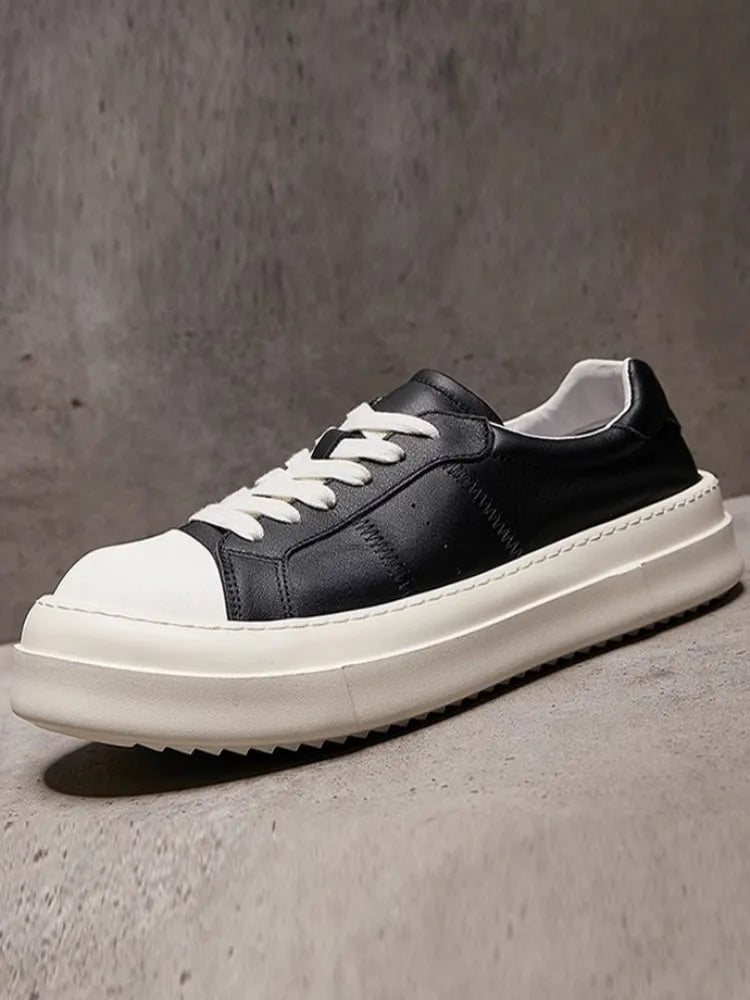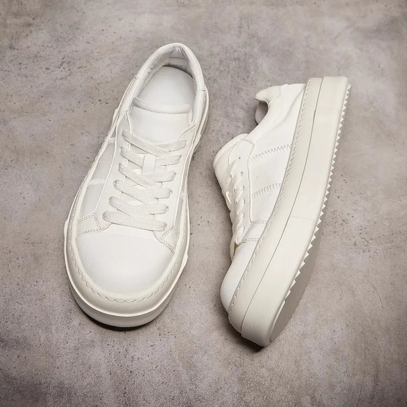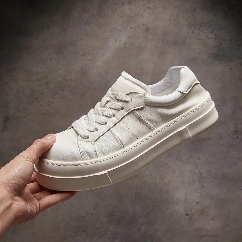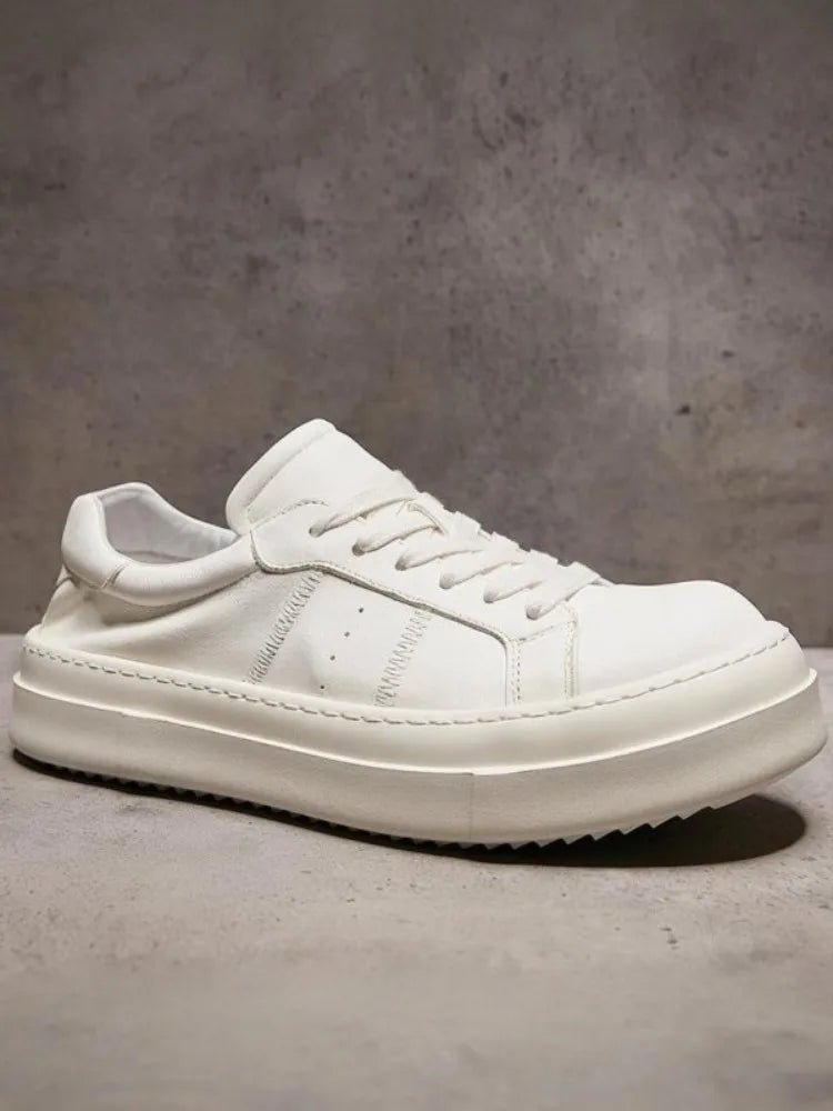 Men's Cowhide Genuine Leather Cross-tied Lace-Up Round Toe Flat Casual Shoes