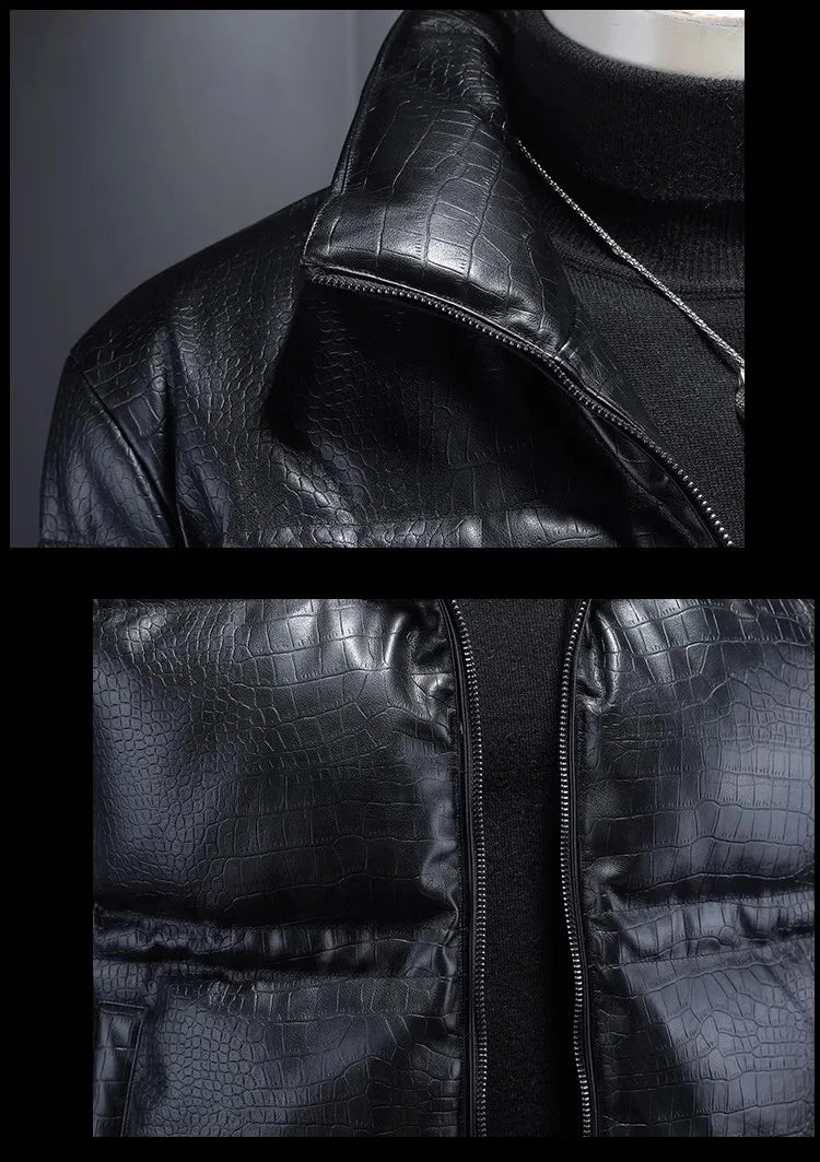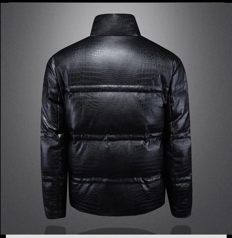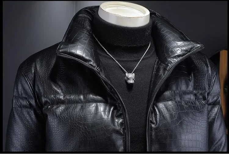 Men's Winter Fashion Warm Thickened 90% White Duck Down Leather Jacket