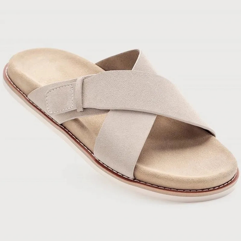 Looking for fashionable men's beach slippers? Then this is for you. The sleek design with a genuine leather upper, open toe and flat heels makes it comfortable and perfect for everyday wear. A lovely, stylish footwear for men!