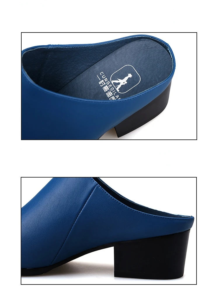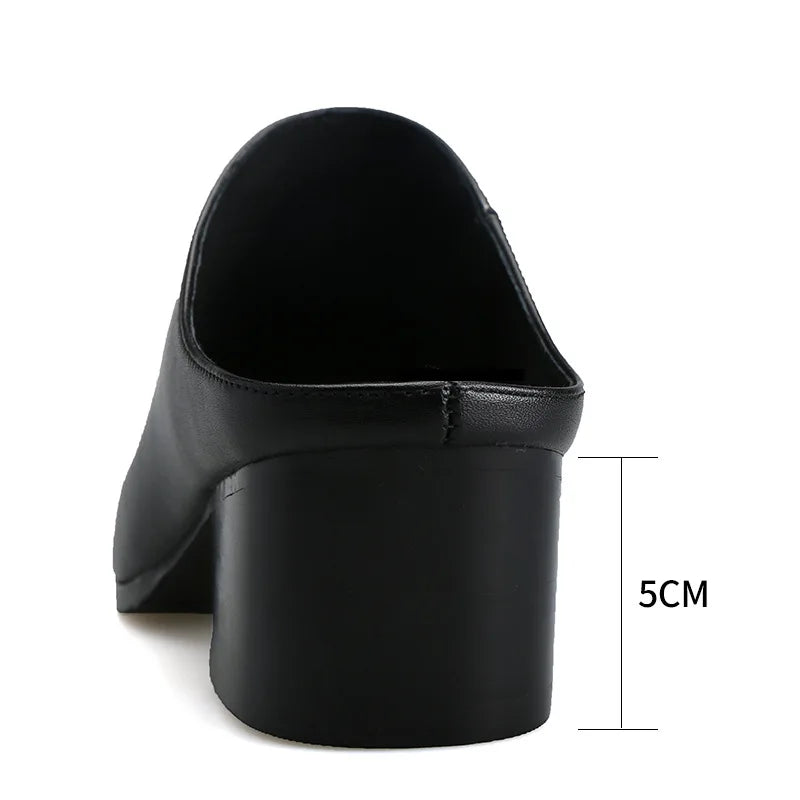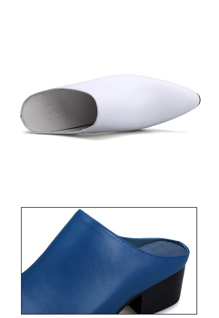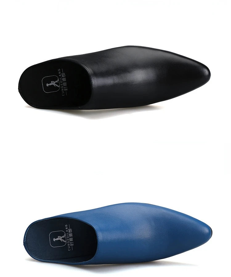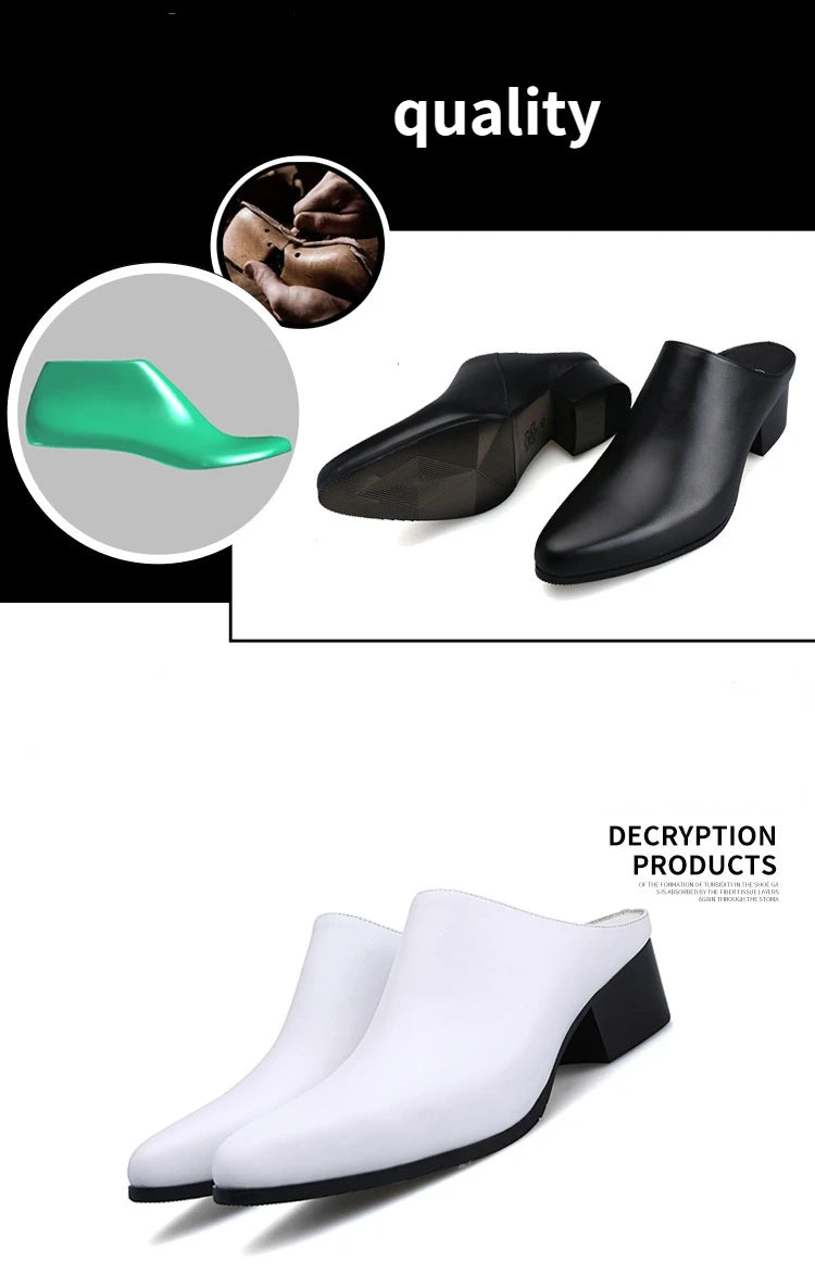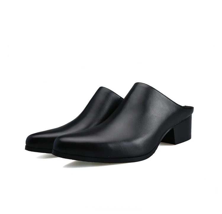 Men's Summer Genuine Leather Pointed Toe 5cm High Heels Half Slippers