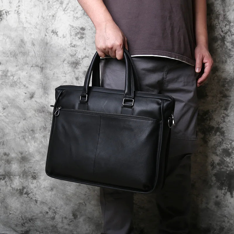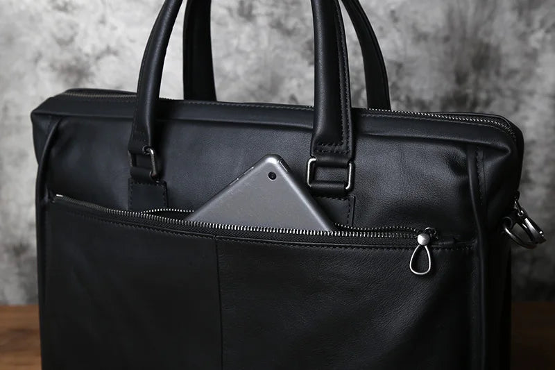 Men's Genuine Leather Business Cross-Section Computer Briefcase Messenger Bag