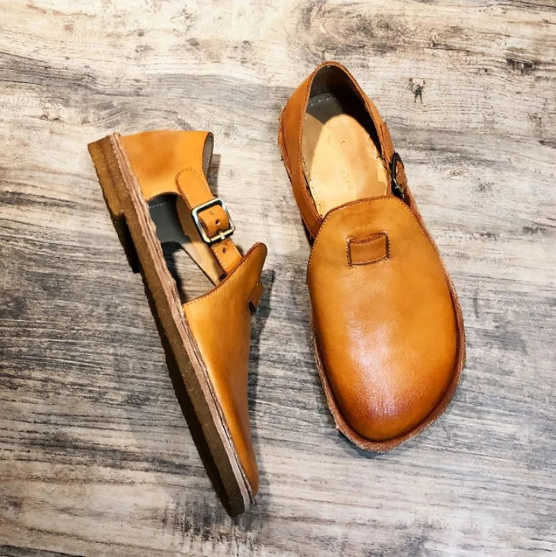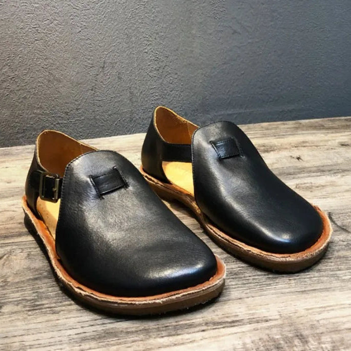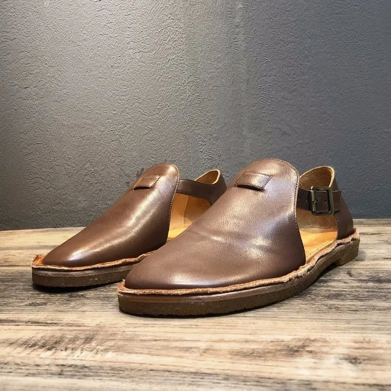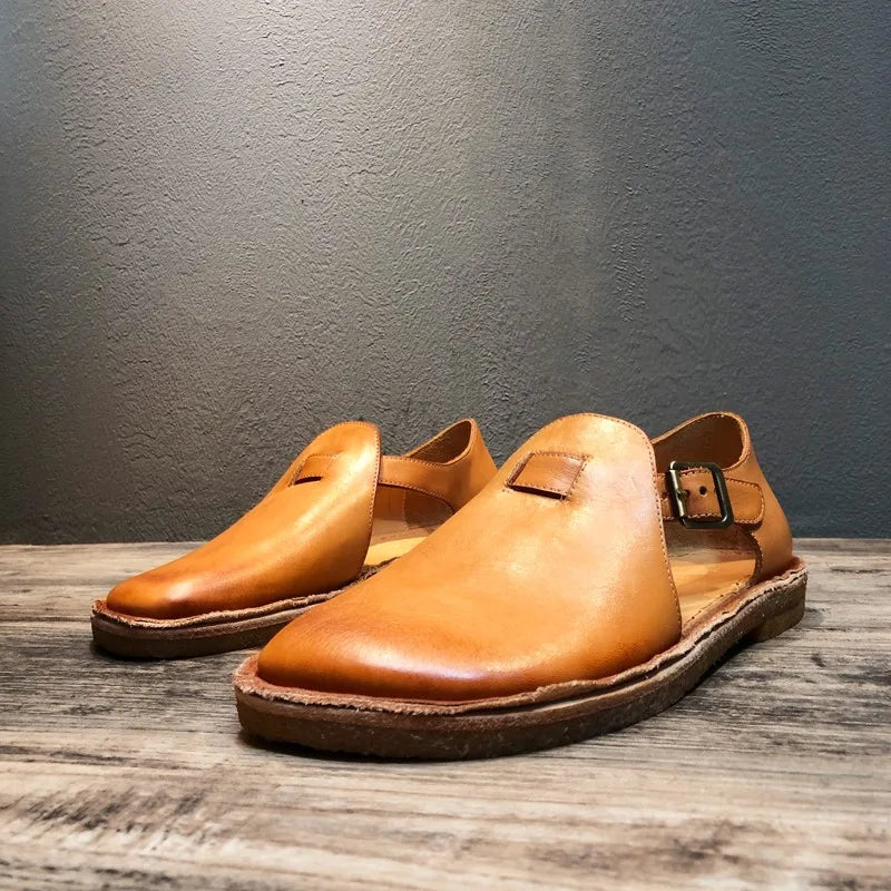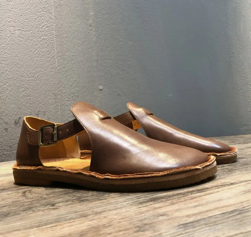 Men's Buckle Strap Round Toe Breathable Casual Handmade Roman Sandals