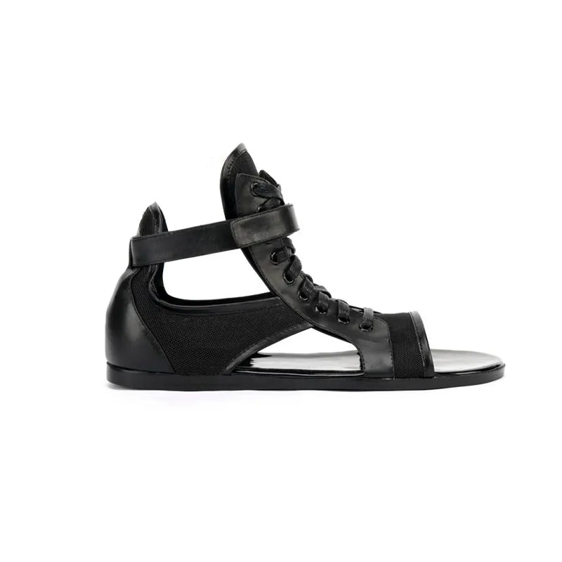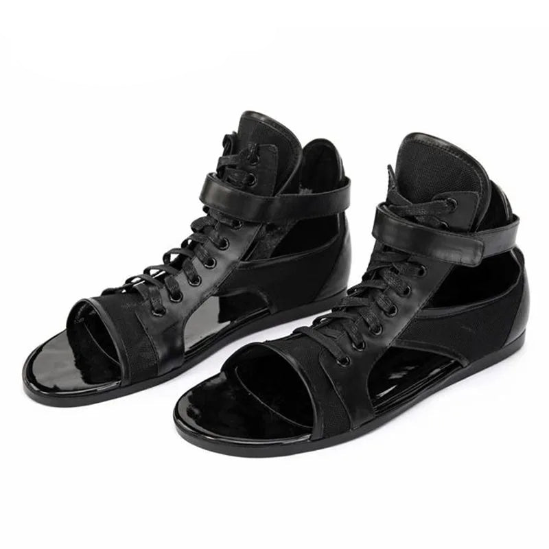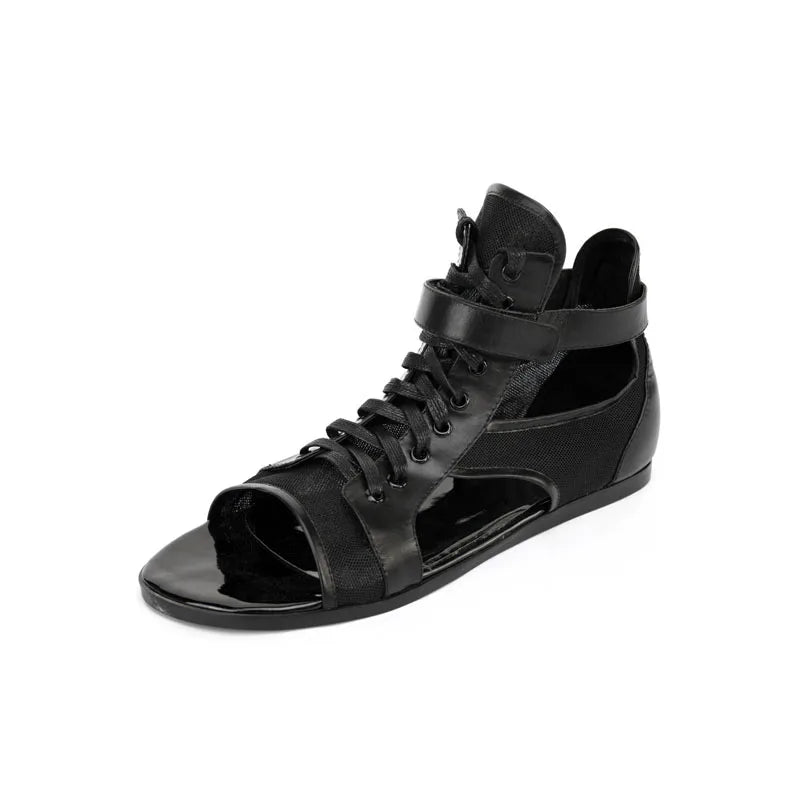 Men's Summer Beach Outdoor Leather Black Lace Up Gladiator Sandals