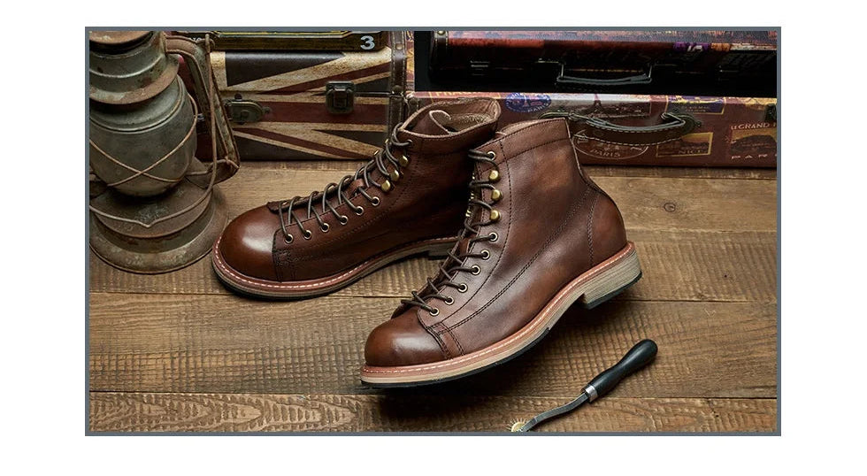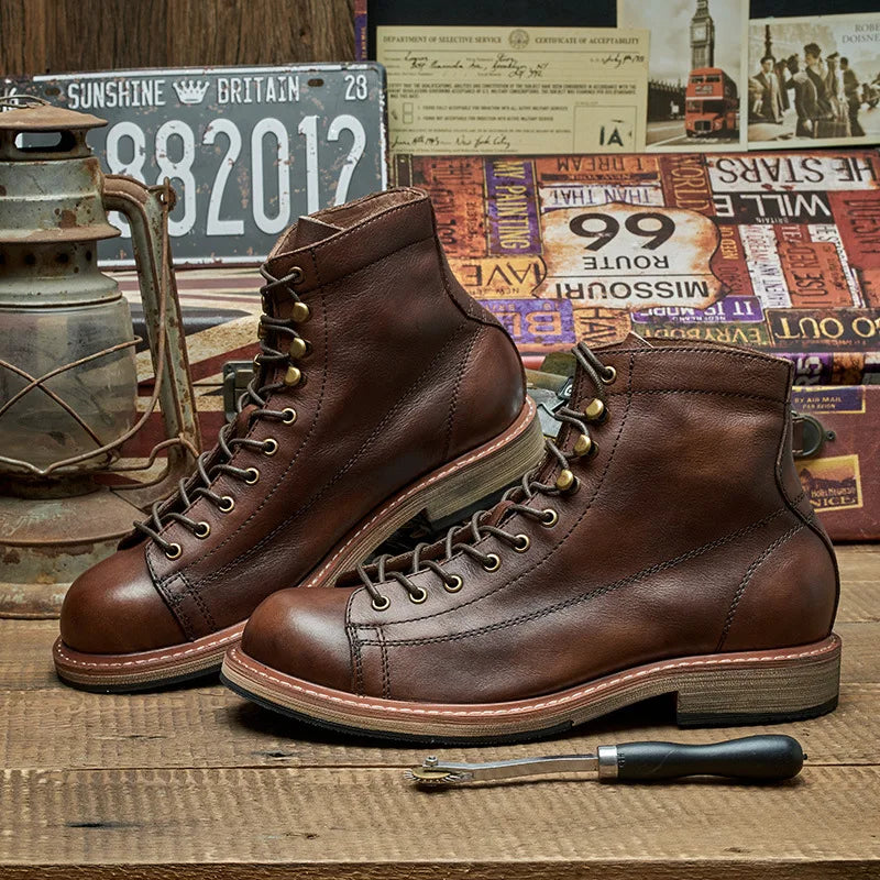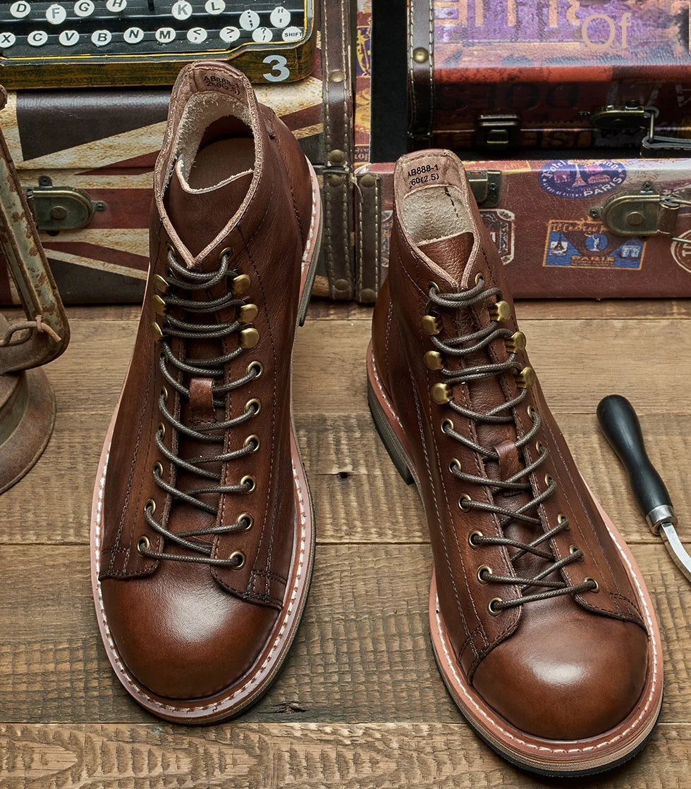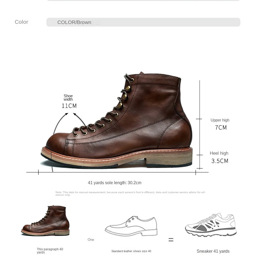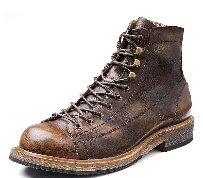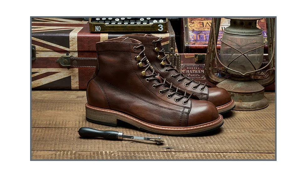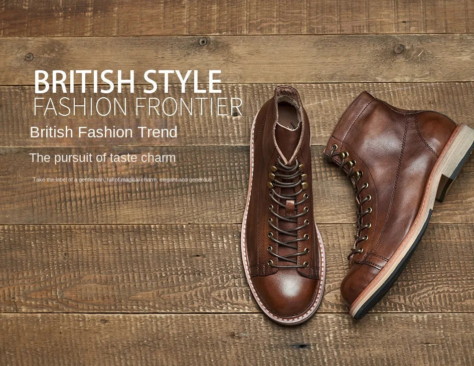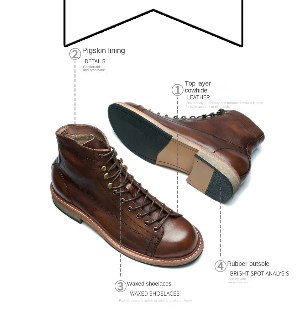 Men's Winter Retro British Style Genuine Leather Rivet Ankle Boots