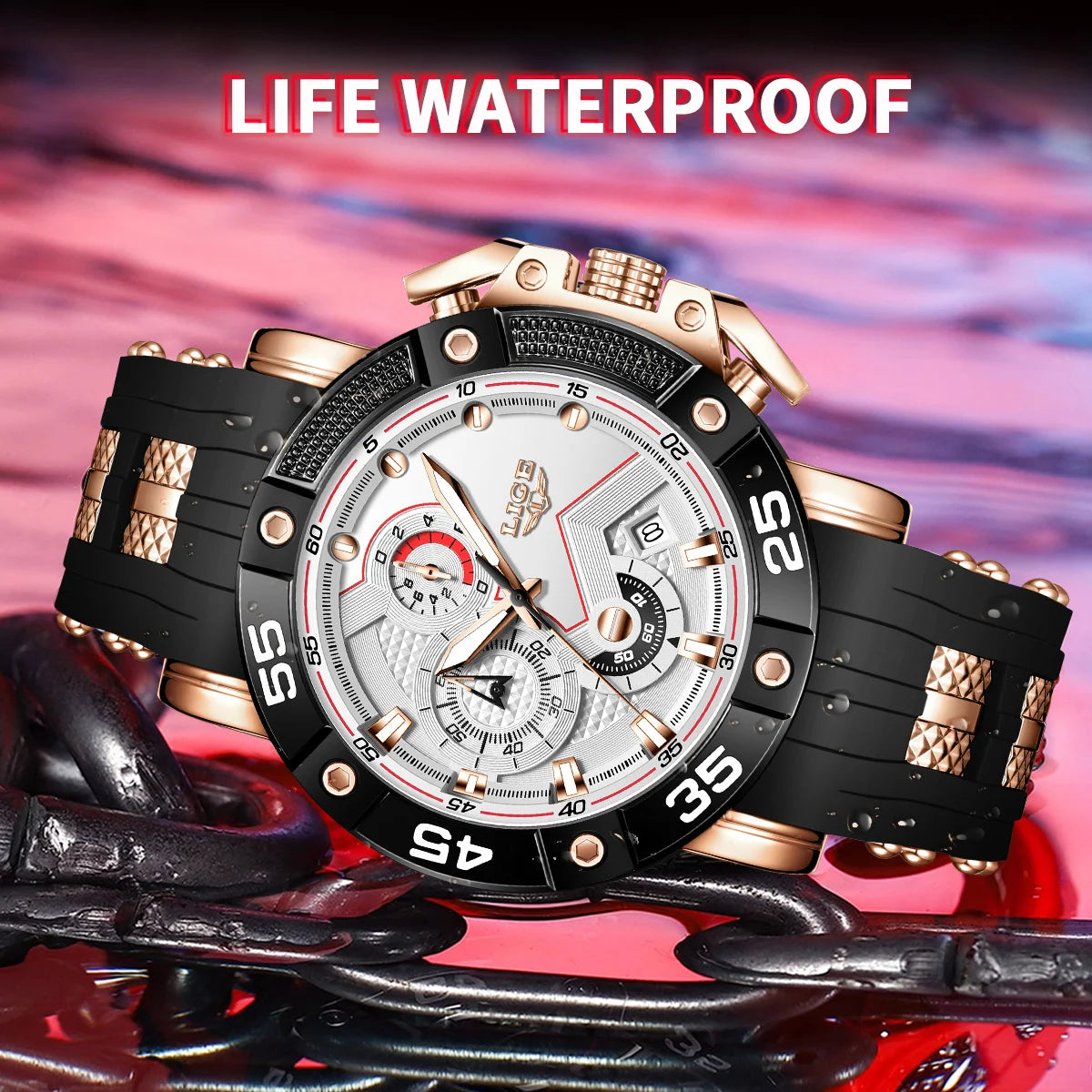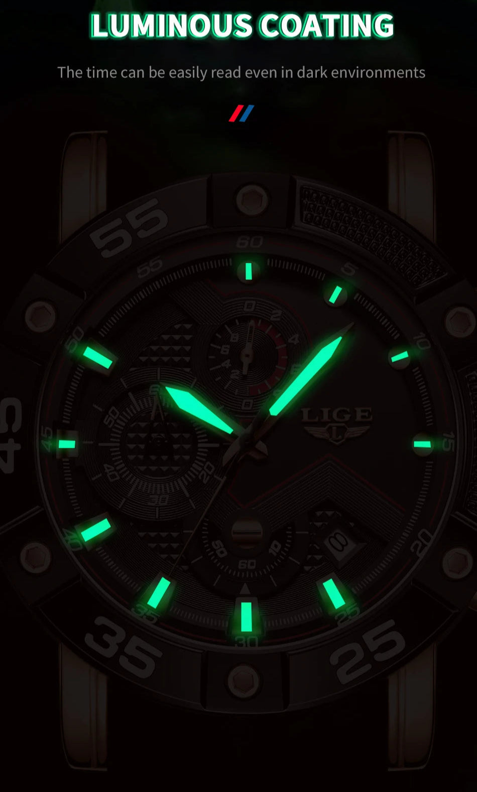 Feature: STOP WATCH,Back Light,Shock Resistant,Rattrapante,Luminous,Auto Date,Chronograph,Complete Calendar,Water Resistant,swim,luminous hands