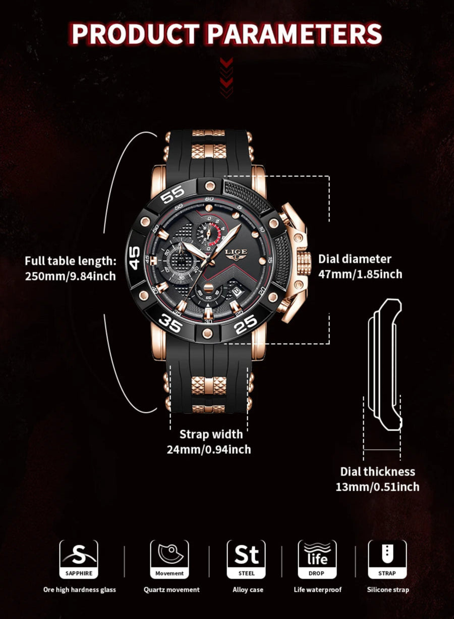 Men's Luxury Big Dial Silicone Military Sports Style Waterproof Quartz Watch