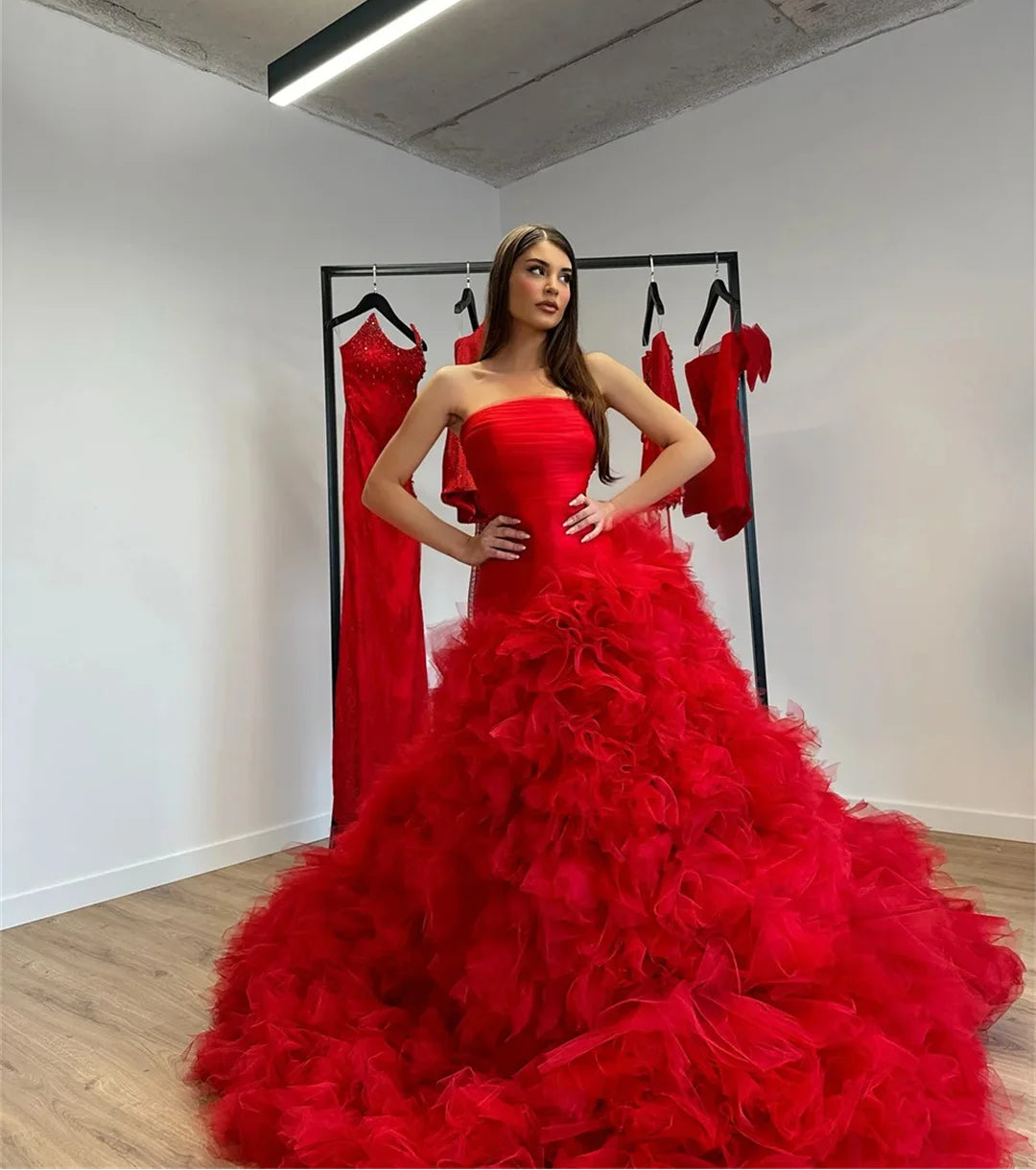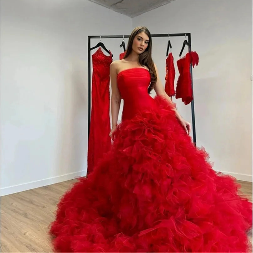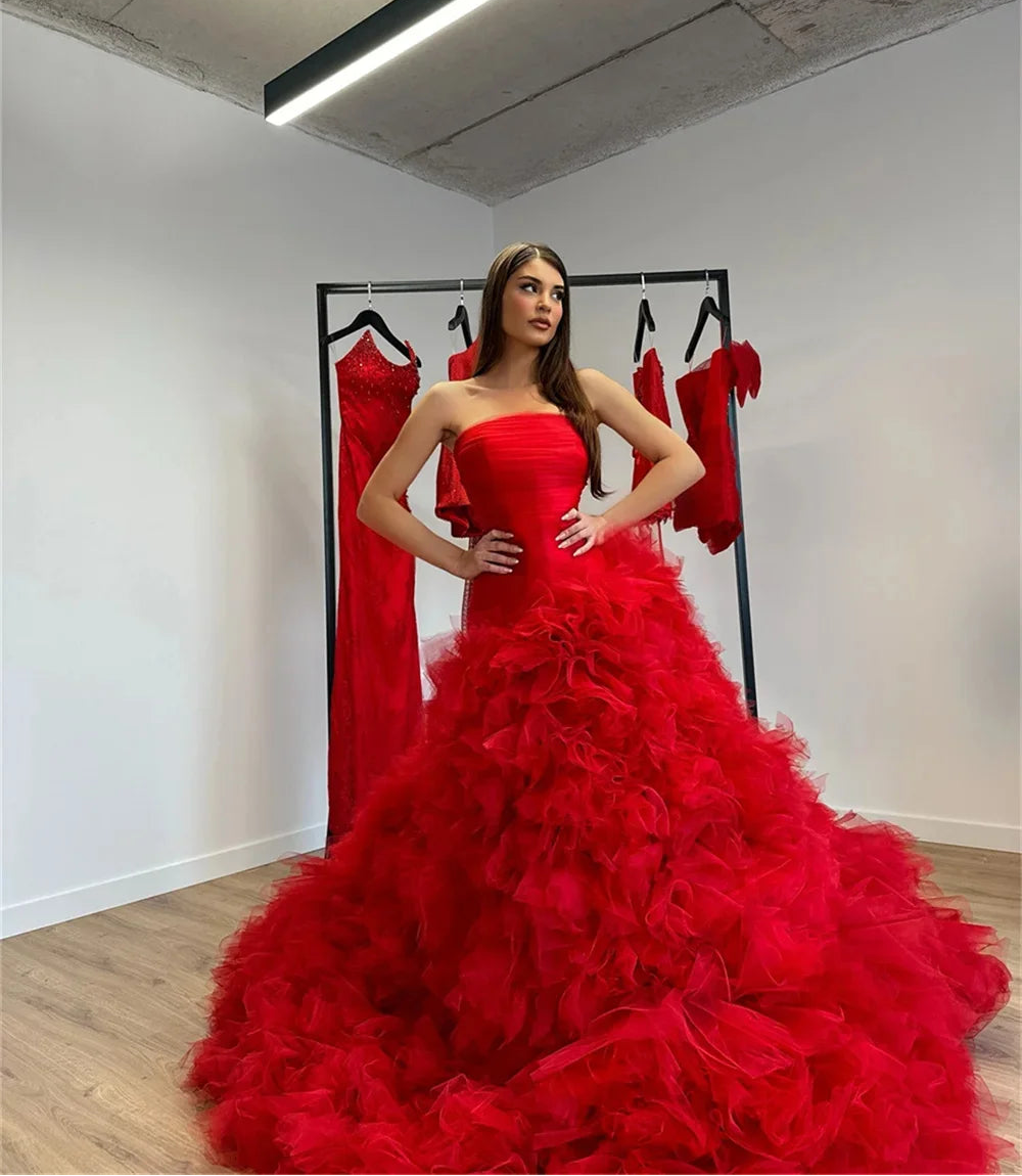Women's Luxury Red Multi-layer Ball Gown Prom Dress