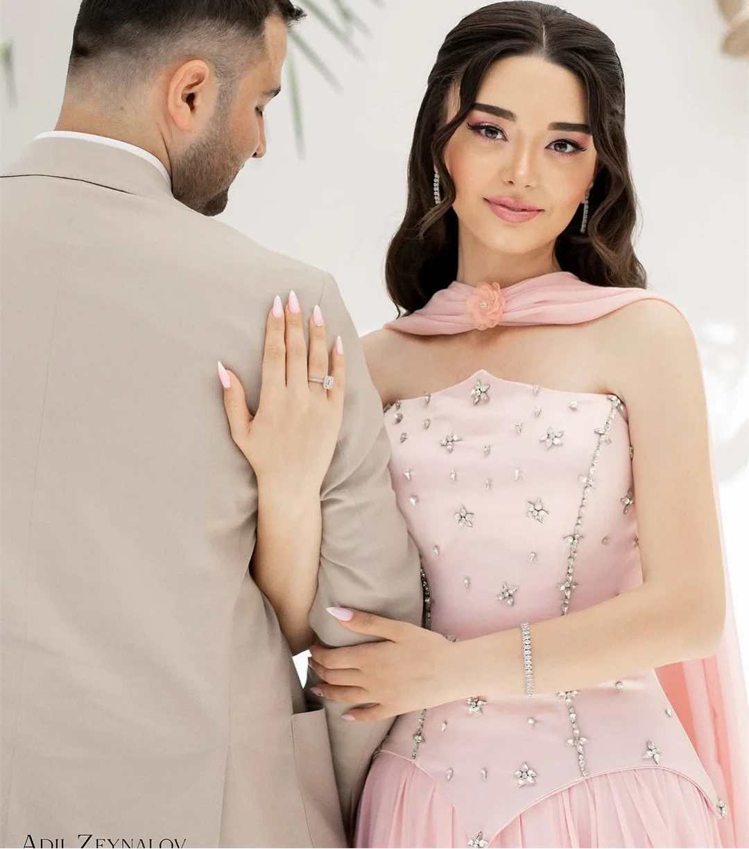 Women's Pink A-line Shawl Rhinestone Evening Party Prom Gown