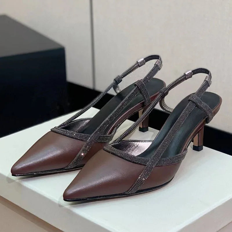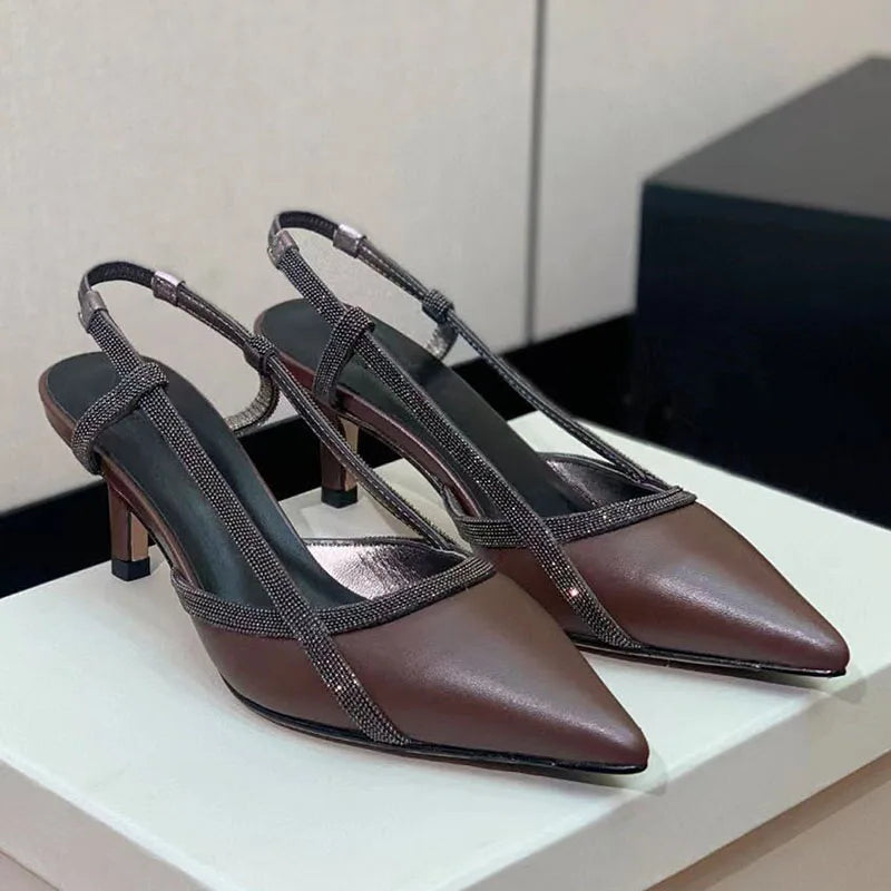 Women's Coffee 5cm High Heels Pointed Toe Slingbacks Suede Leather Runway Shoes