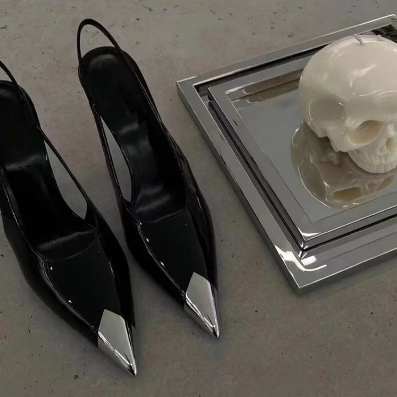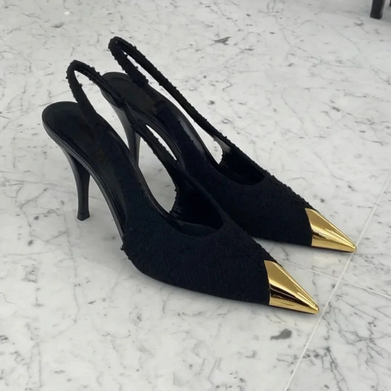 Women's Metal Decor Pointed Toe Toe-Covered Slingback High Heels Sandals
