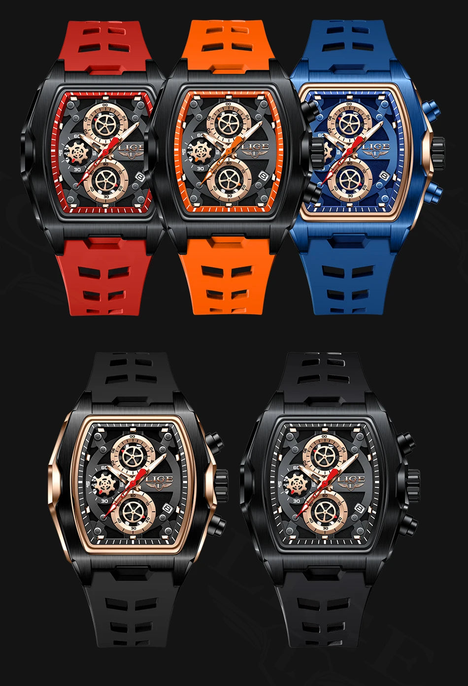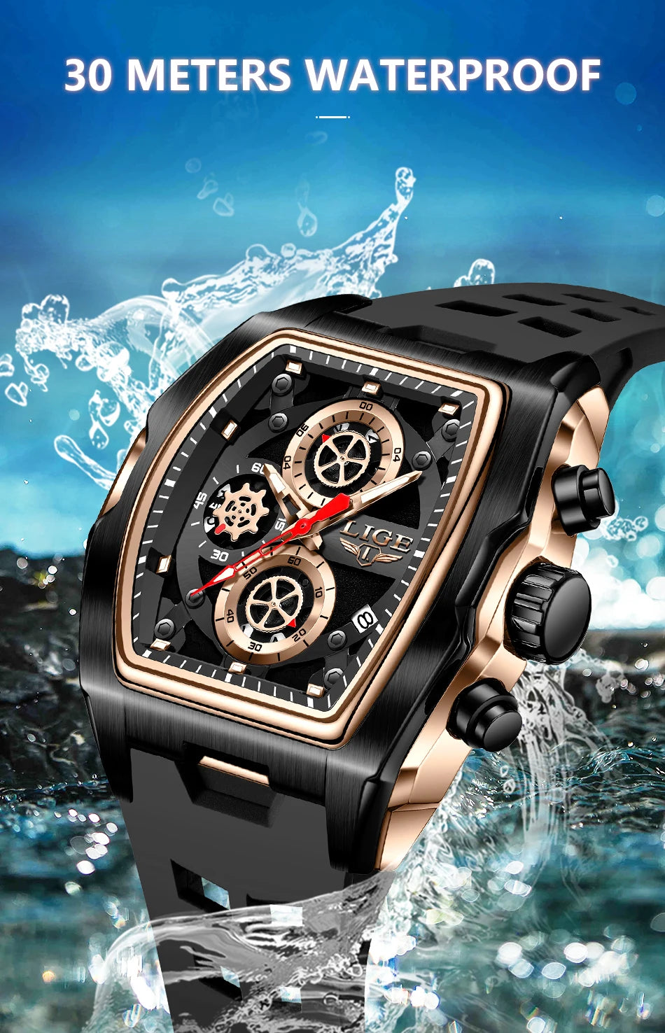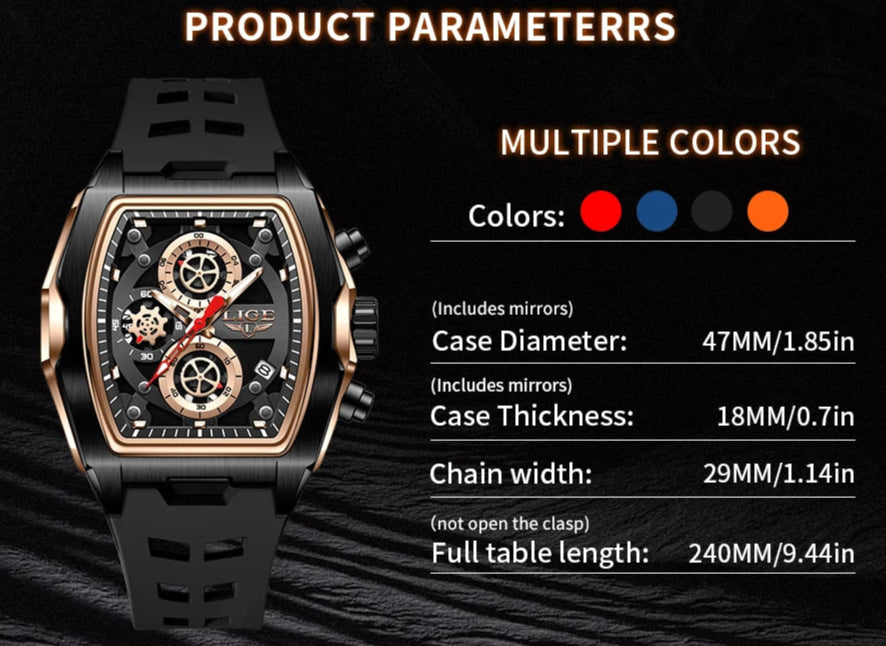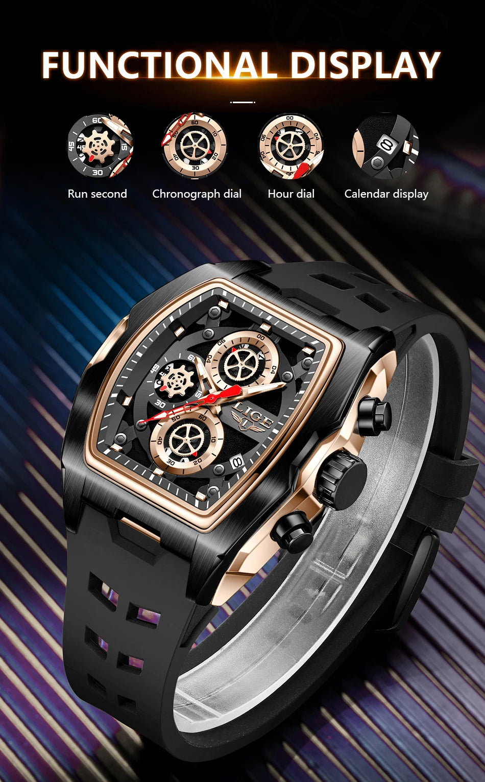 Complementing any outfit effortlessly, this excellent men's watch will make you look more stylish. The silicone strap and alloy casing not only look elegant and stylish, but are also comfortable to wear. An excellent watch with stop watch, back light, shock resistance, luminous display, auto date and chronograph. It is also waterproof, making it perfect for humid environments and water activities. Offers both practicality and elegance!