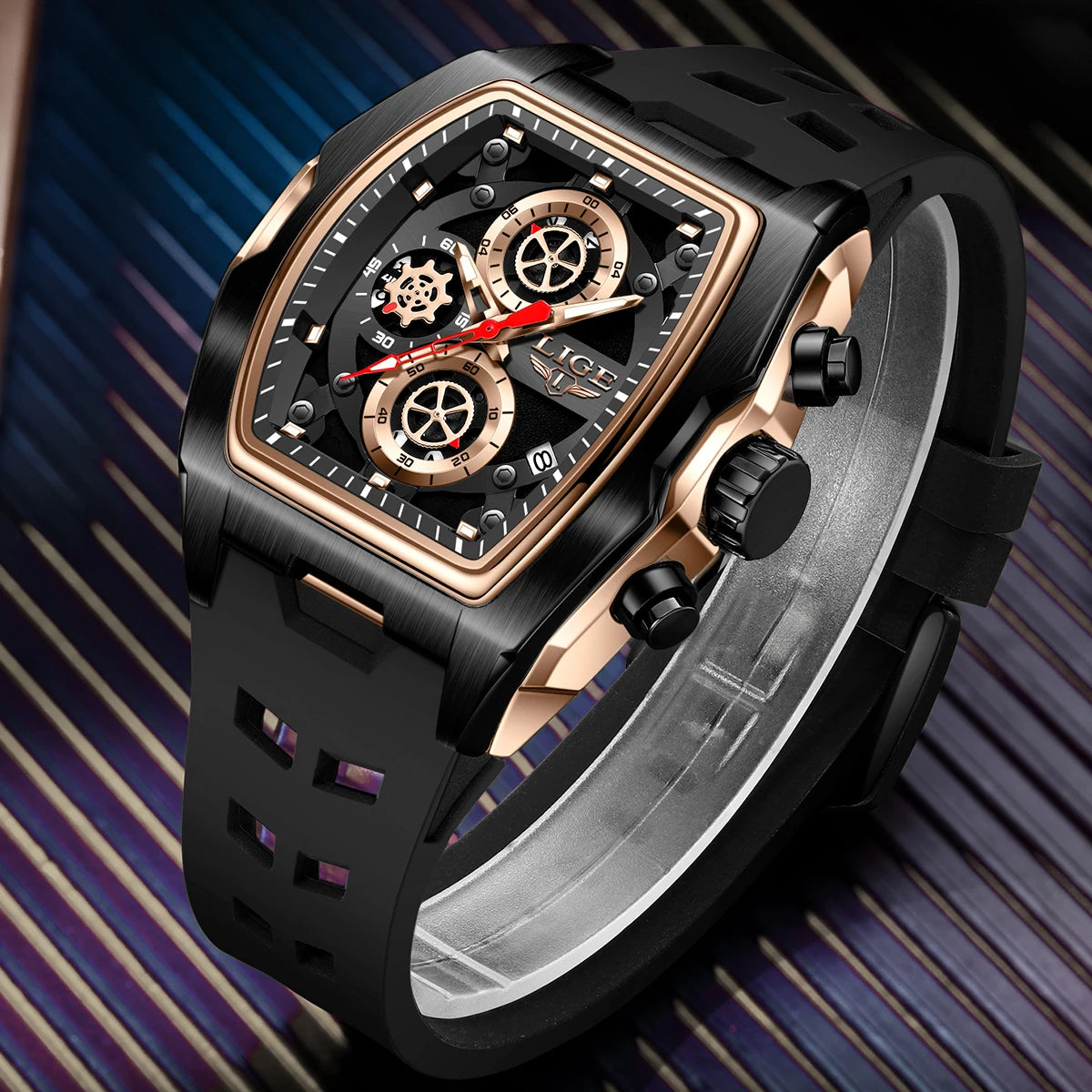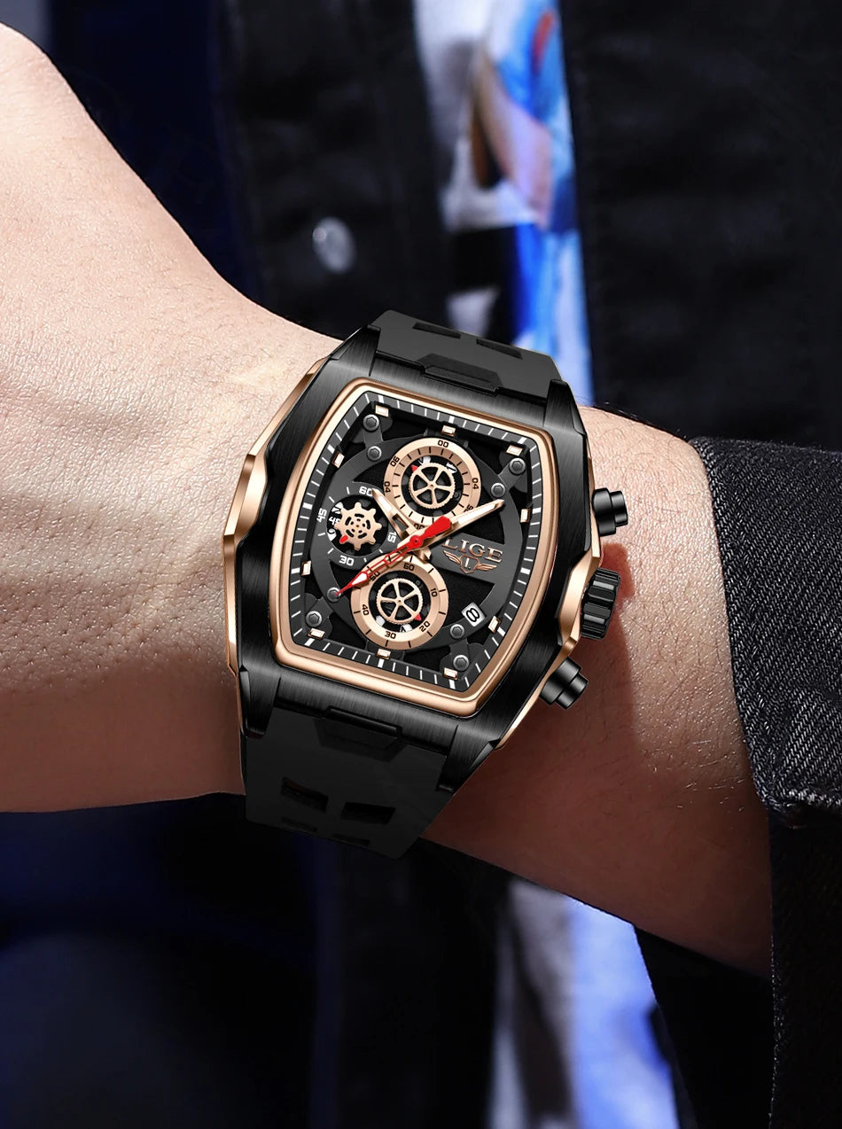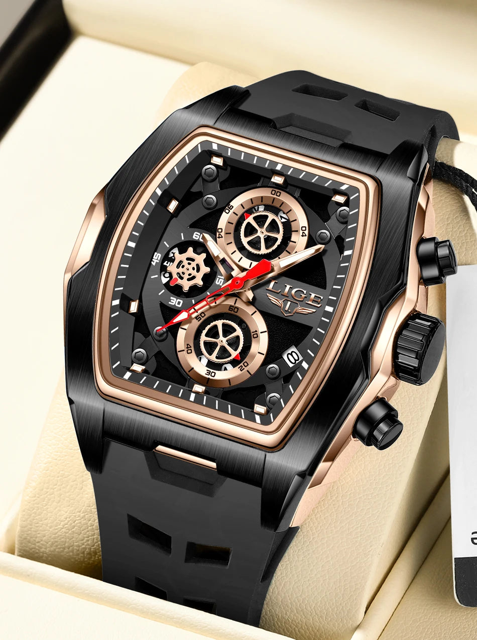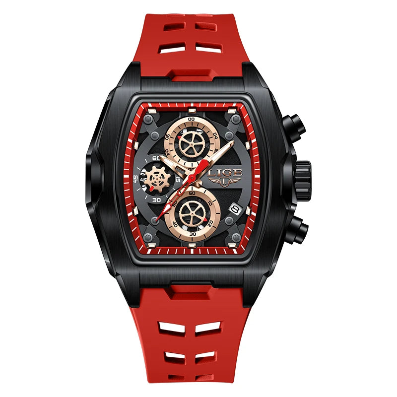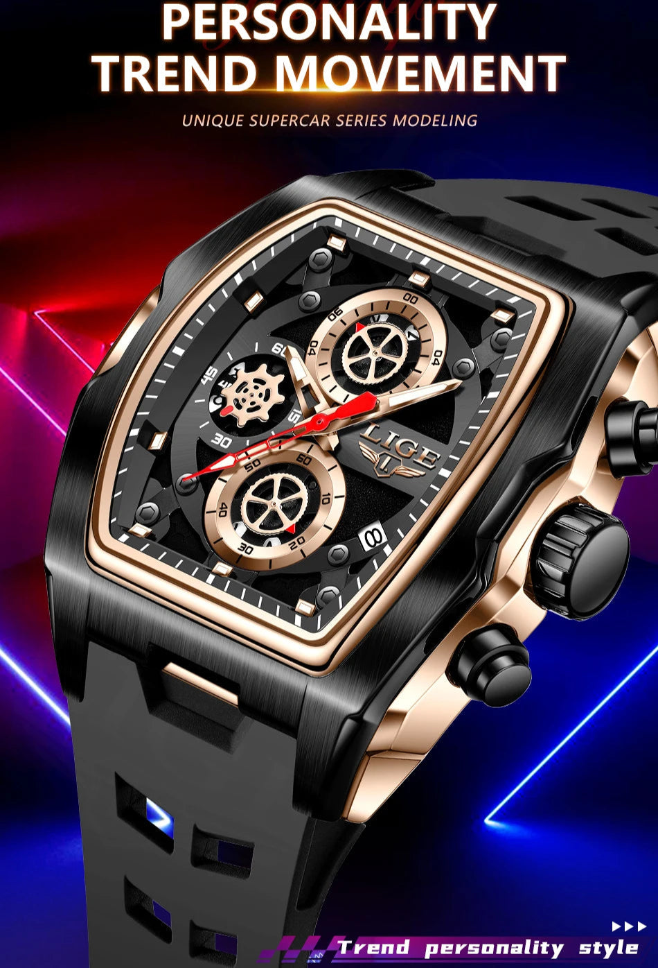 Complementing any outfit effortlessly, this excellent men's watch will make you look more stylish. The silicone strap and alloy casing not only look elegant and stylish, but are also comfortable to wear. An excellent watch with stop watch, back light, shock resistance, luminous display, auto date and chronograph. It is also waterproof, making it perfect for humid environments and water activities. Offers both practicality and elegance!