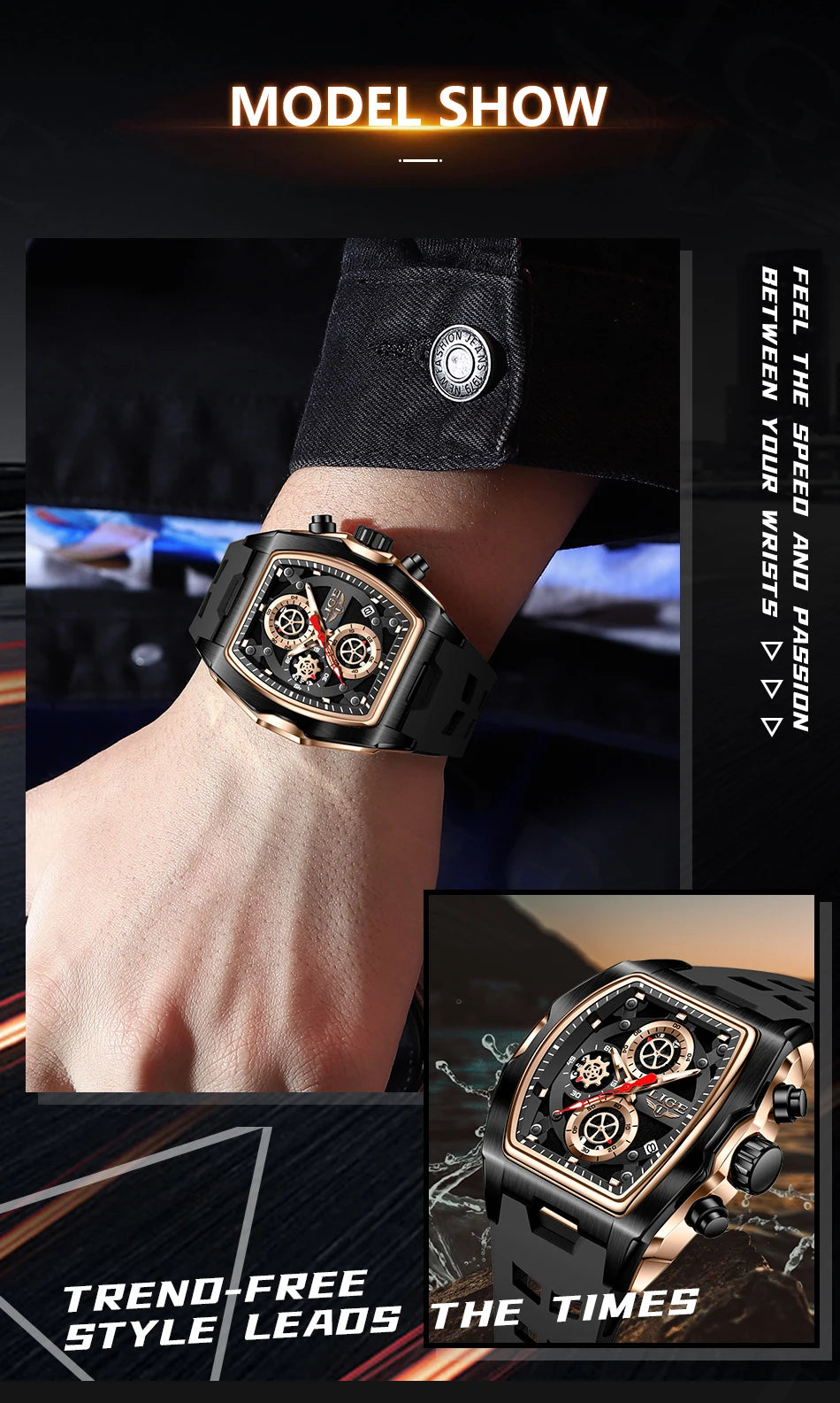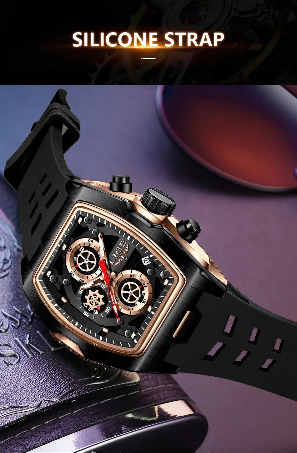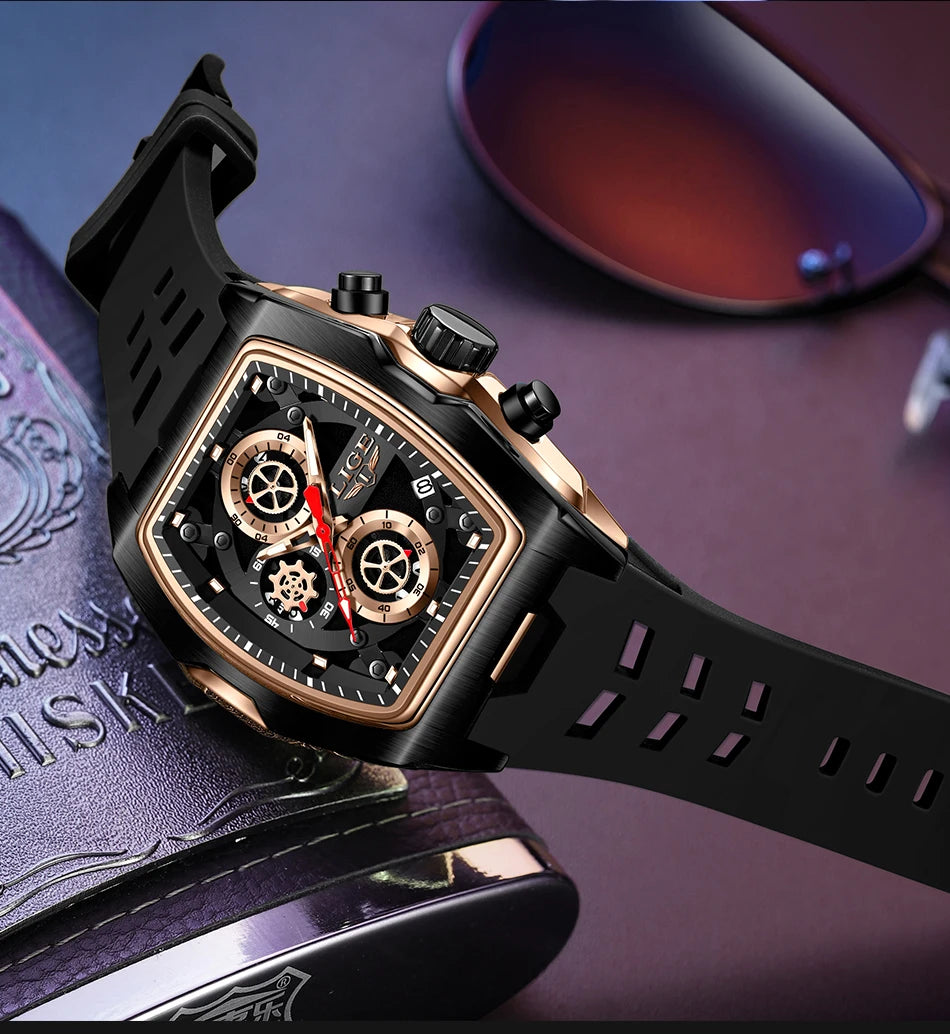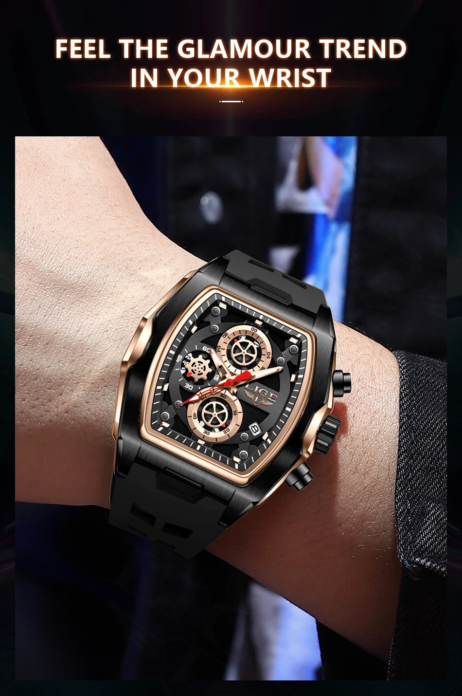 Complementing any outfit effortlessly, this excellent men's watch will make you look more stylish. The silicone strap and alloy casing not only look elegant and stylish, but are also comfortable to wear. An excellent watch with stop watch, back light, shock resistance, luminous display, auto date and chronograph. It is also waterproof, making it perfect for humid environments and water activities. Offers both practicality and elegance!