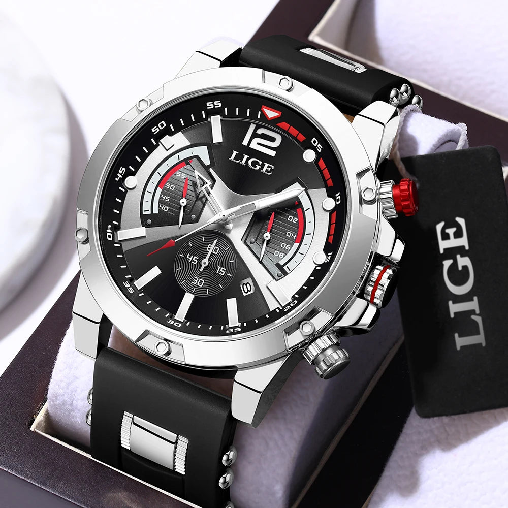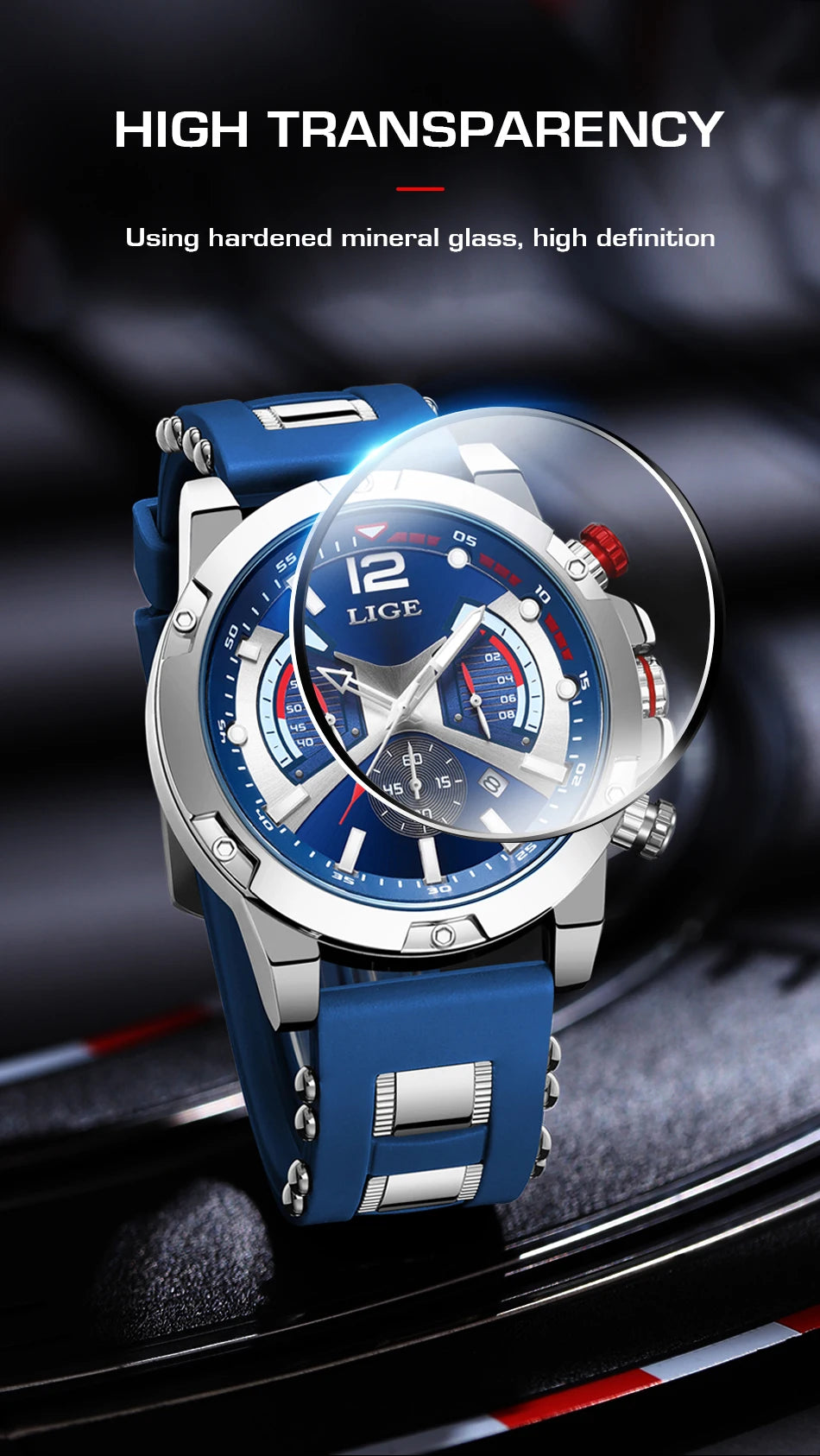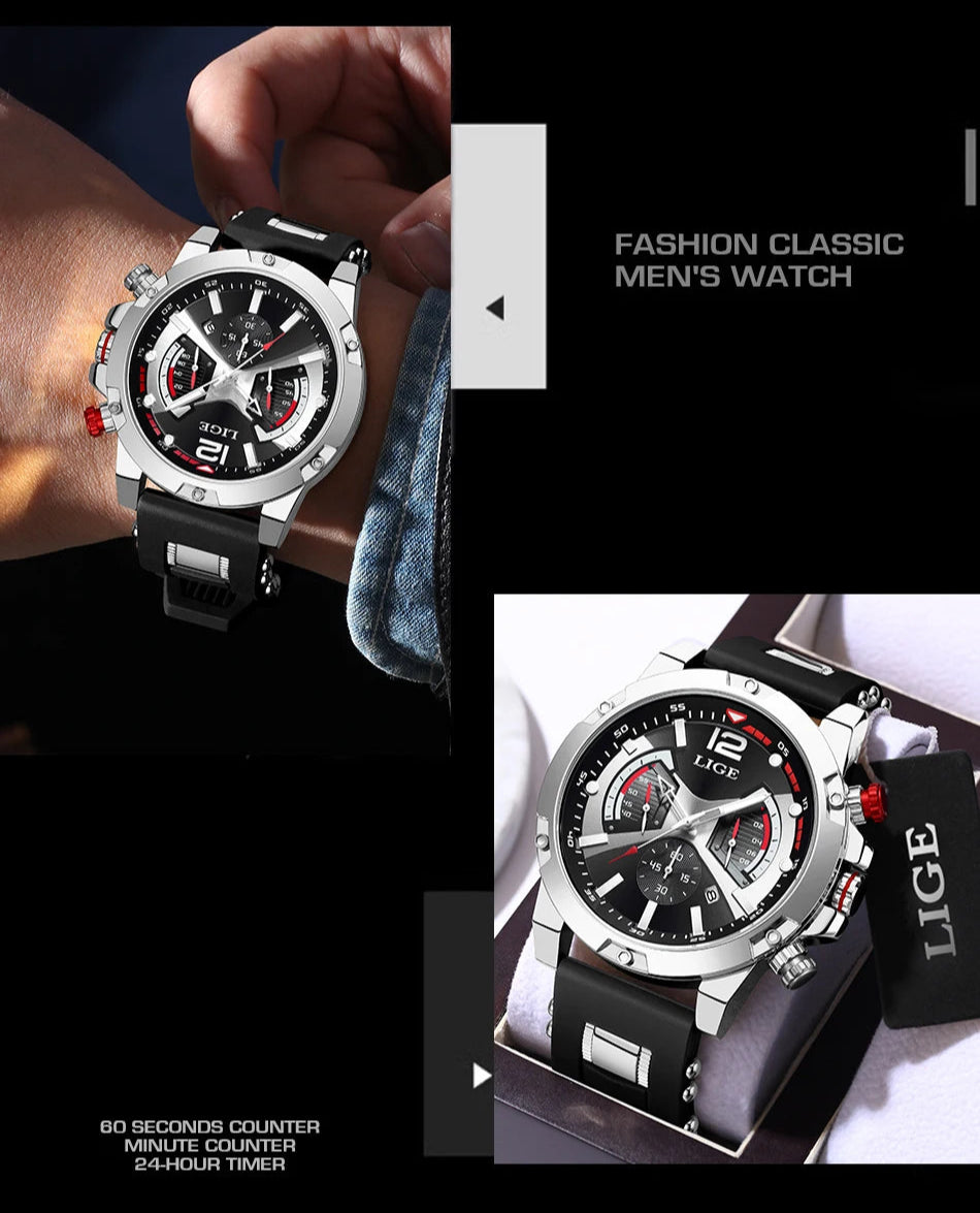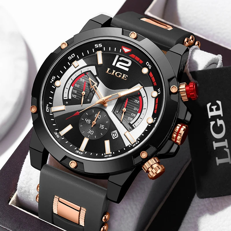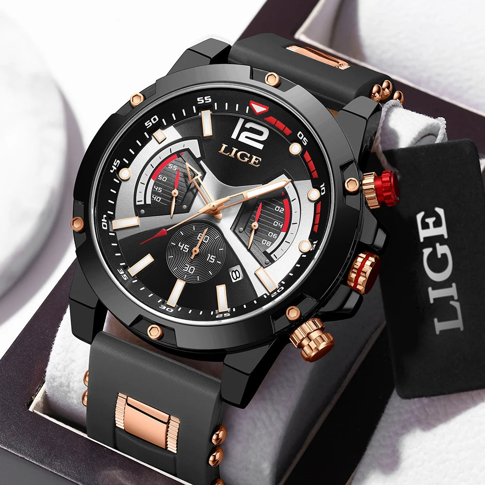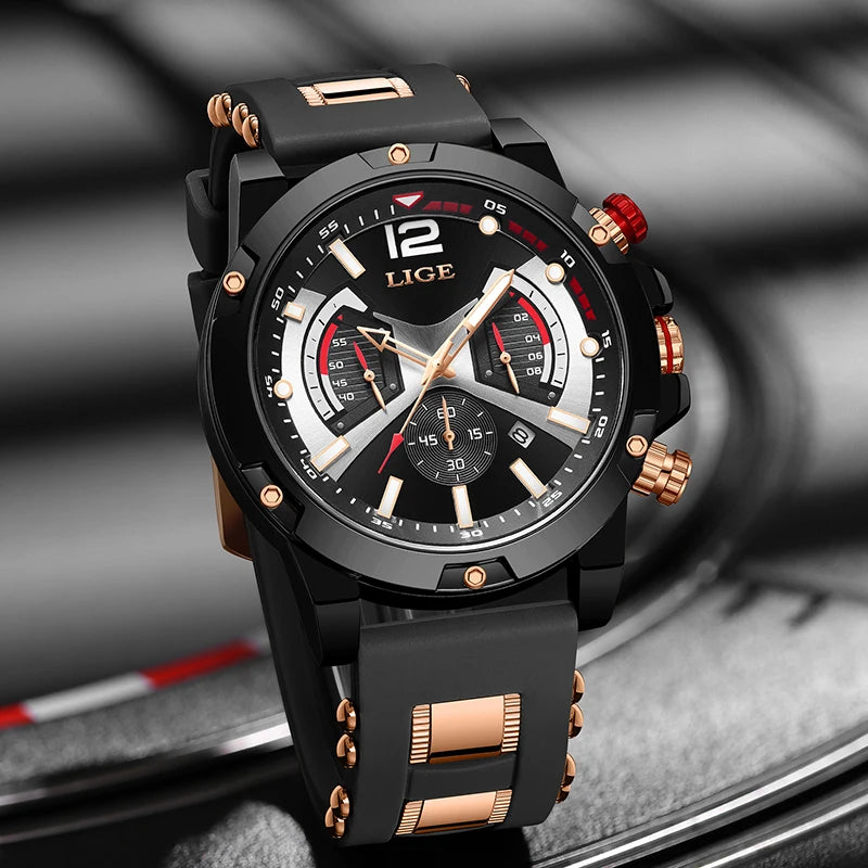 Fashion Men's Luxury Waterproof Chronograph Silicone Quartz Sports Watch