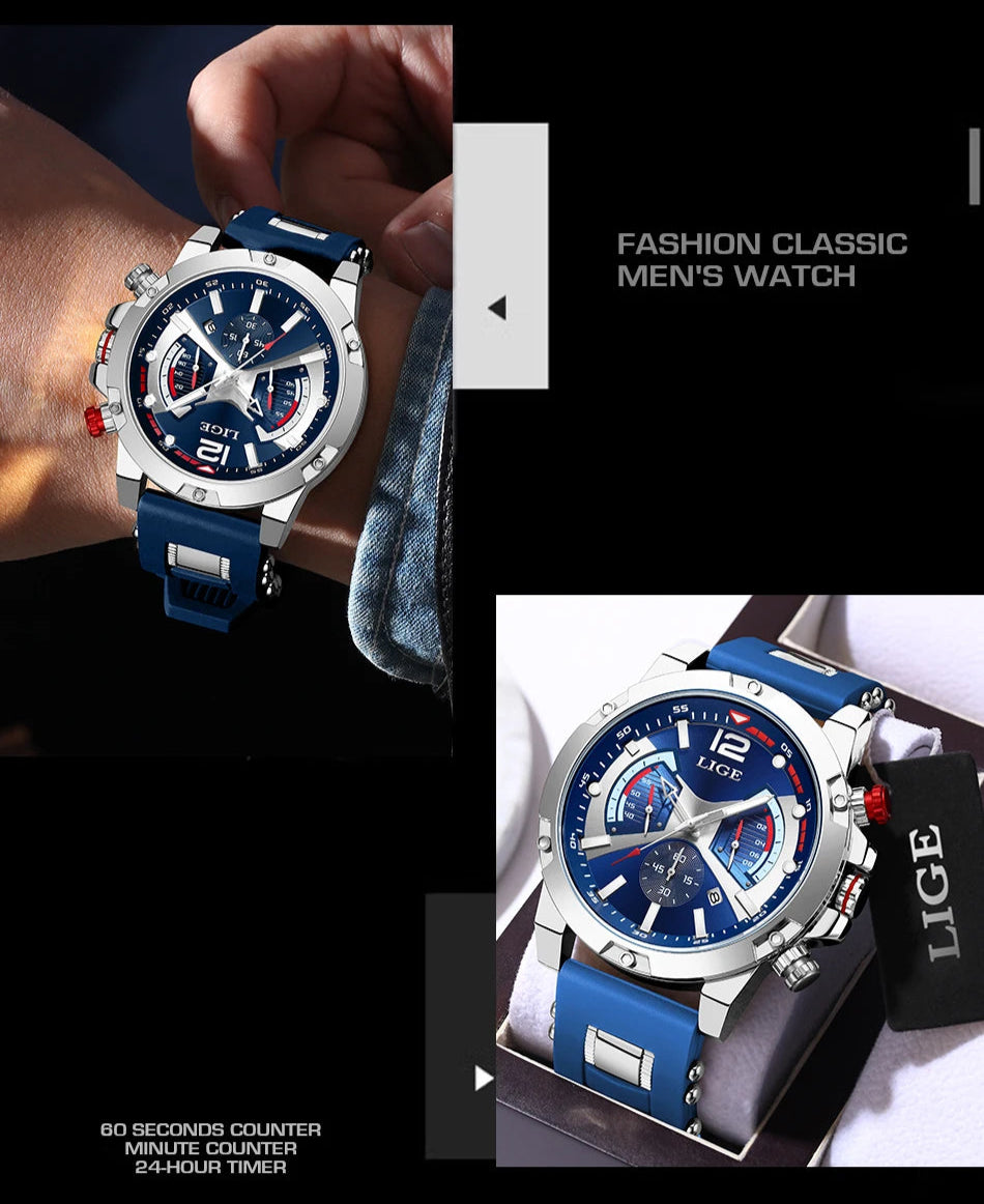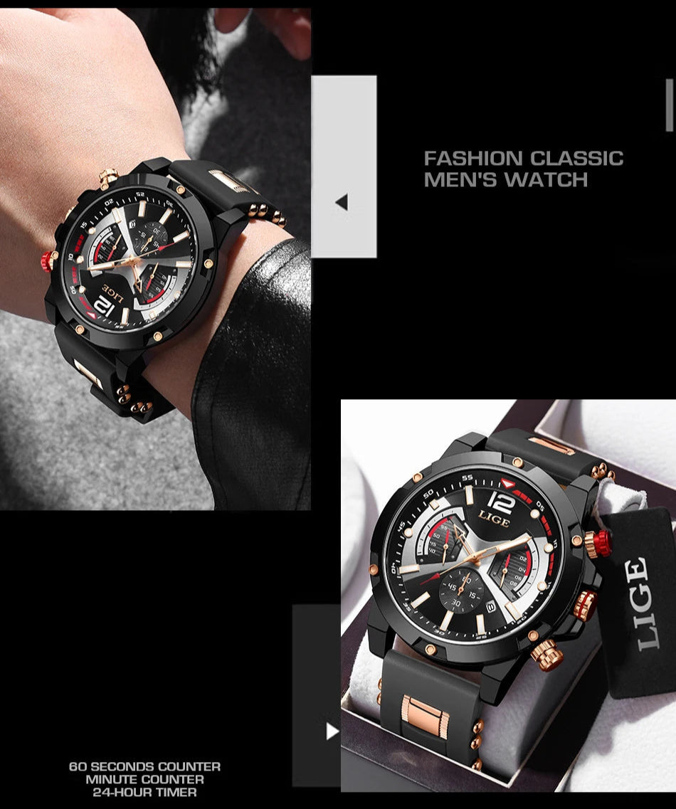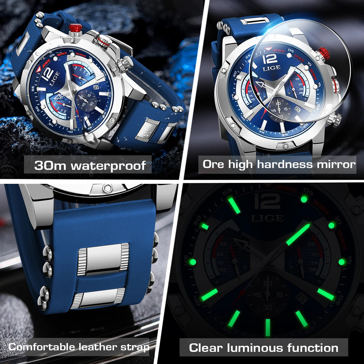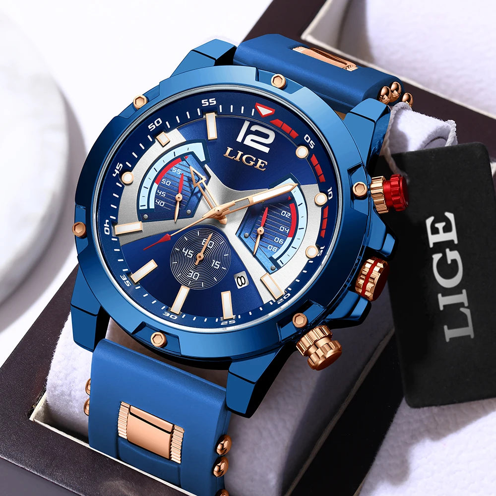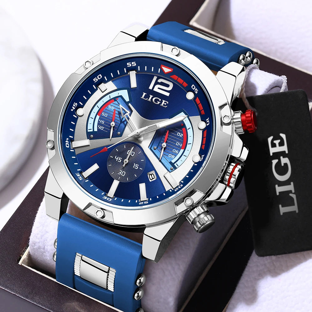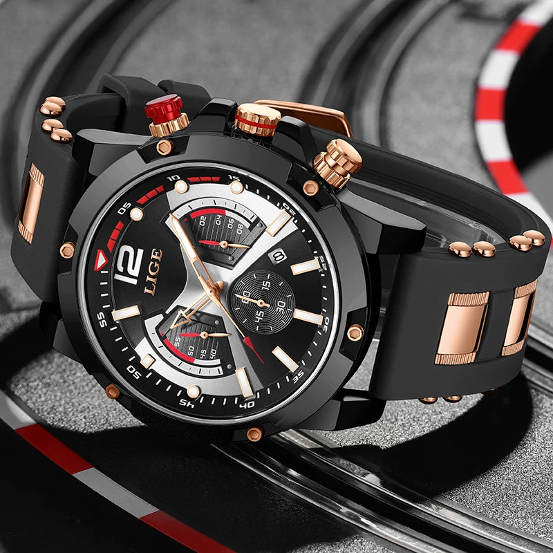 Fashion Men's Luxury Waterproof Chronograph Silicone Quartz Sports Watch