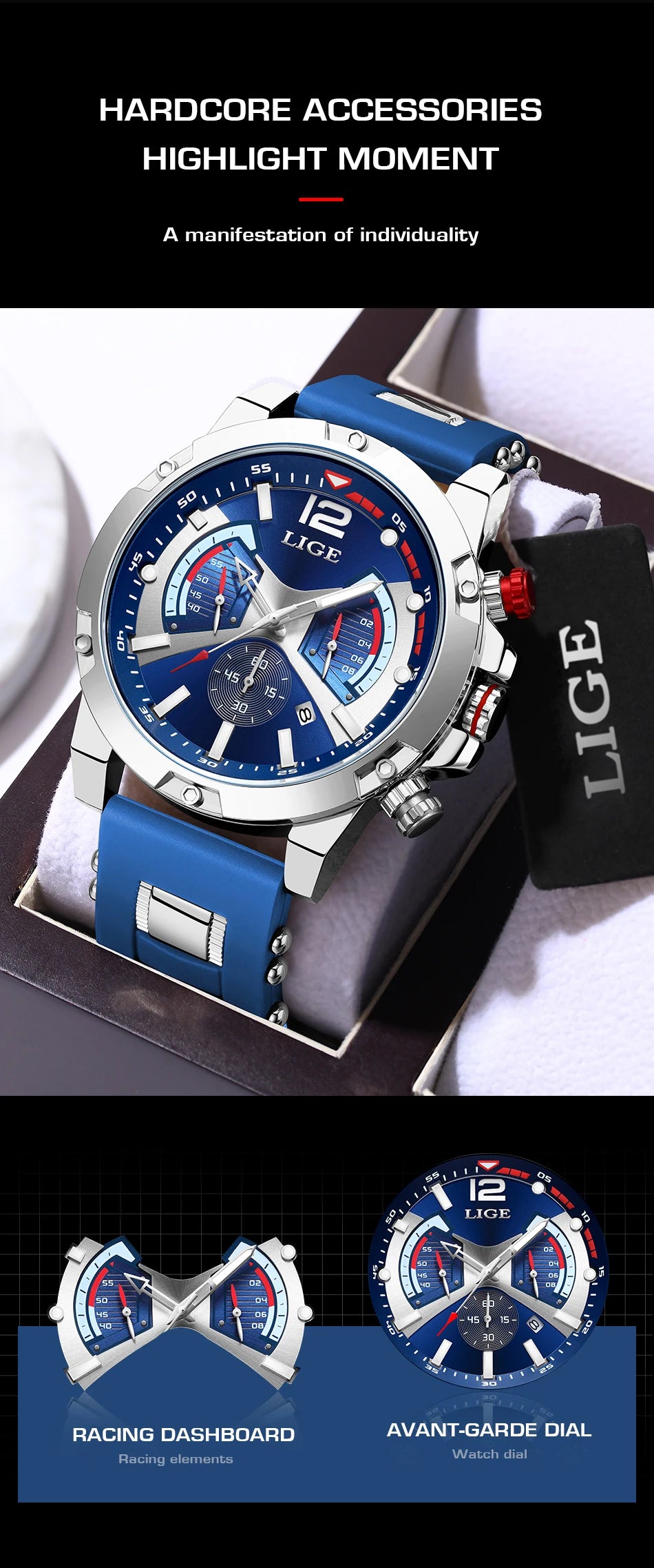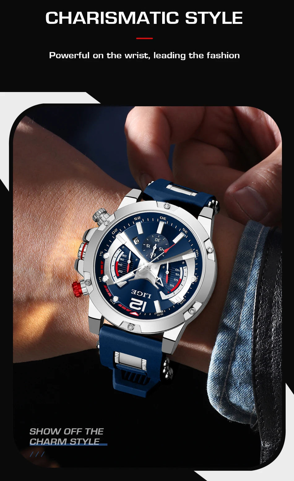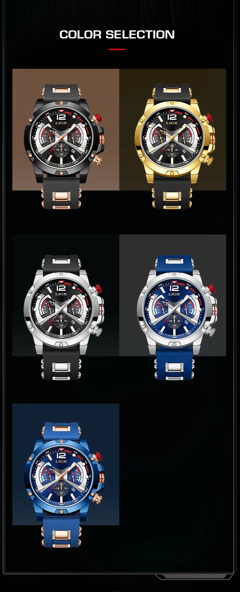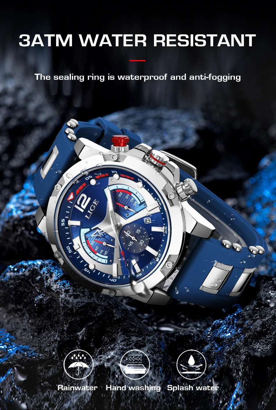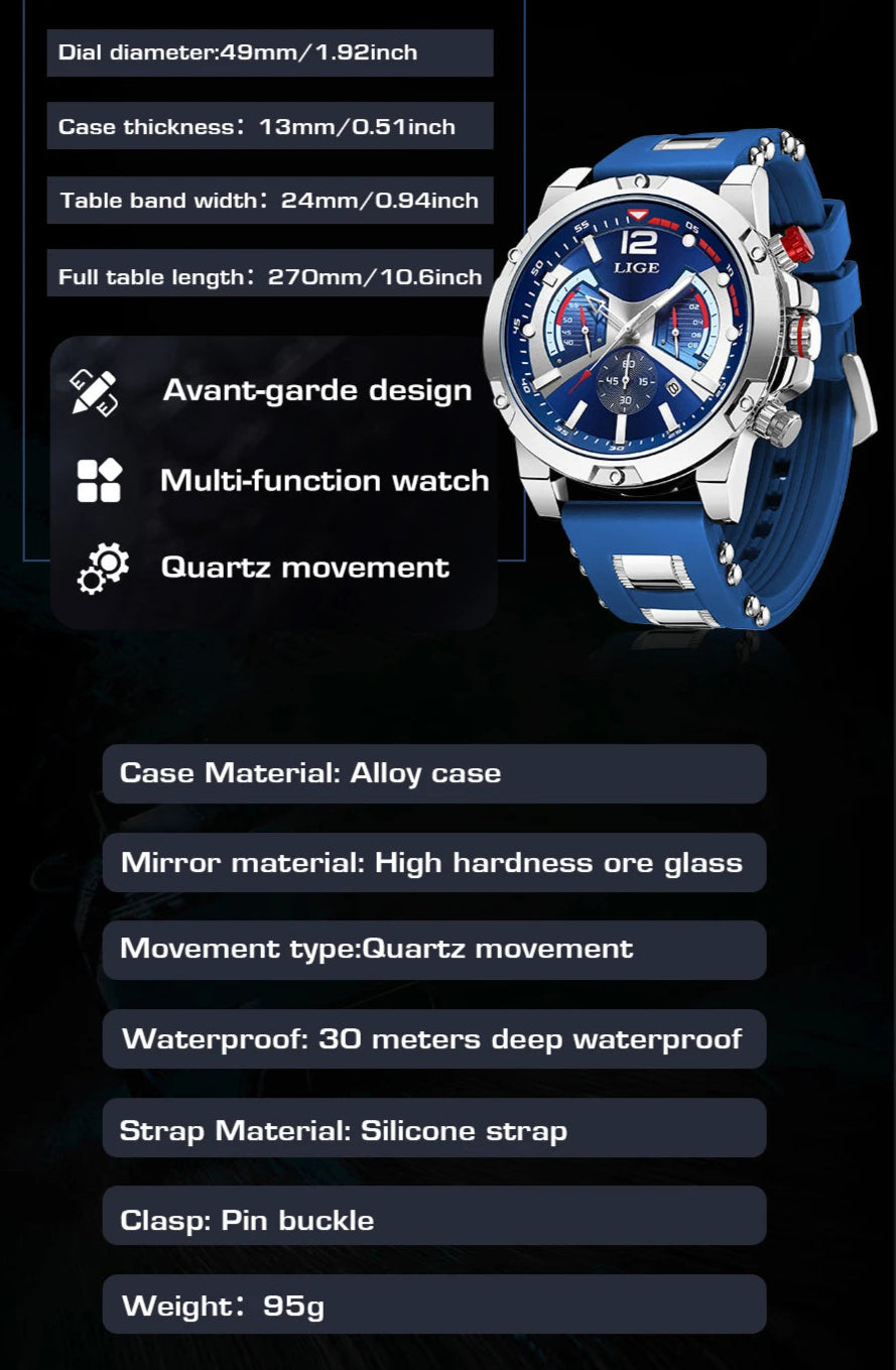Fashion Men's Luxury Waterproof Chronograph Silicone Quartz Sports Watch