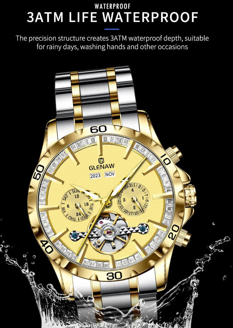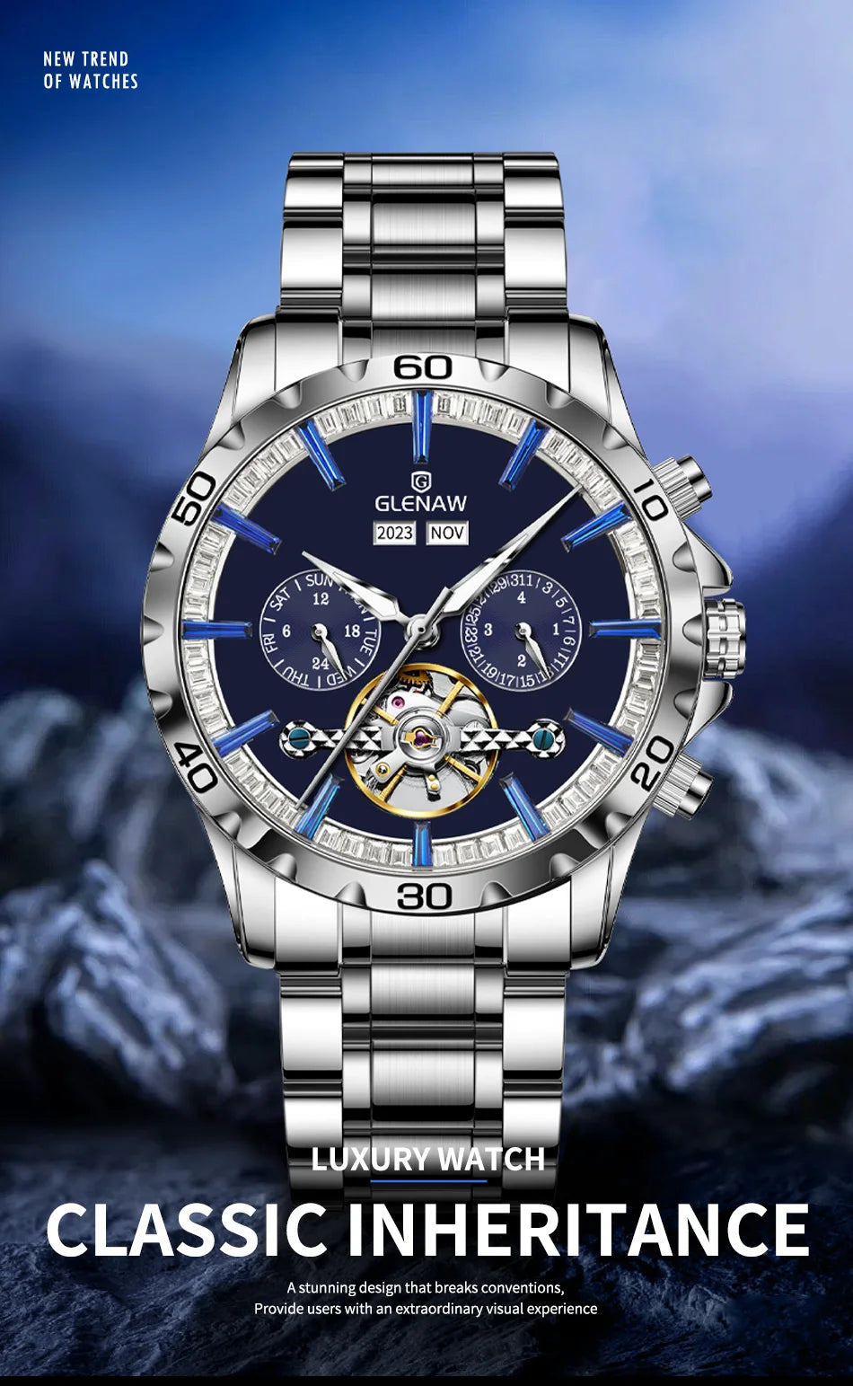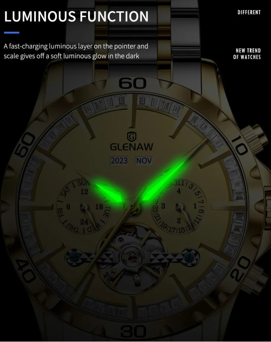 Fashion Men's Multifunctional Waterproof Moon Phase Automatic Mechanical Watch