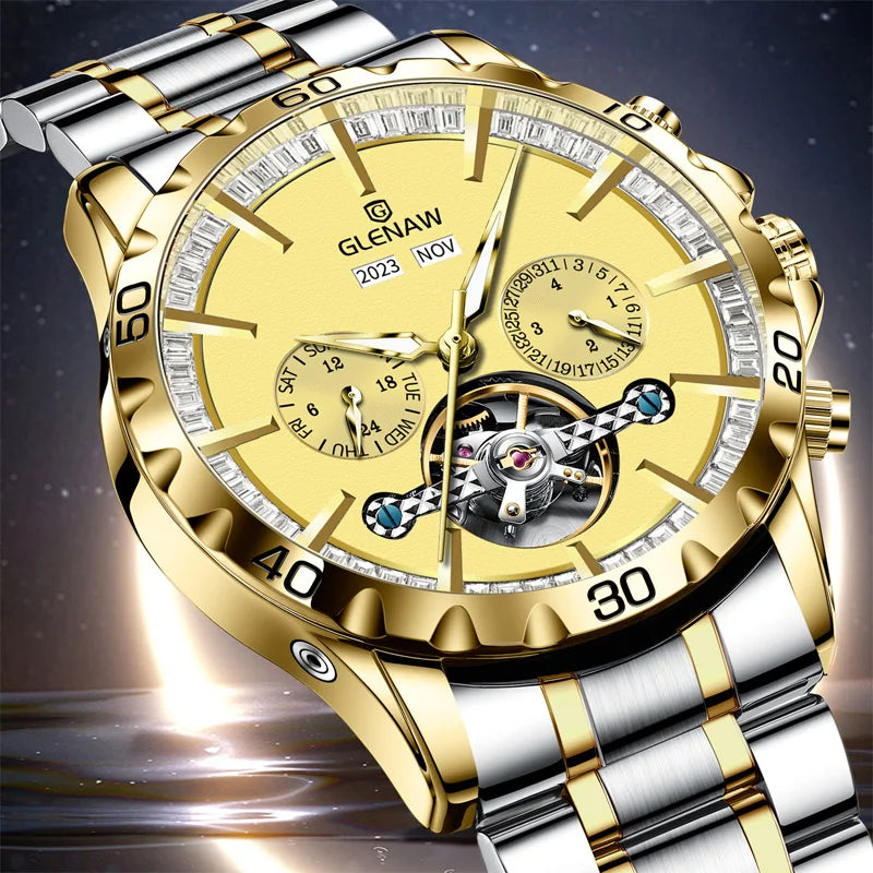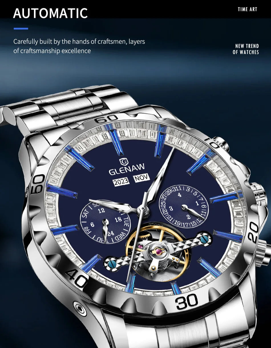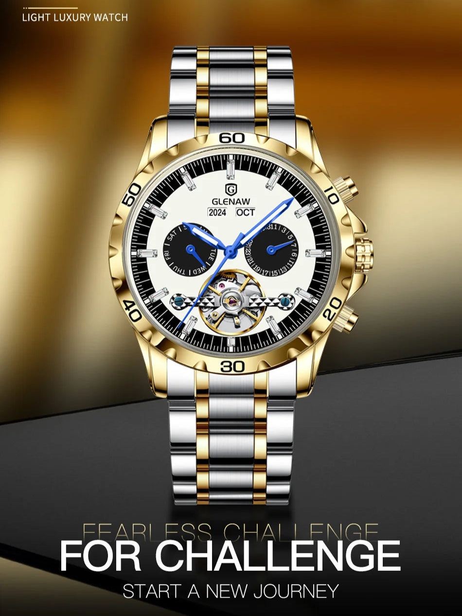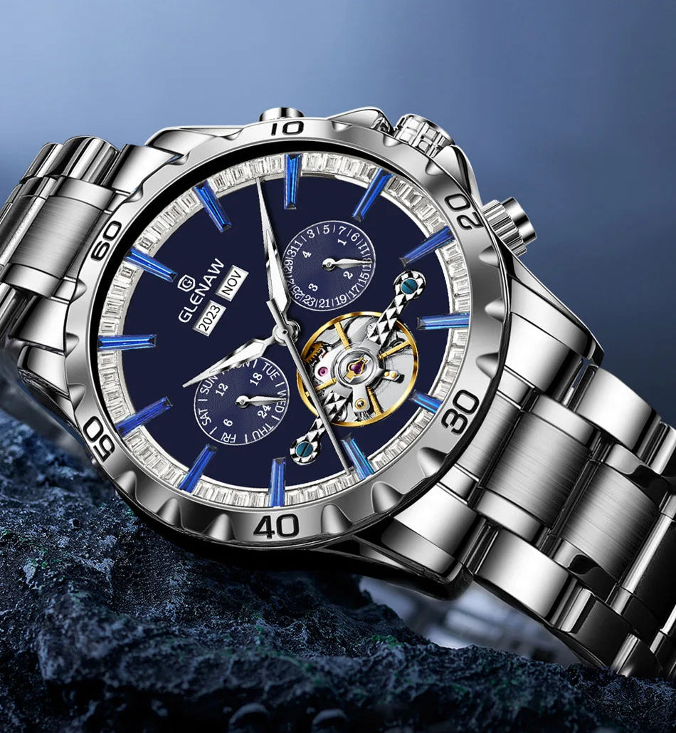 Fashion Men's Multifunctional Waterproof Moon Phase Automatic Mechanical Watch
