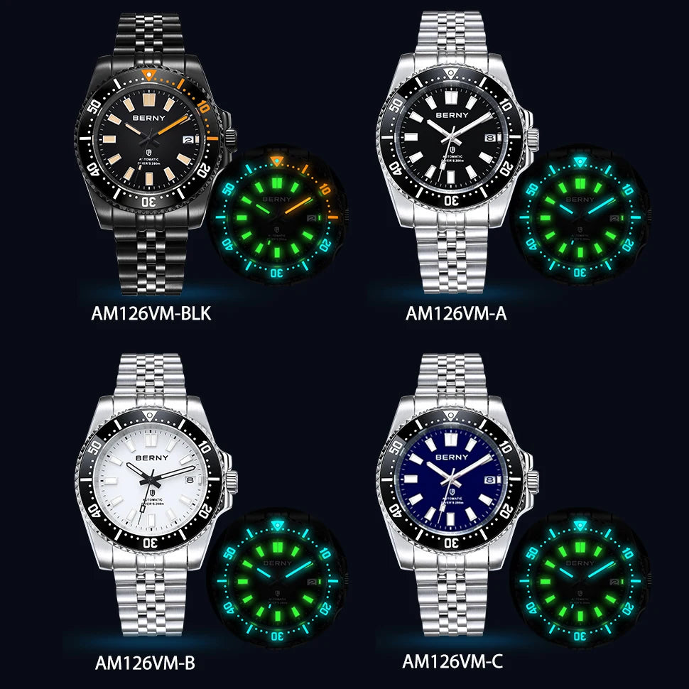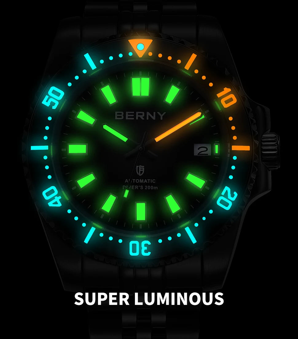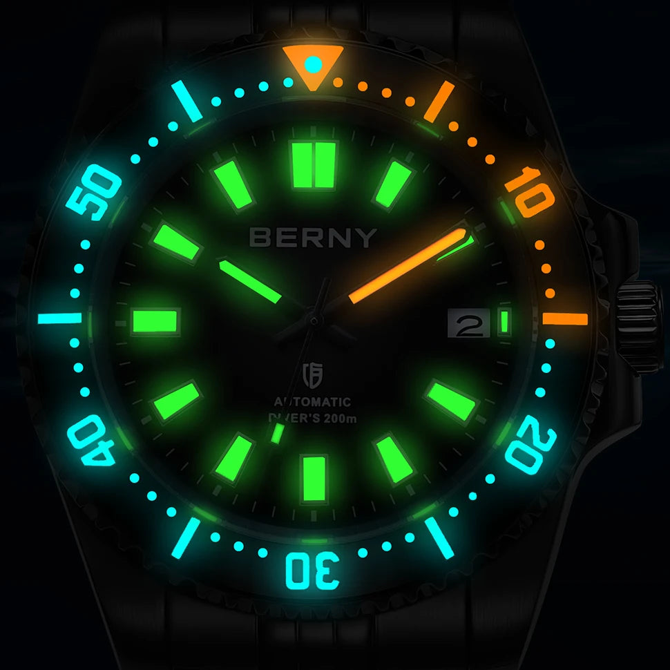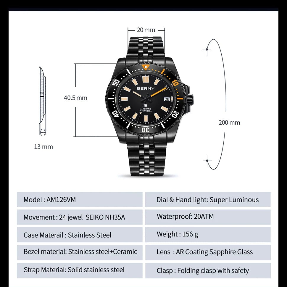 Men's 20ATM Waterproof Automatic NH35 Movement Super Luminous Sapphire Sports Wristwatch