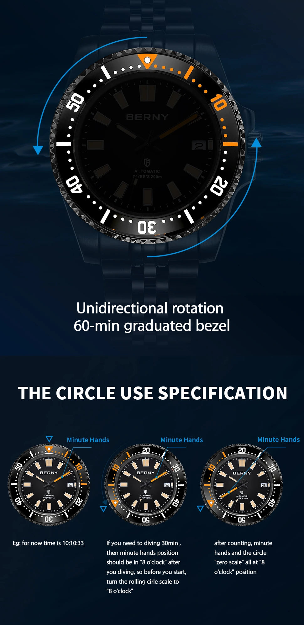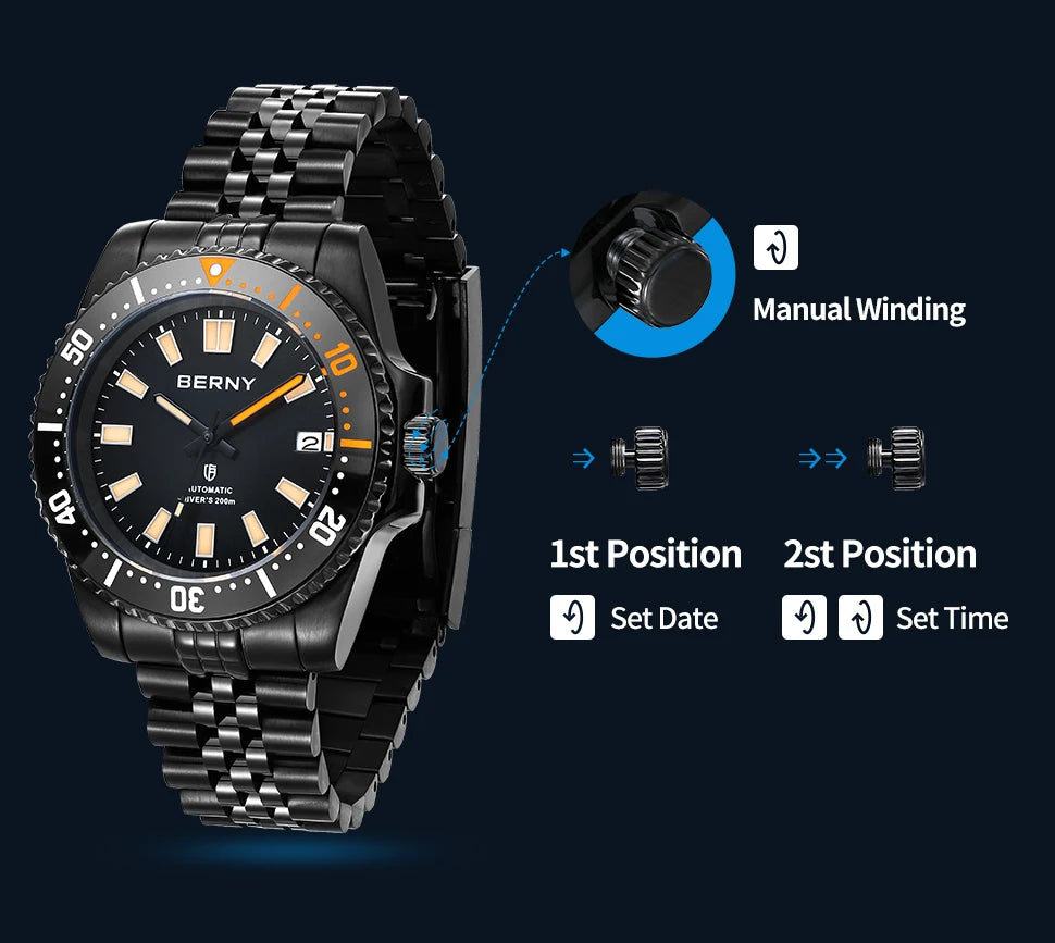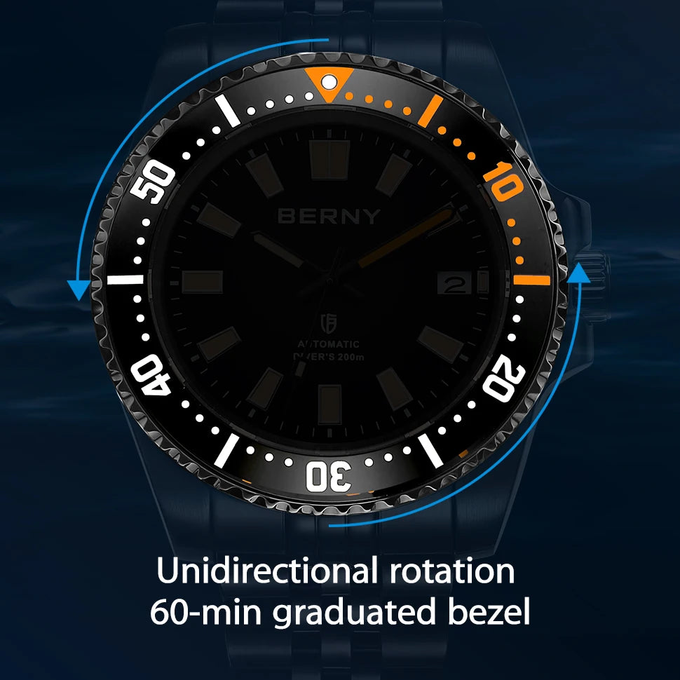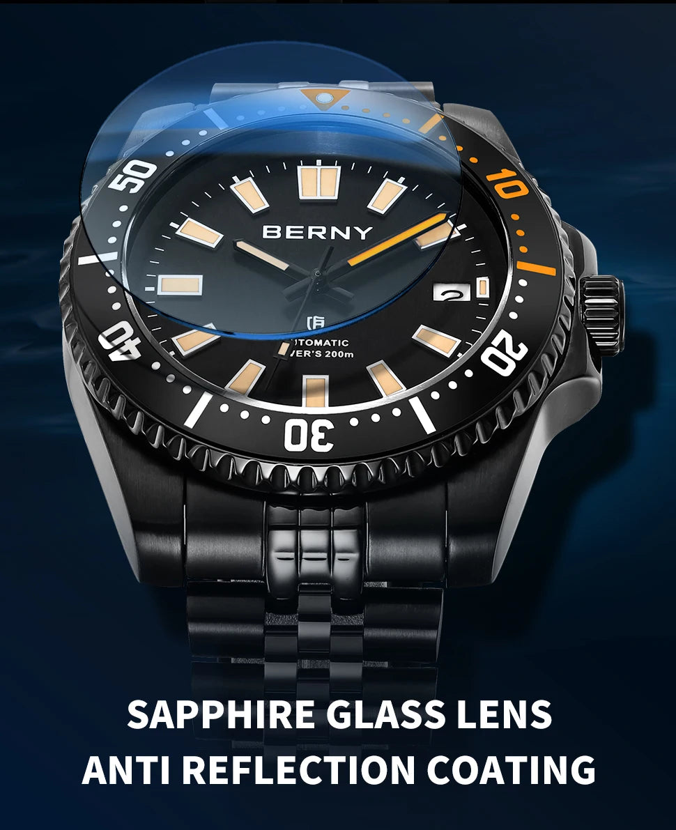 Men's 20ATM Waterproof Automatic NH35 Movement Super Luminous Sapphire Sports Wristwatch
