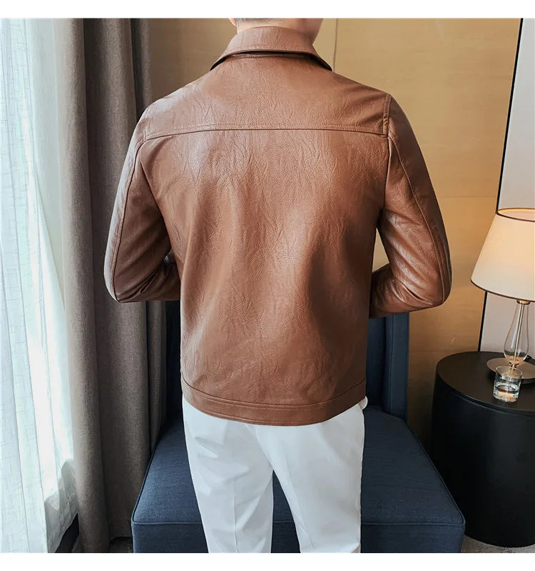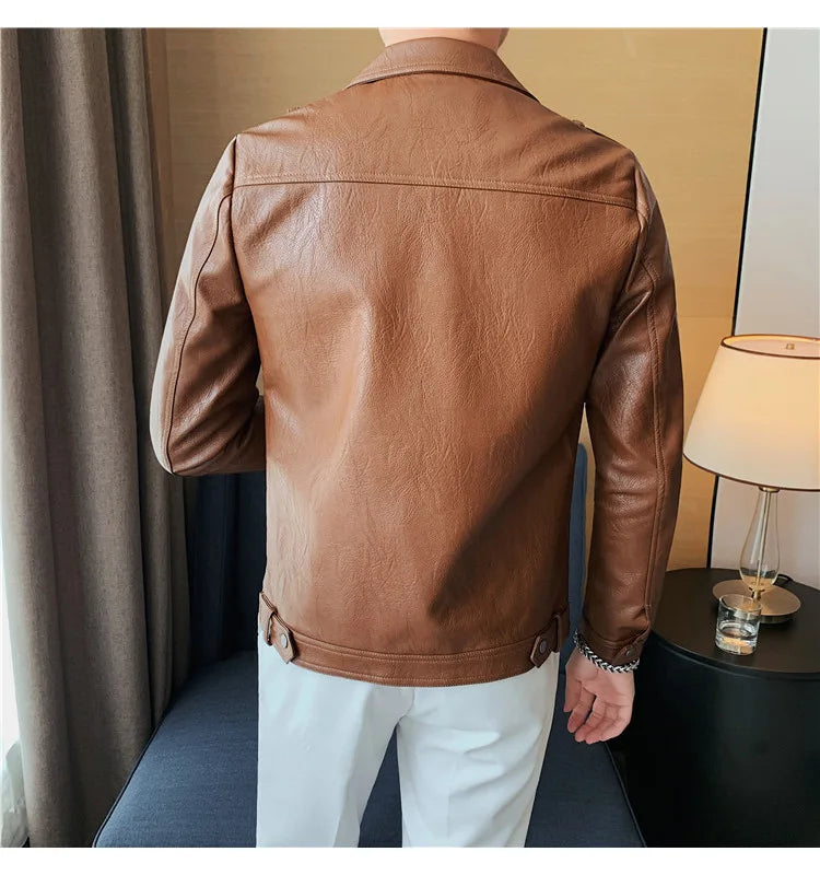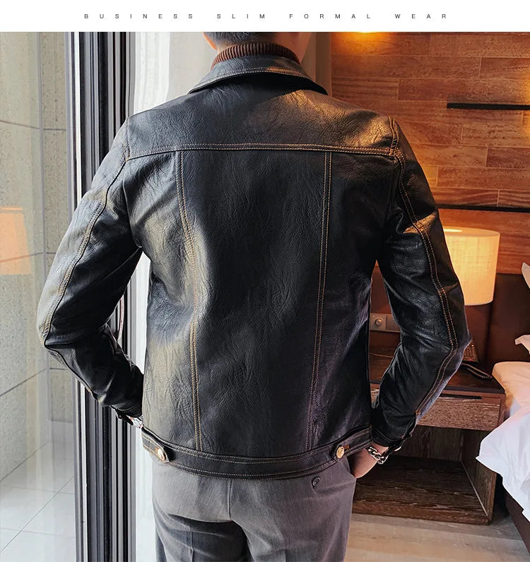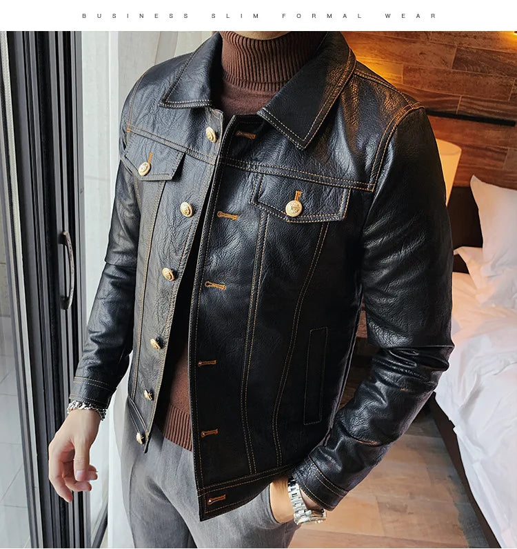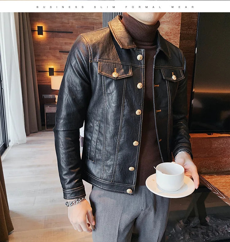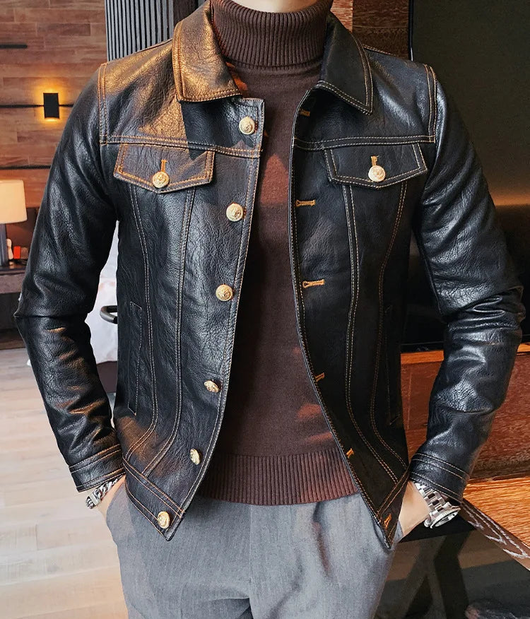 Perfect for the modern man who loves a simple and smart look, this lovely jacket exudes timeless appeal. Made of synthetic leather in solid color finishes, it offers both durability and style. Available in various styles, single-breasted and double-breasted and with various collar styles, these jackets are a practical accessory to stay warm and look stylish. Offers practicality, comfort and a smart look!