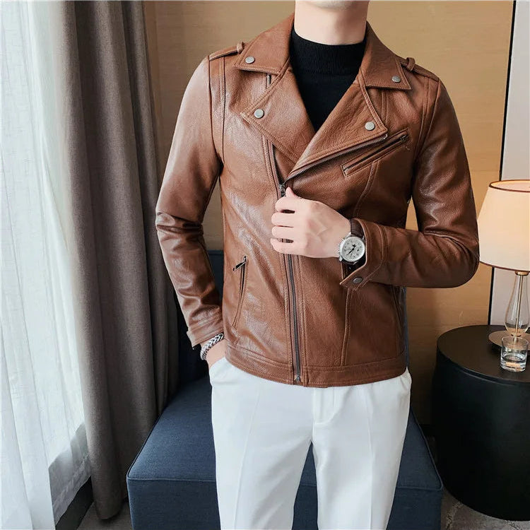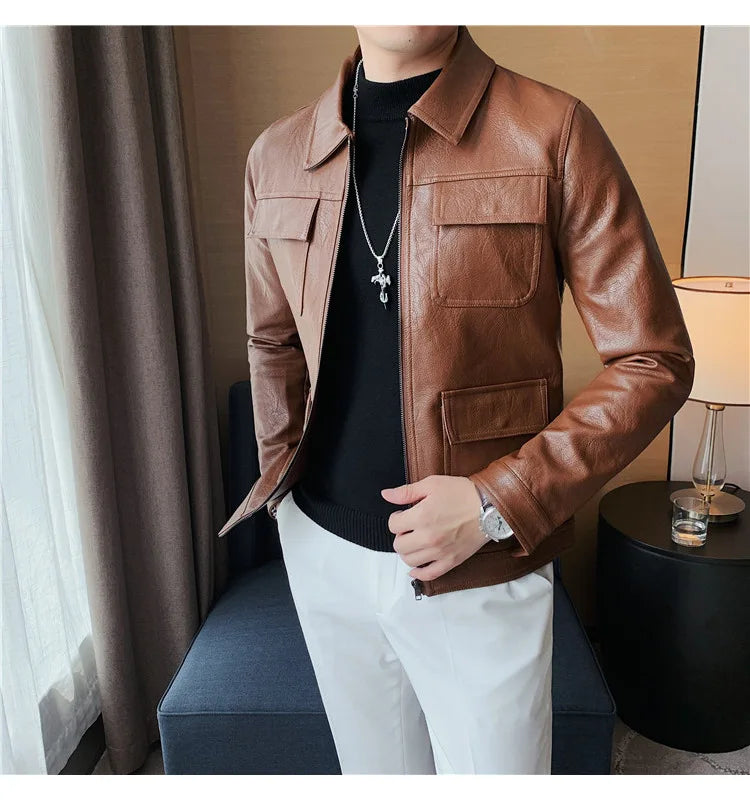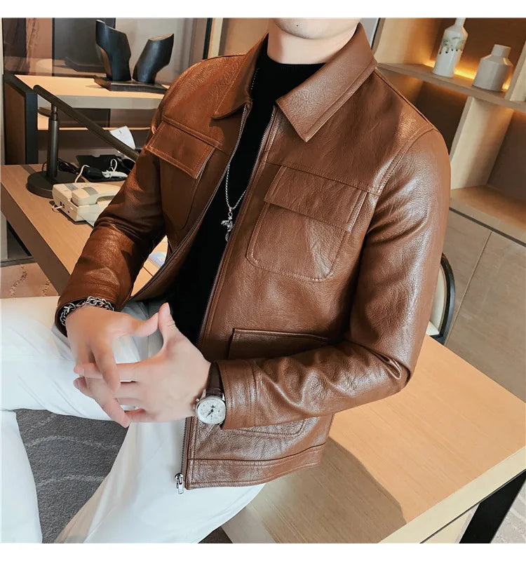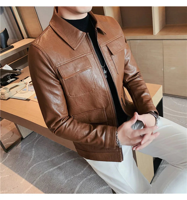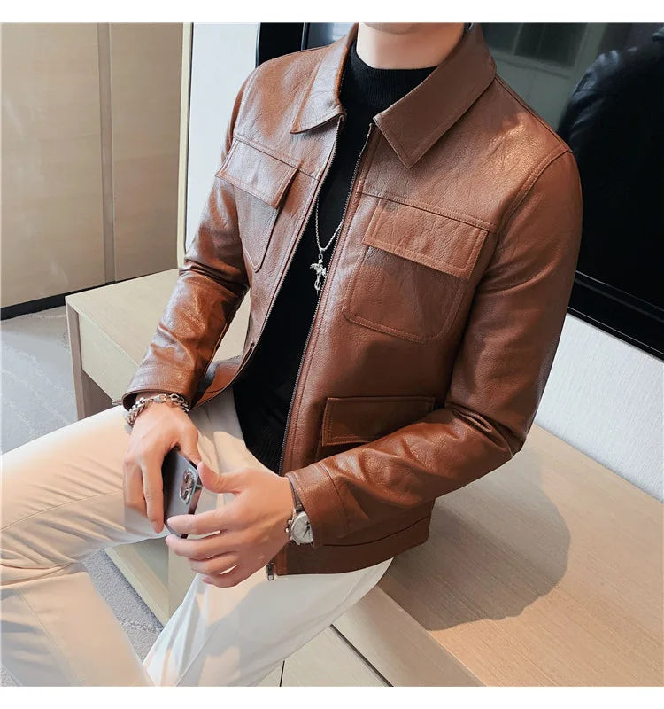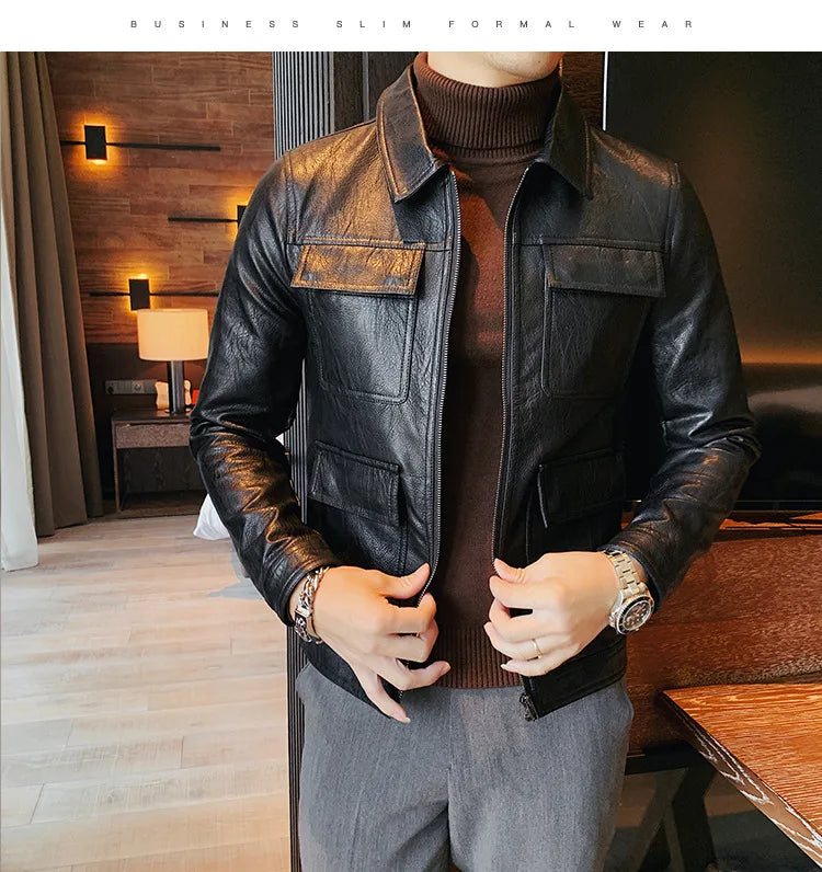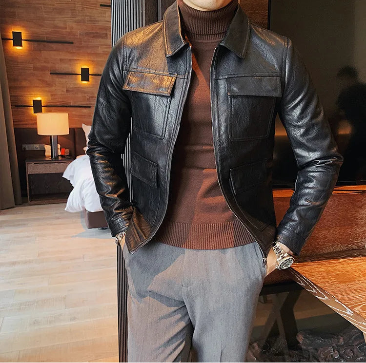 men fashion leather jacket: leather men coat