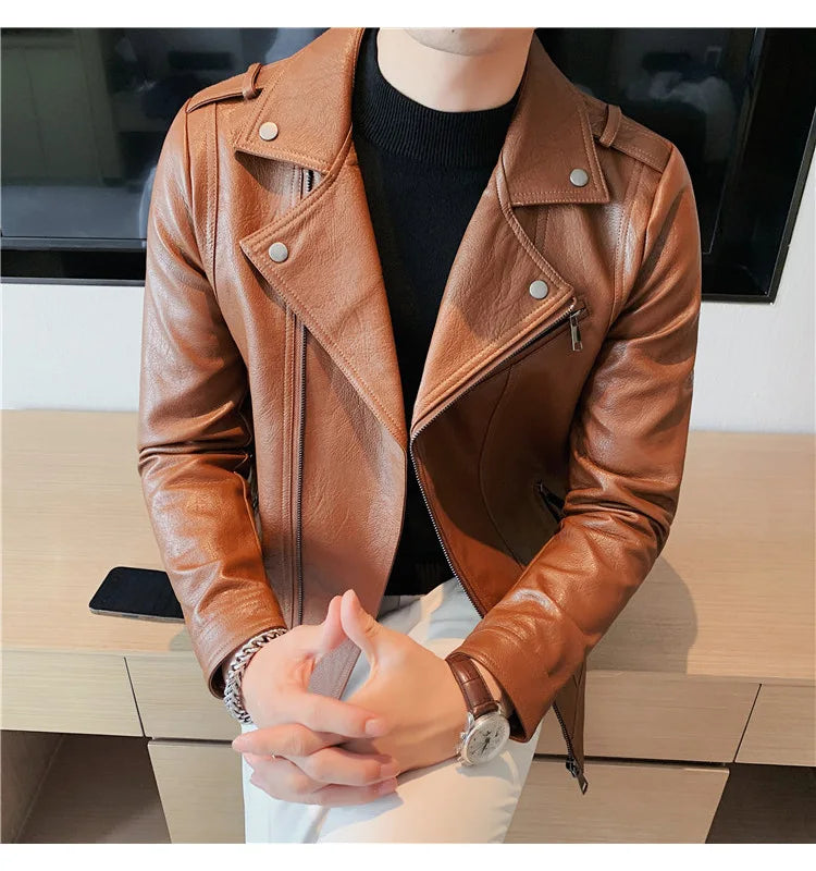 Men's Designer Punk Single-breasted Motorcycle Pilot Soft Leather Jacket