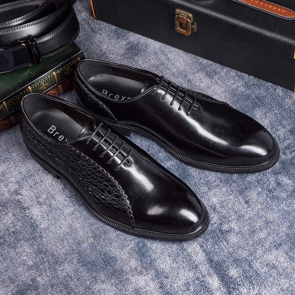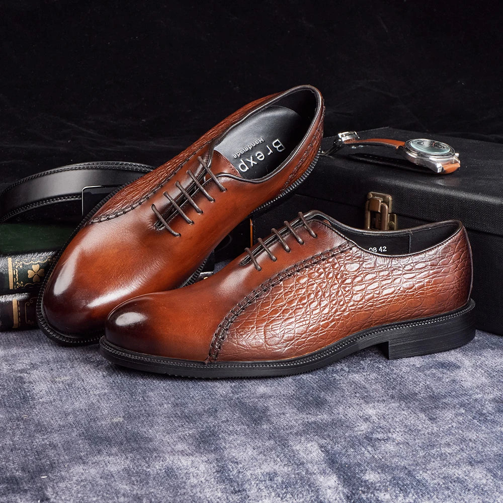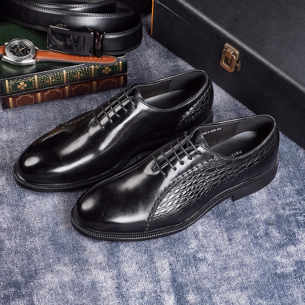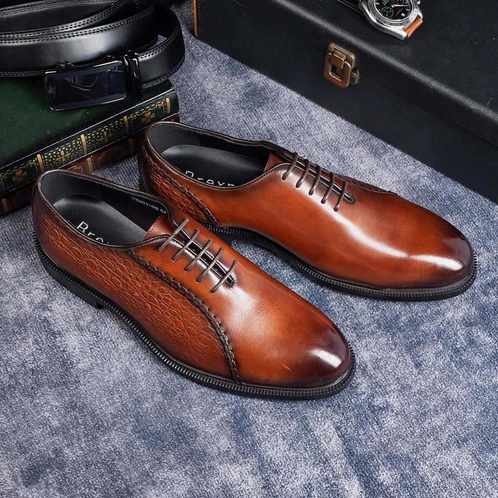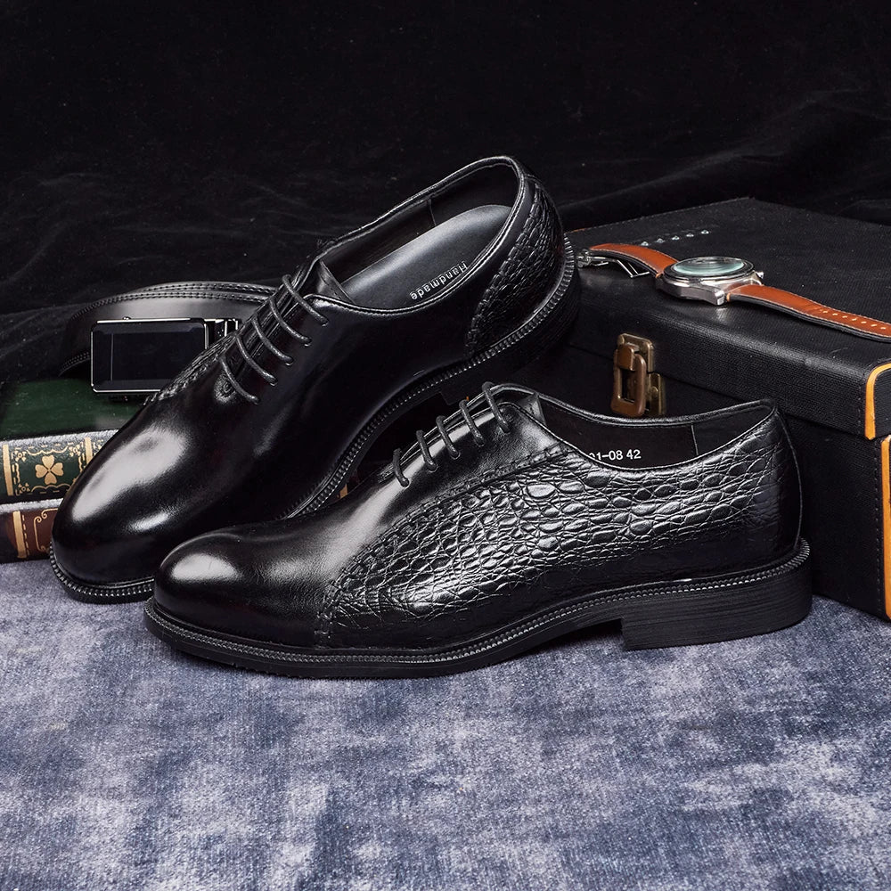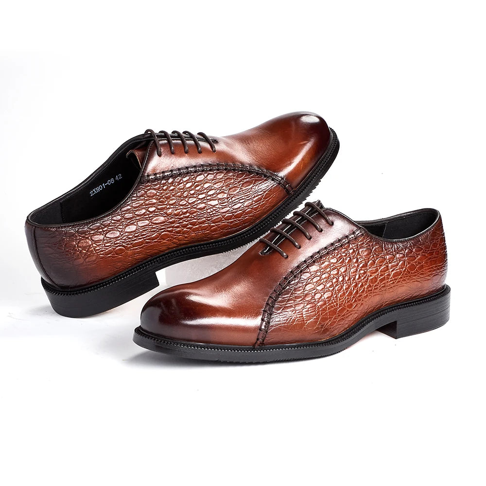 Men's Genuine Leather Crocodile Embossed Textured Formal Derby Shoes