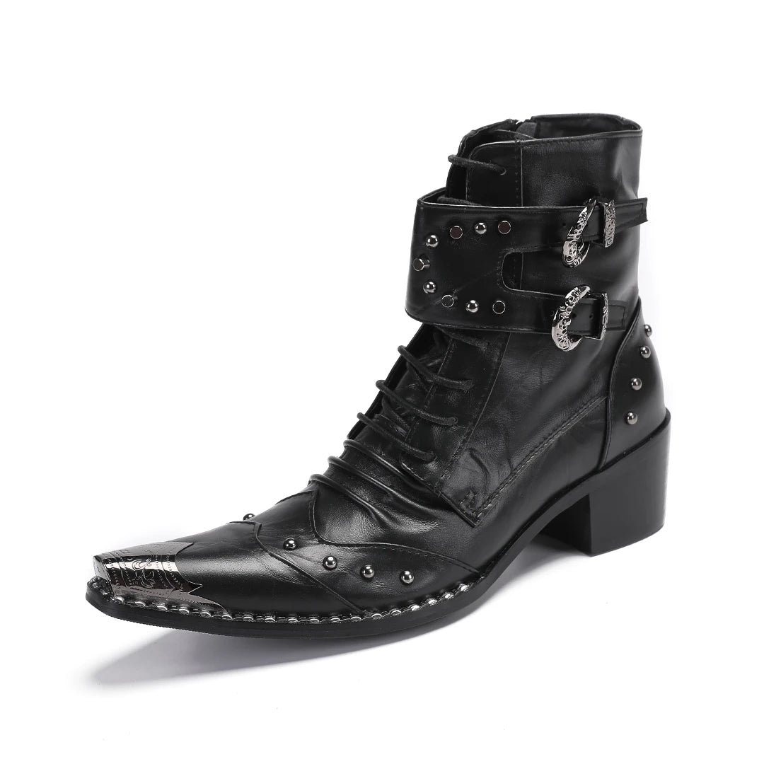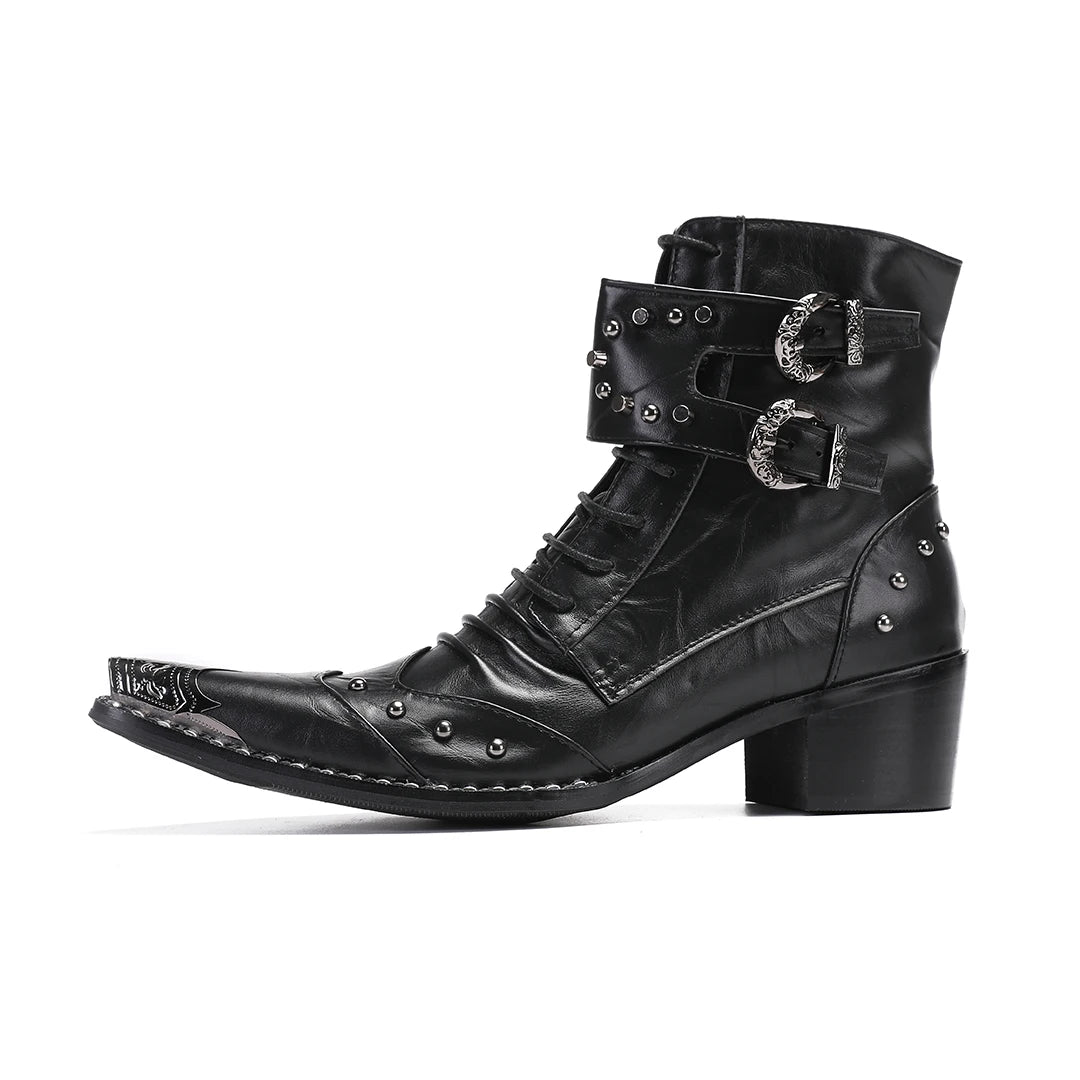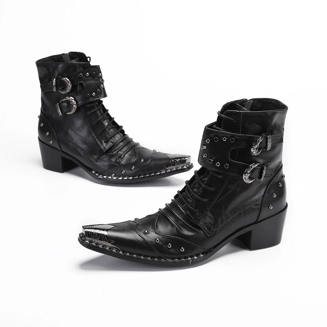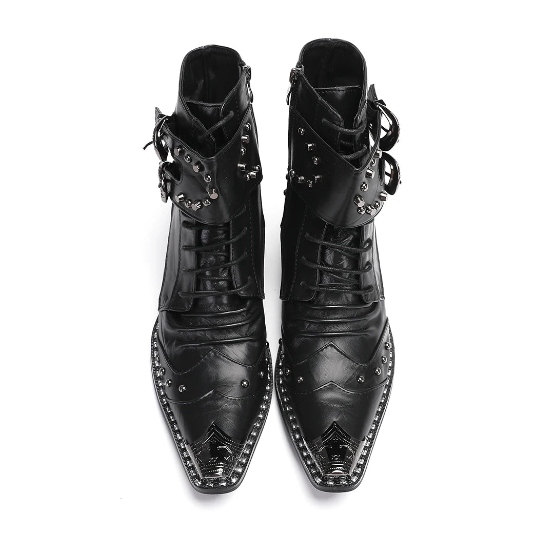 Men's Luxurious Cowhide Rivet Buckle Formal Party Dress Boots