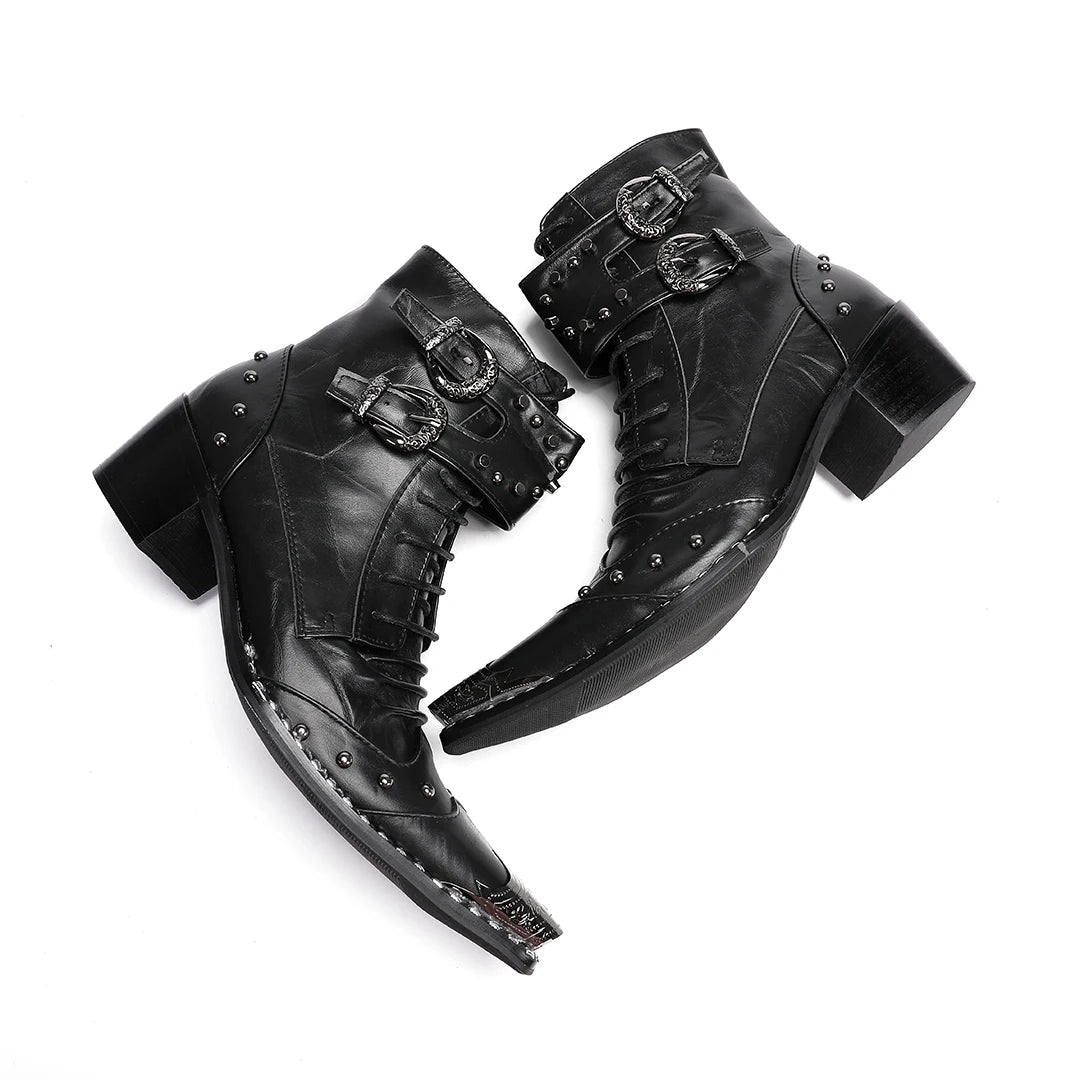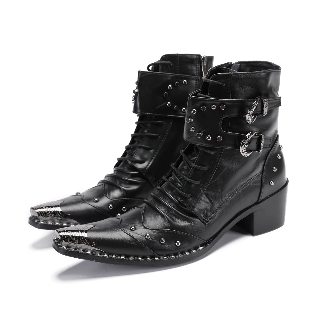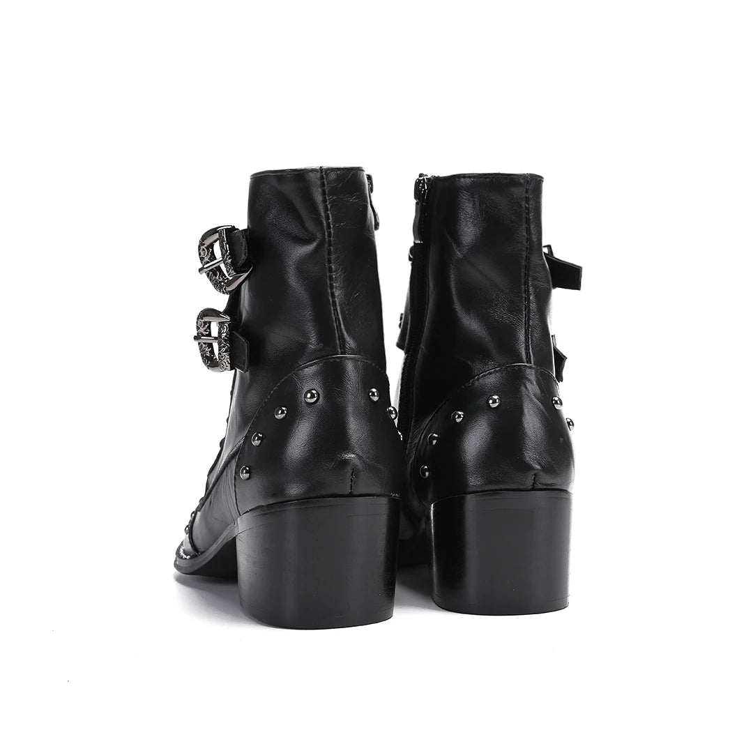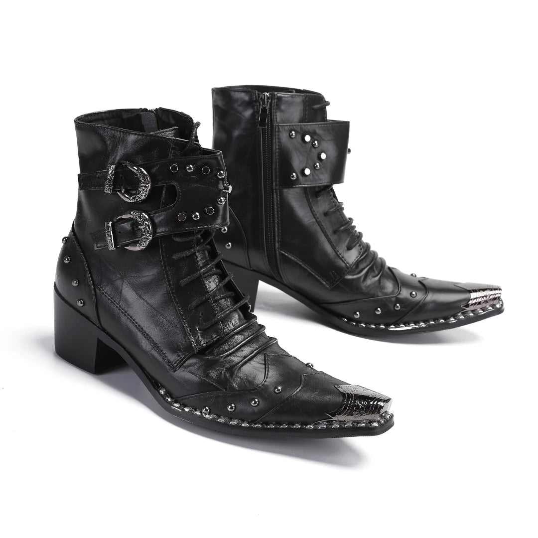 Men's Luxurious Cowhide Rivet Buckle Formal Party Dress Boots