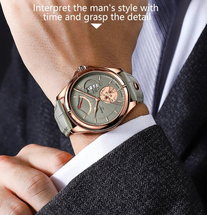 Luxury Big Dial Leather Waterproof Calendar Quartz Sports Watch for Men