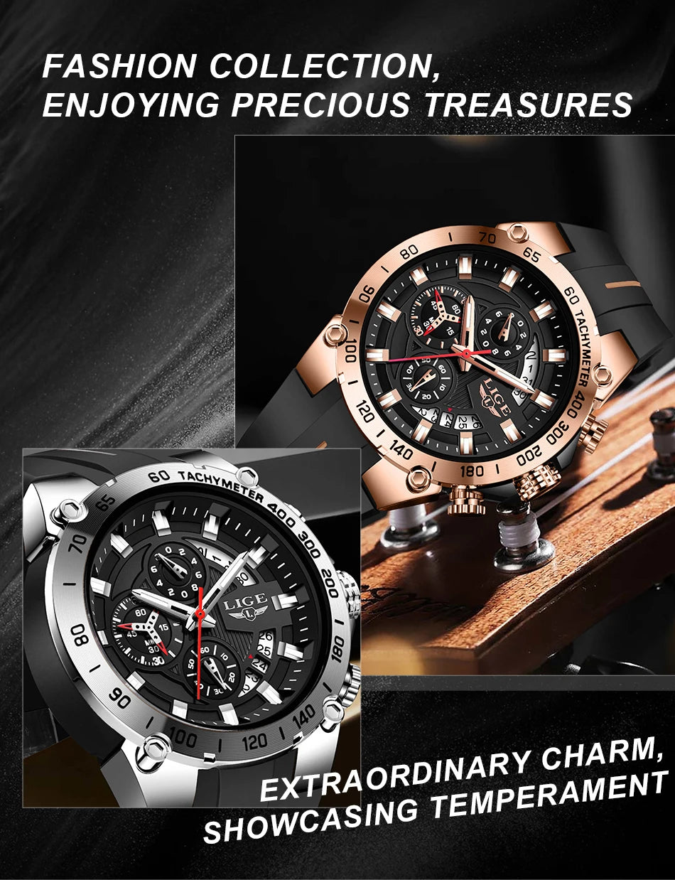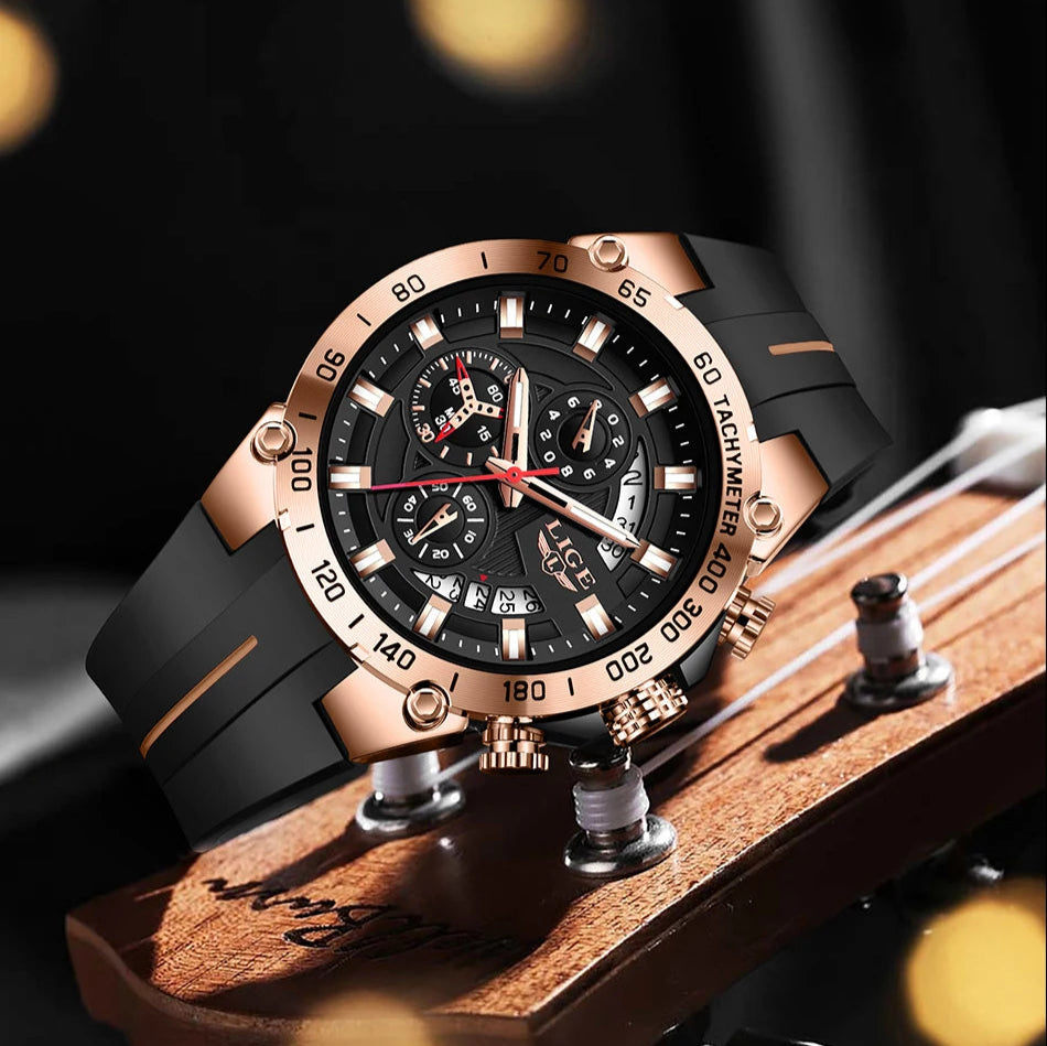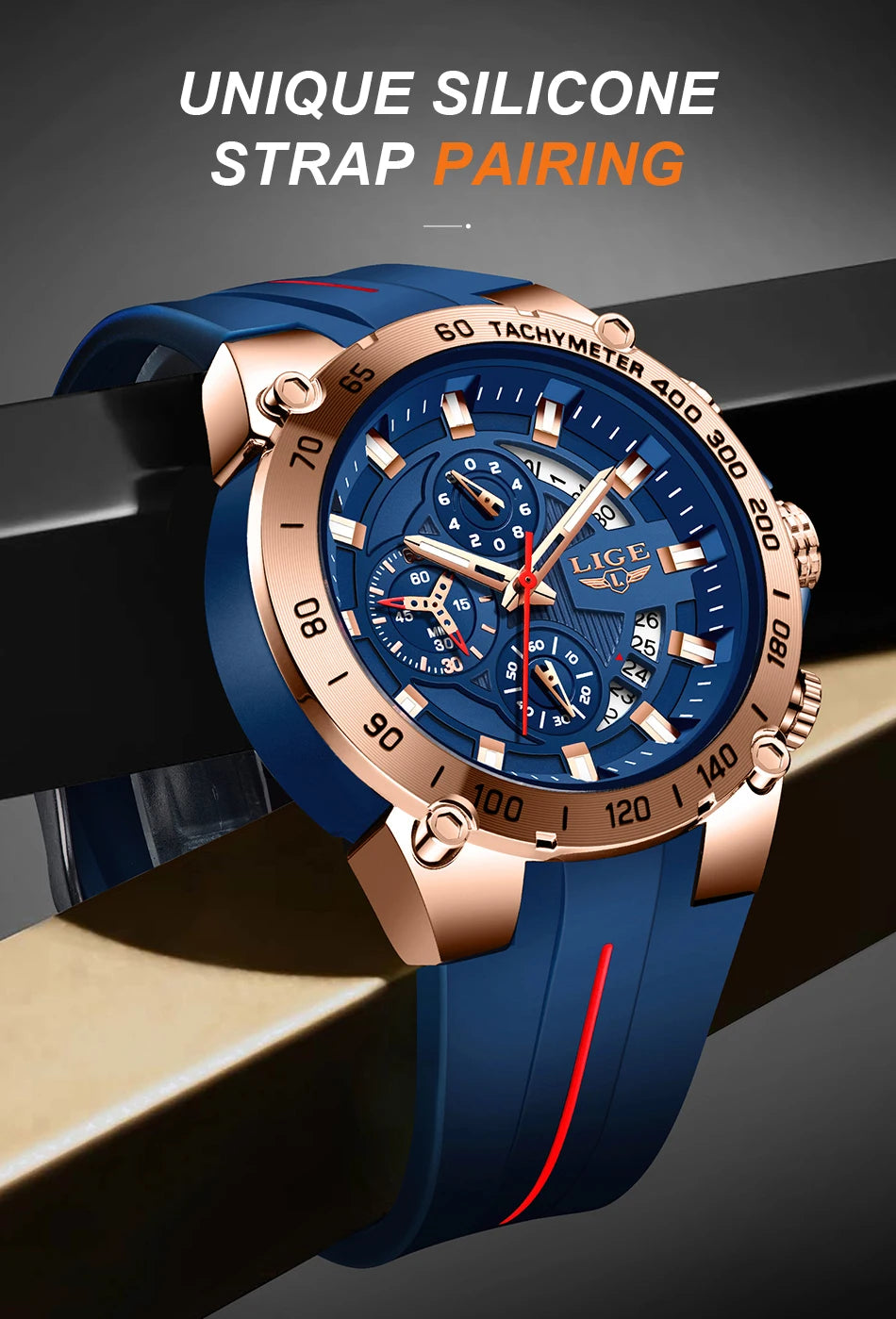 Men's Silicone Waterproof Luminous Round Dial Quartz Wristwatch