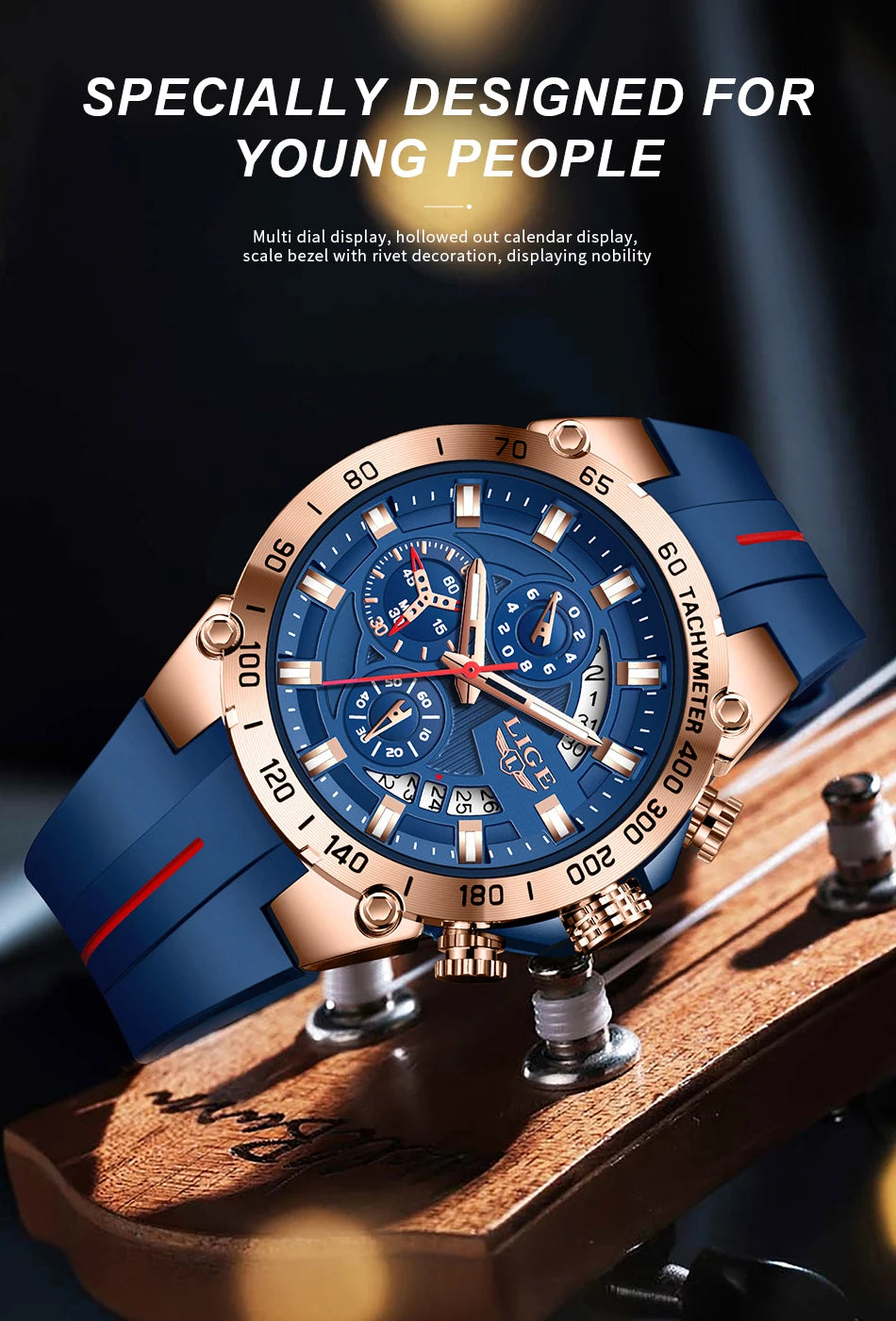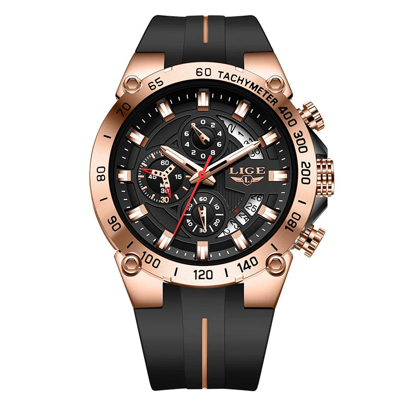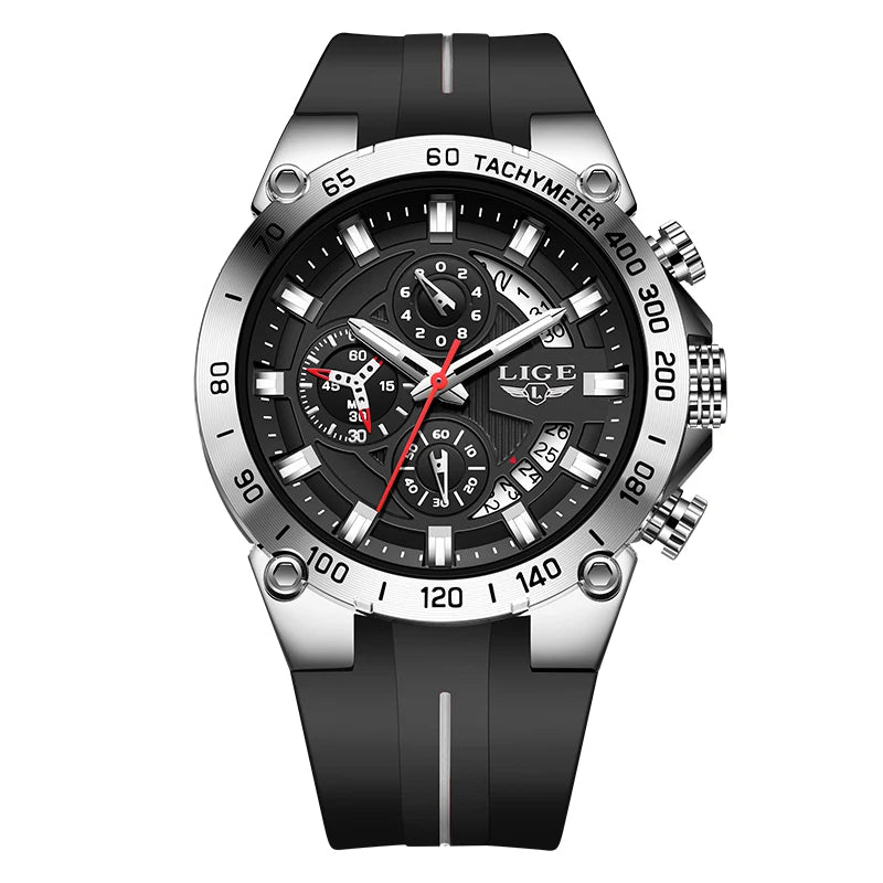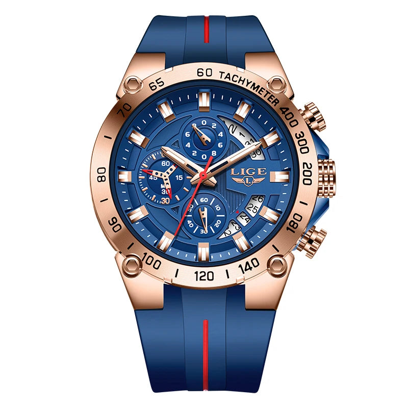 Amp up your style with this fashionable men's watch. Made of a silicone strap and round alloy casing that ensures durability and a stylish look, this watch has a big round, numberless dial with multiple displays. The waterproof and luminous features make it a practical accessory. Buy now!