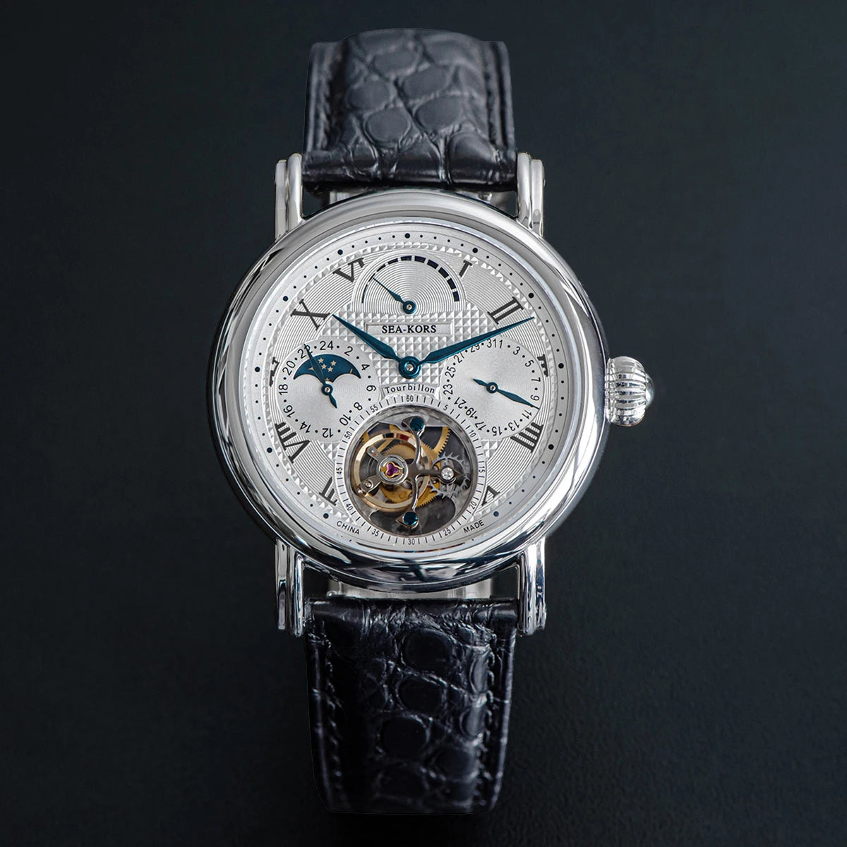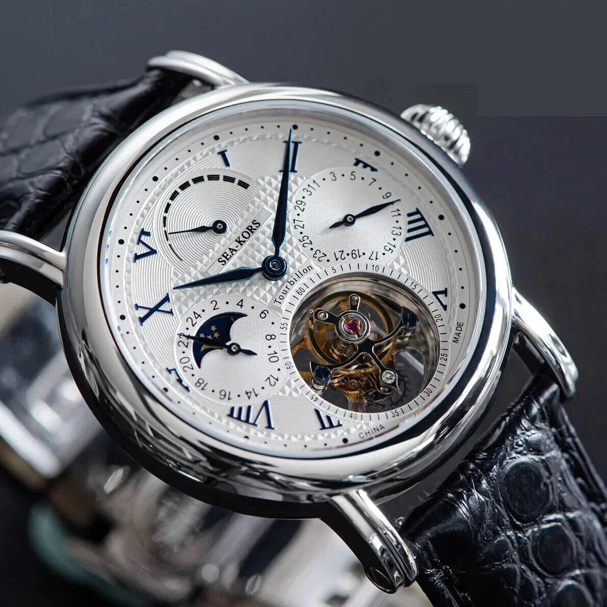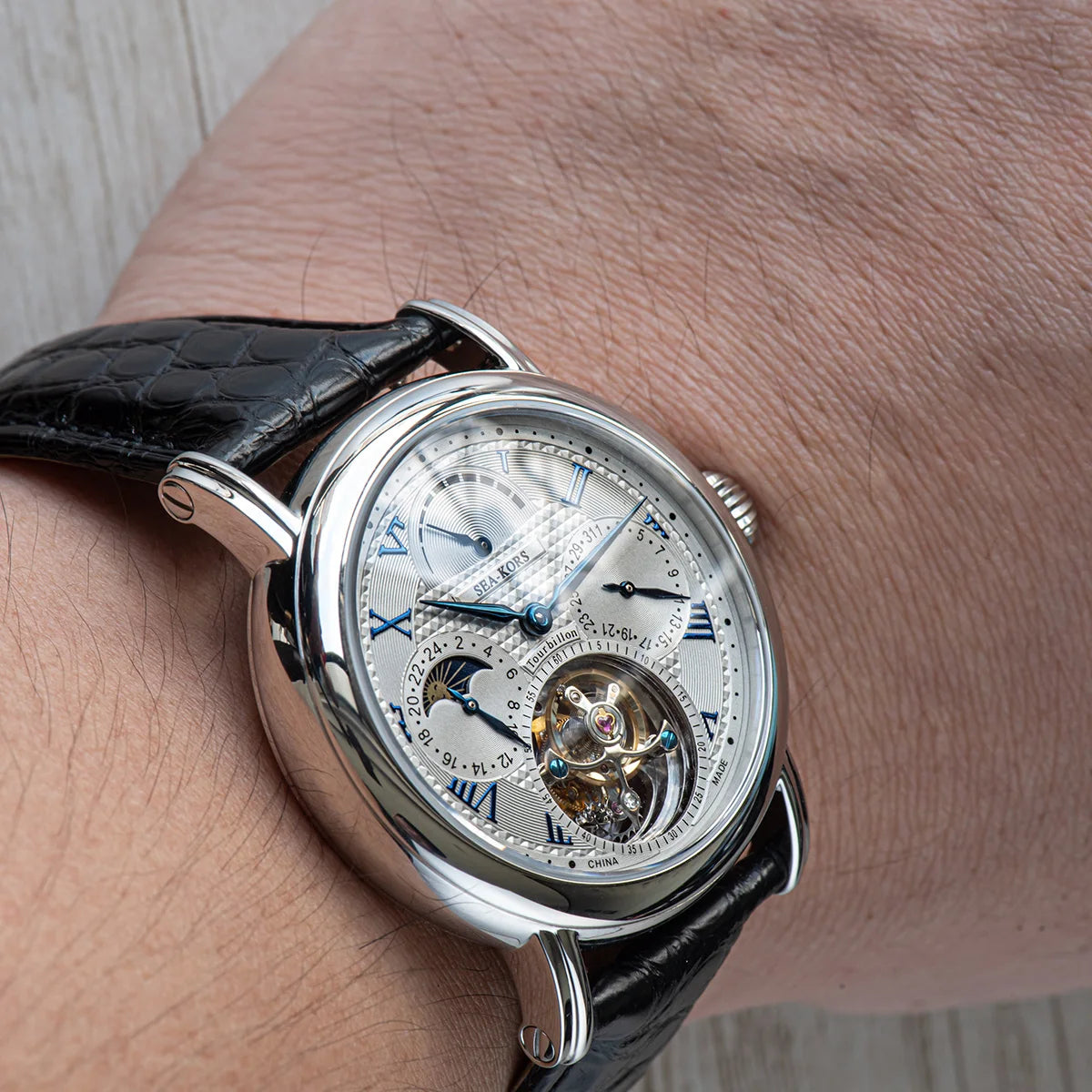 Men's Tourbillon Skeleton Dial Moonphase 316L Case Sapphire Roman Luxury Watch