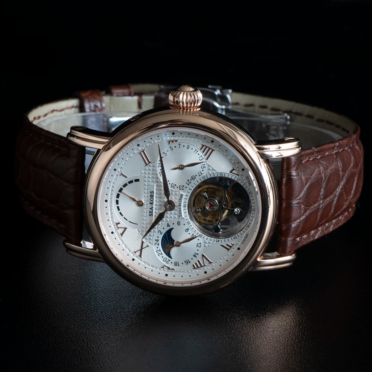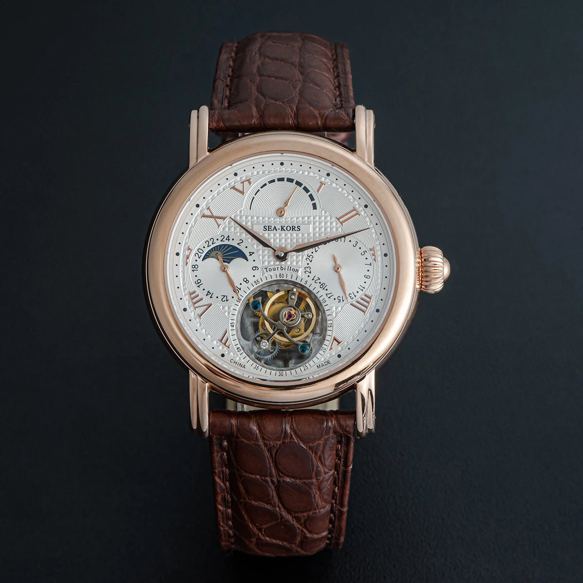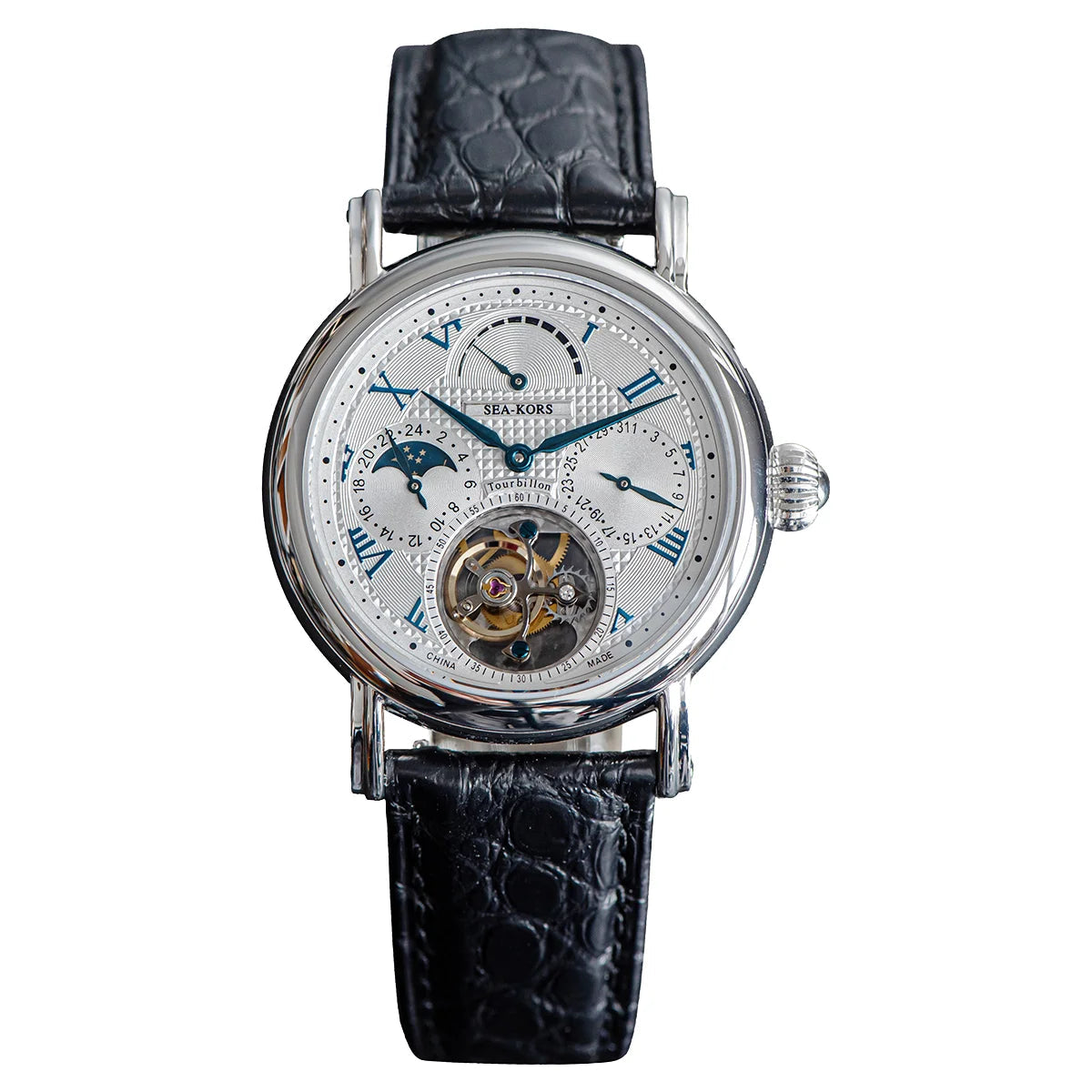 Men's Tourbillon Skeleton Dial Moonphase 316L Case Sapphire Roman Luxury Watch
