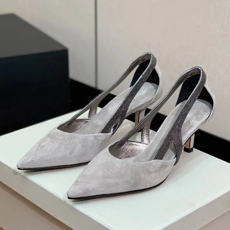 Women's 5cm High Heels Pointed Toe Suede Leather Gray Shoes