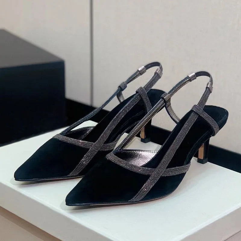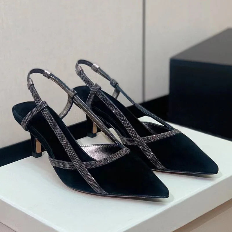 Women's Black Pointed Toe Slingbacks Suede Leather 5cm High Heels