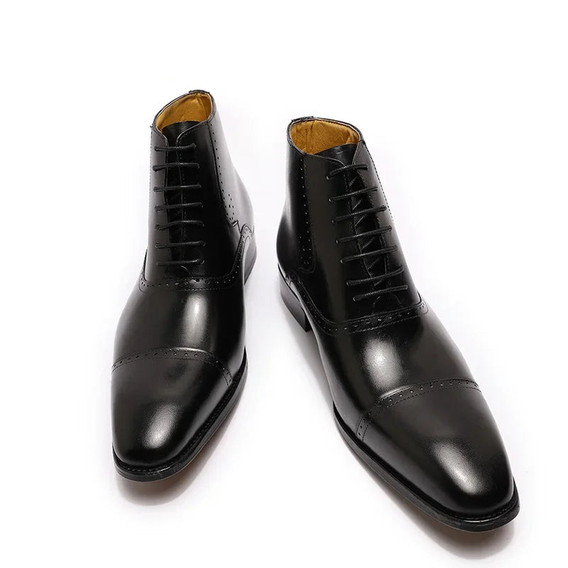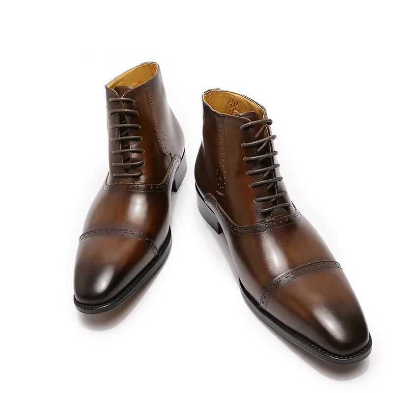 Men's Burnished Handmade Cap Toe Lace Up Perforated Ankle Boots