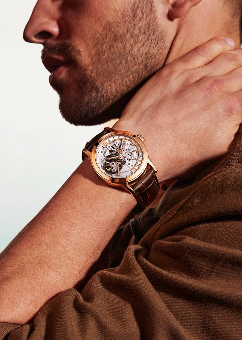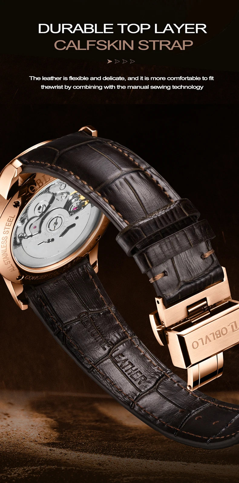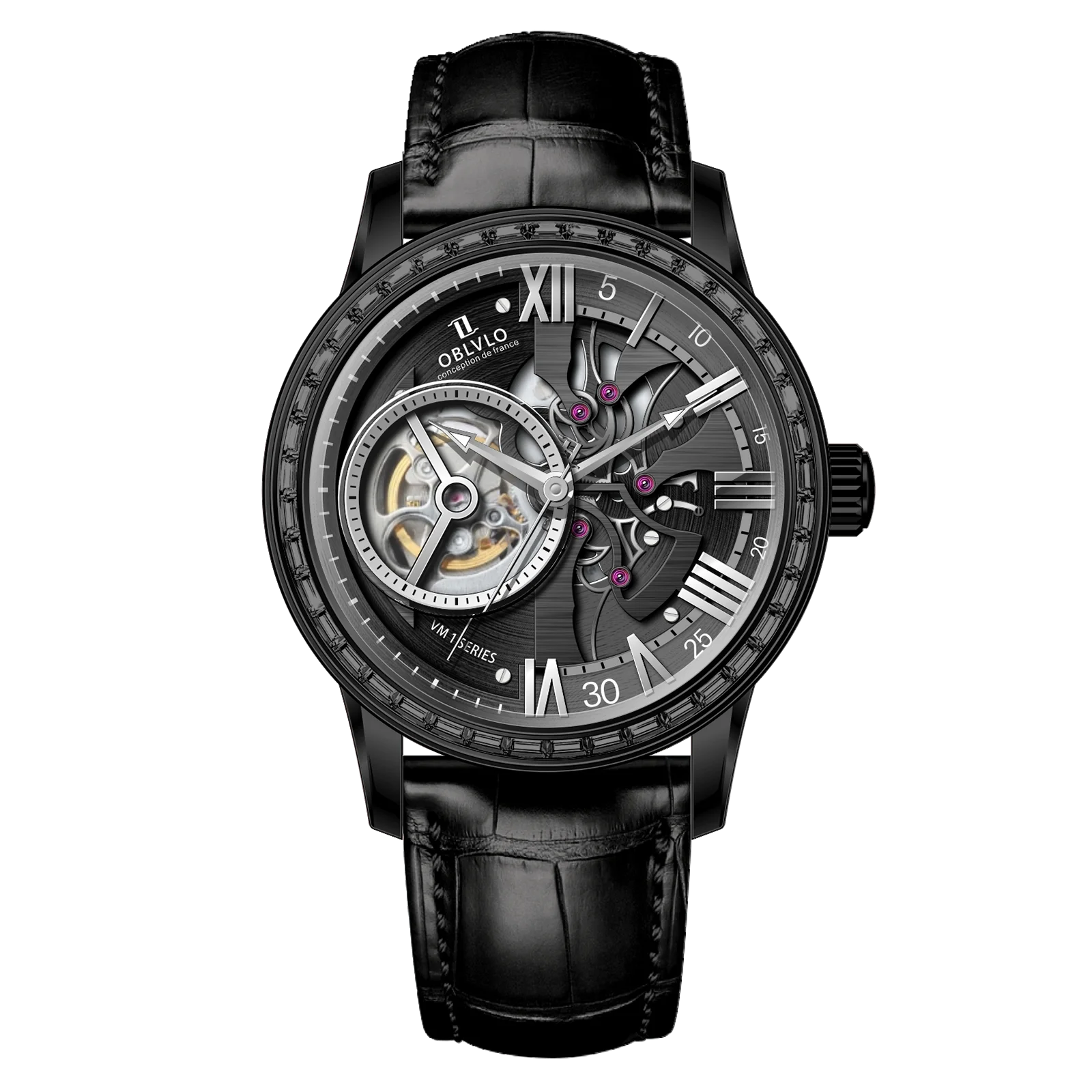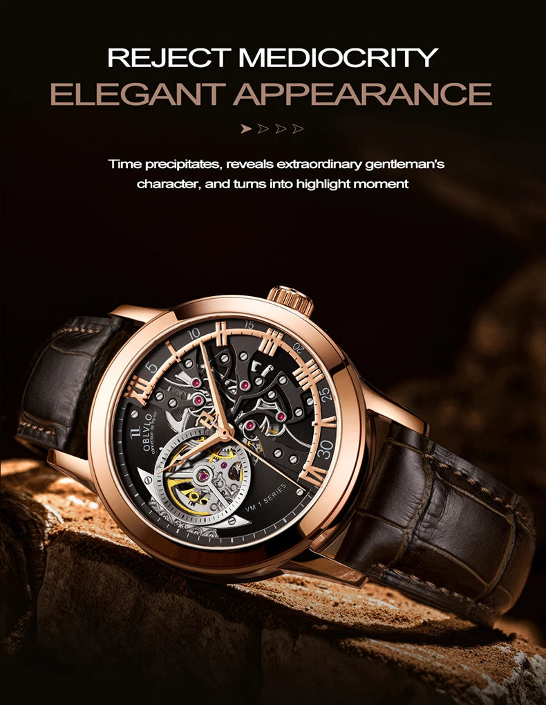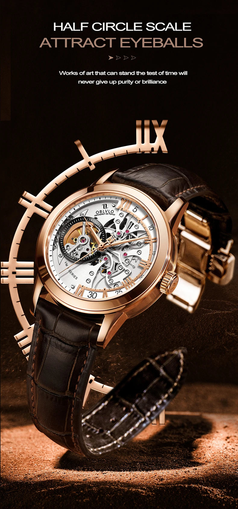 Men's Retro Fashion Tourbillon Diamonds Decor Automatic Genuine Leather Mechanical Watch