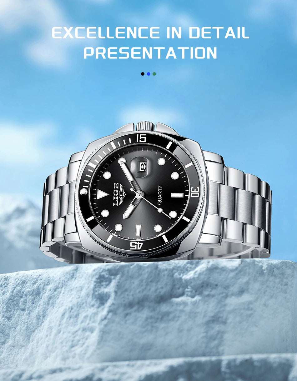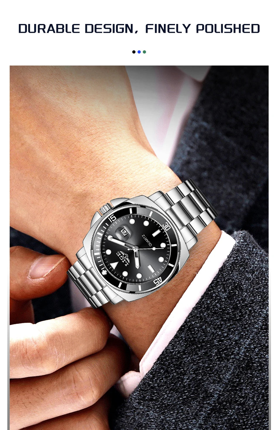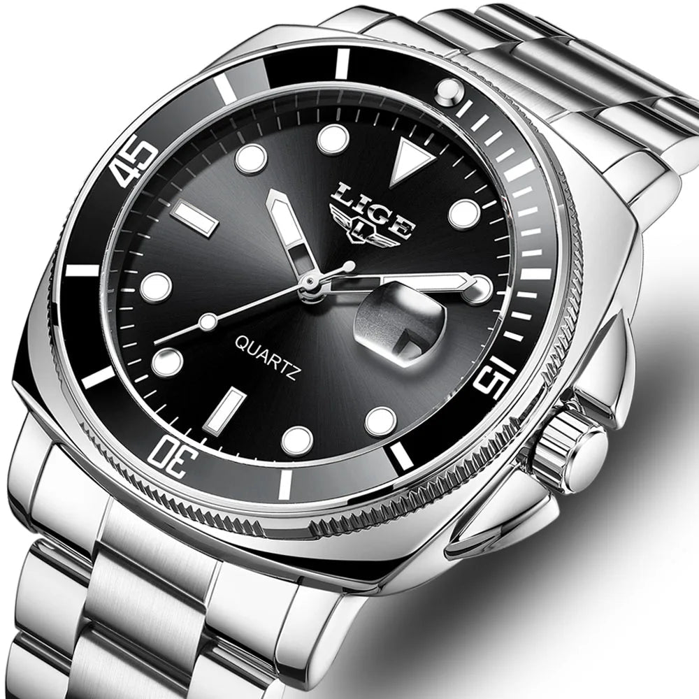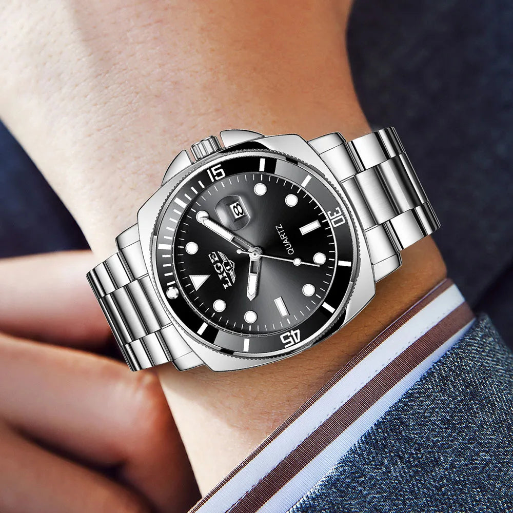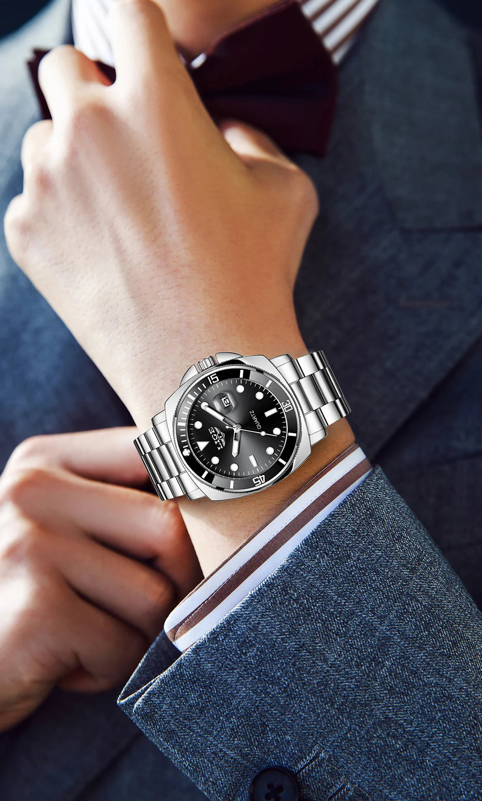 Luxurious Men's Waterproof Luminous Date Stainless Steel Sports Quartz Watch