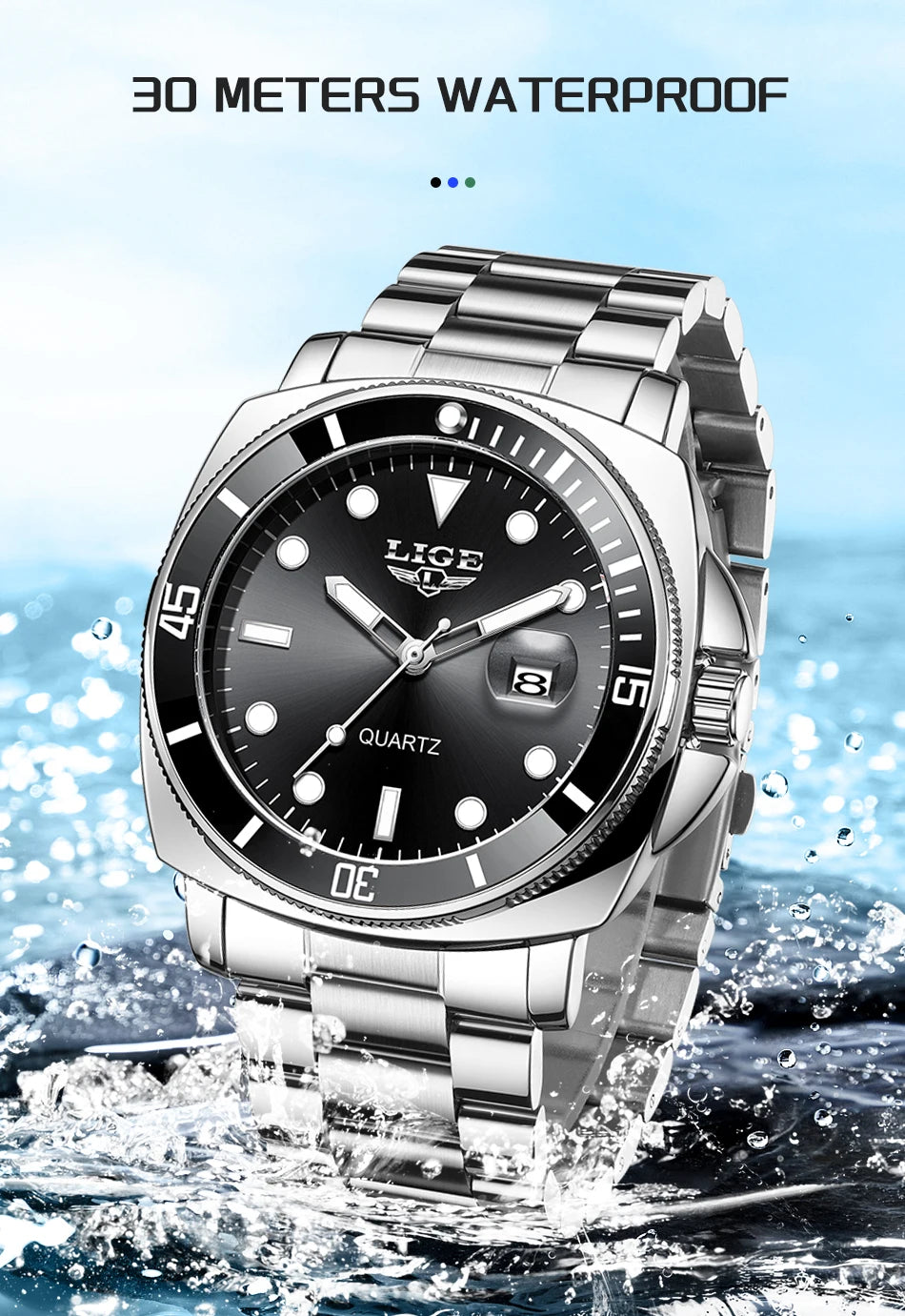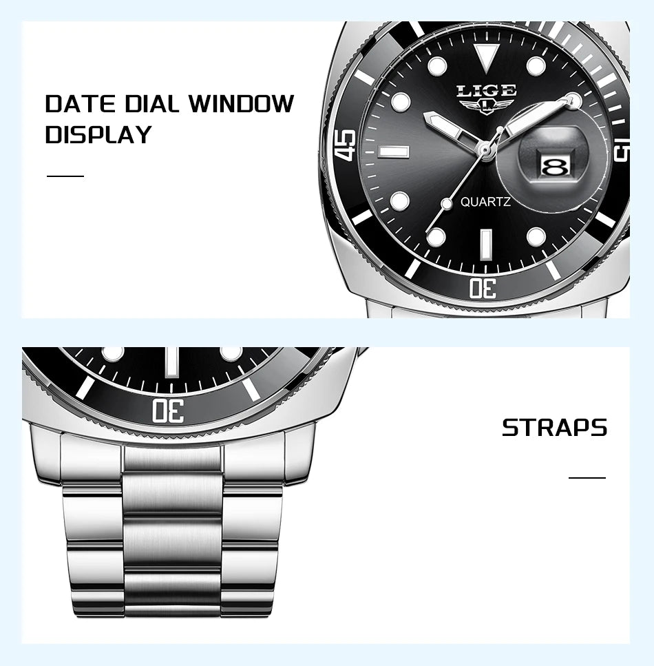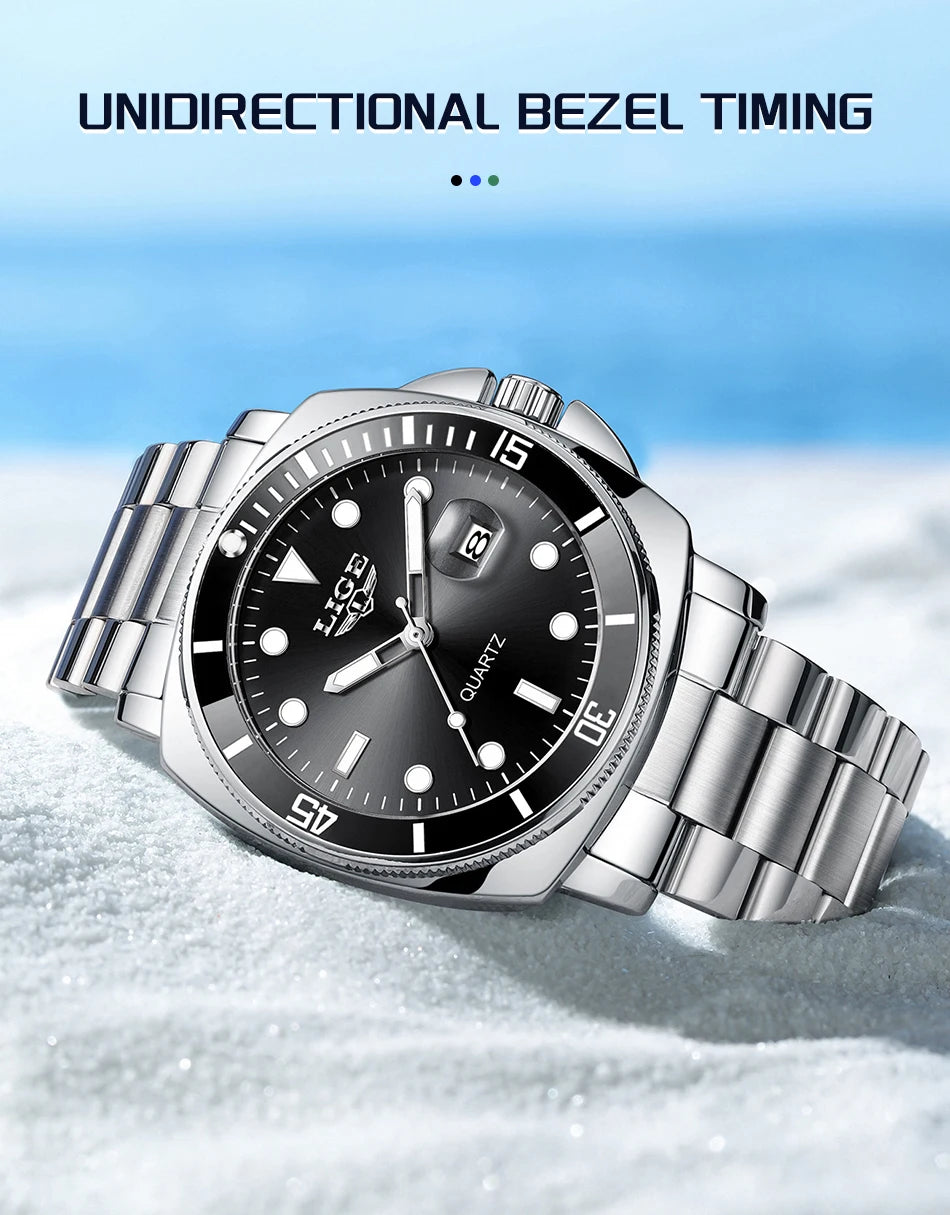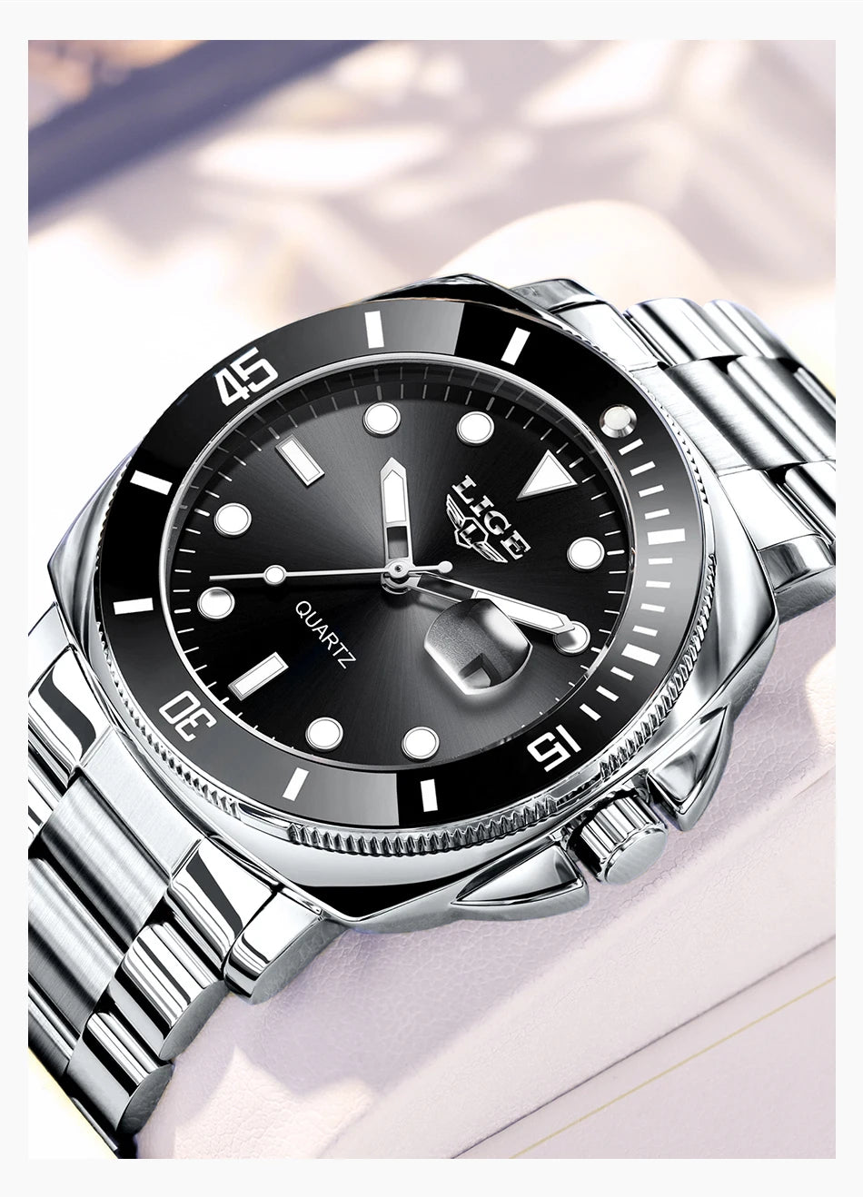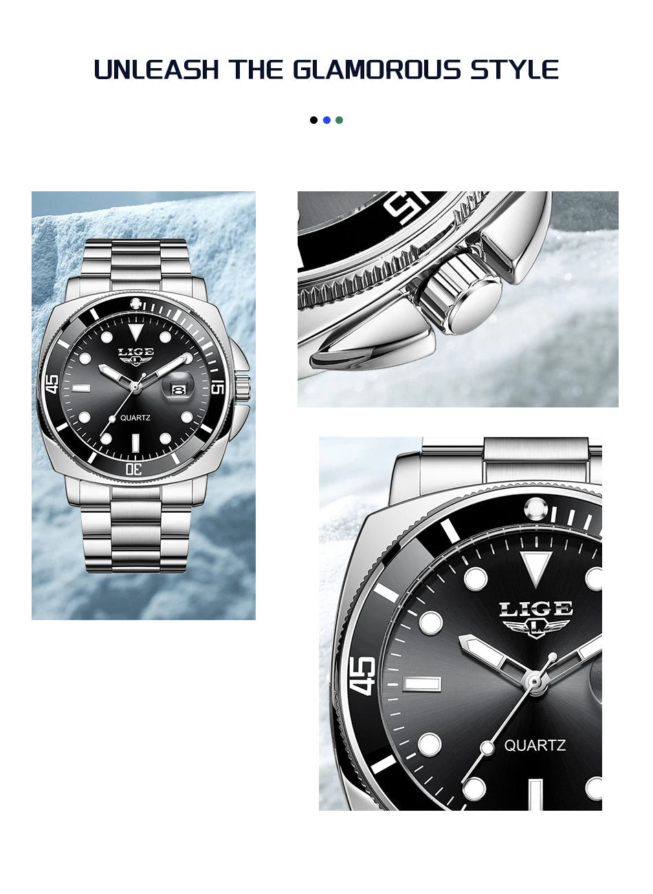 Luxurious Men's Waterproof Luminous Date Stainless Steel Sports Quartz Watch
