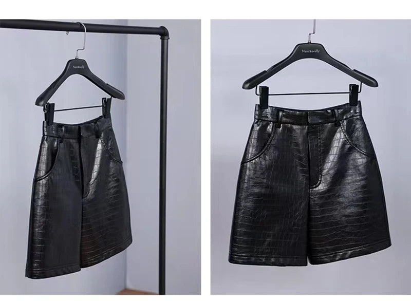 Sheepskin Alligator Pattern Slim Pantalon Straight Shorts for Women