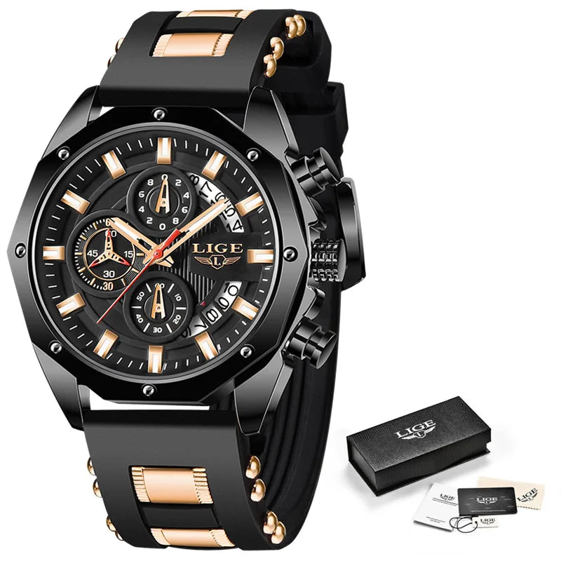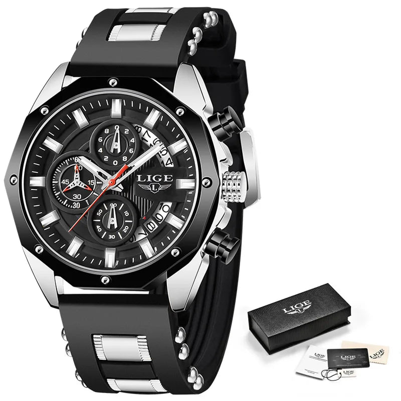 Silicone Luxury Fashion Date Waterproof Chronograph Sports Quartz Watch for Men