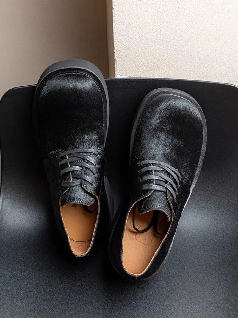 Men's British Style Horsehair Lace Up Round Toe Business Casual Derby Shoes