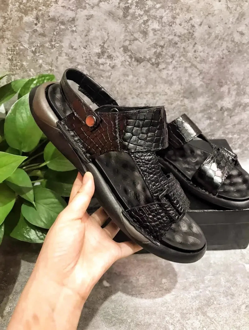 Men's Summer Crocodile Skin Leather Light Breathable Open Toe Sandals